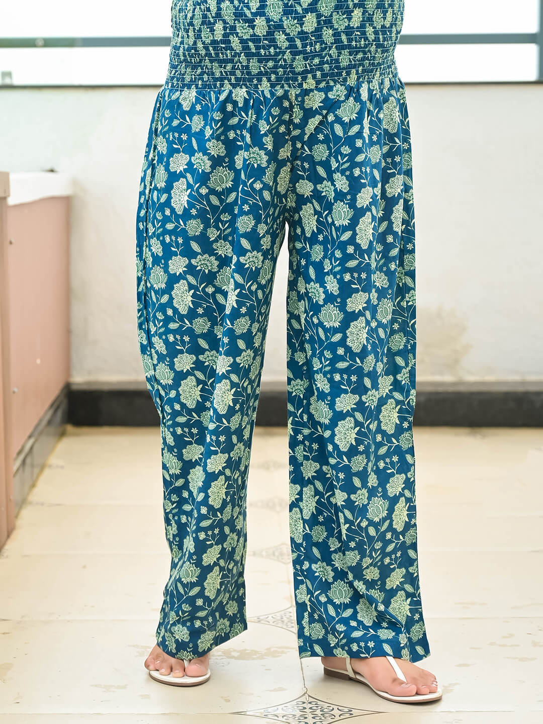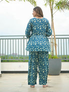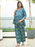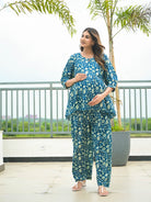 Indigo Printed Cotton Maternity Feeding Night Suit