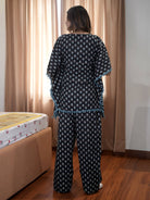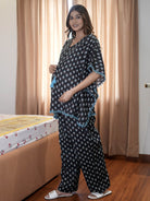 Black Printed Cotton Maternity Feeding Kaftan Night Suit