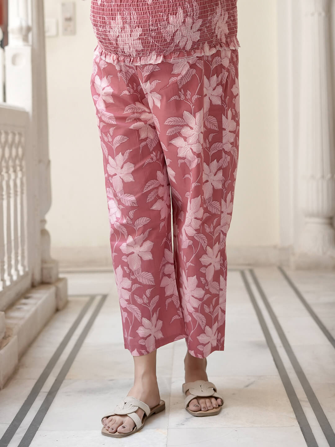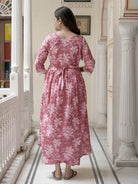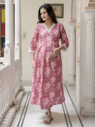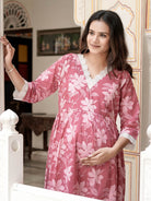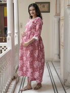 Strawberry Pink Cotton Printed Maternity Feeding Flared Kurta Set