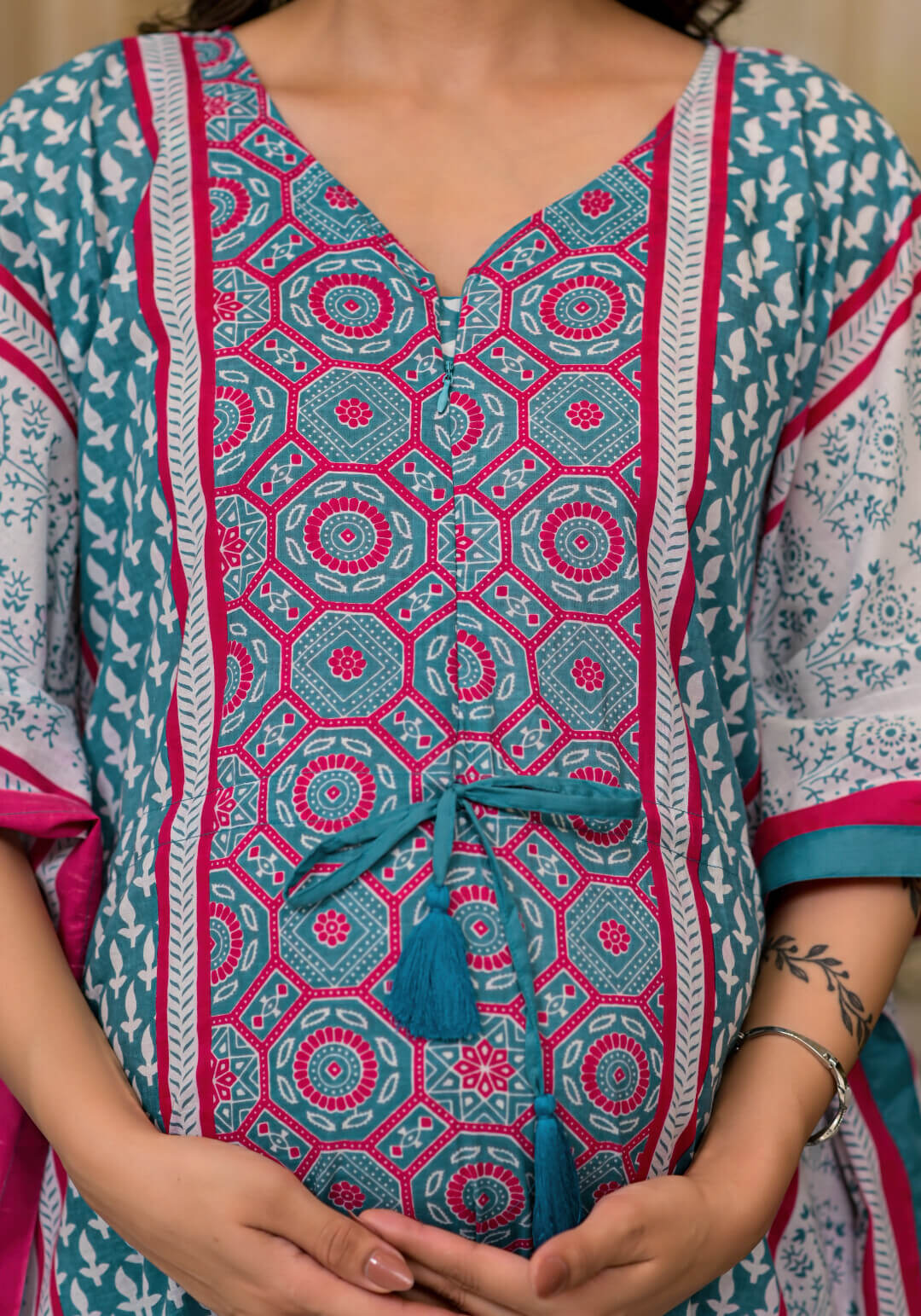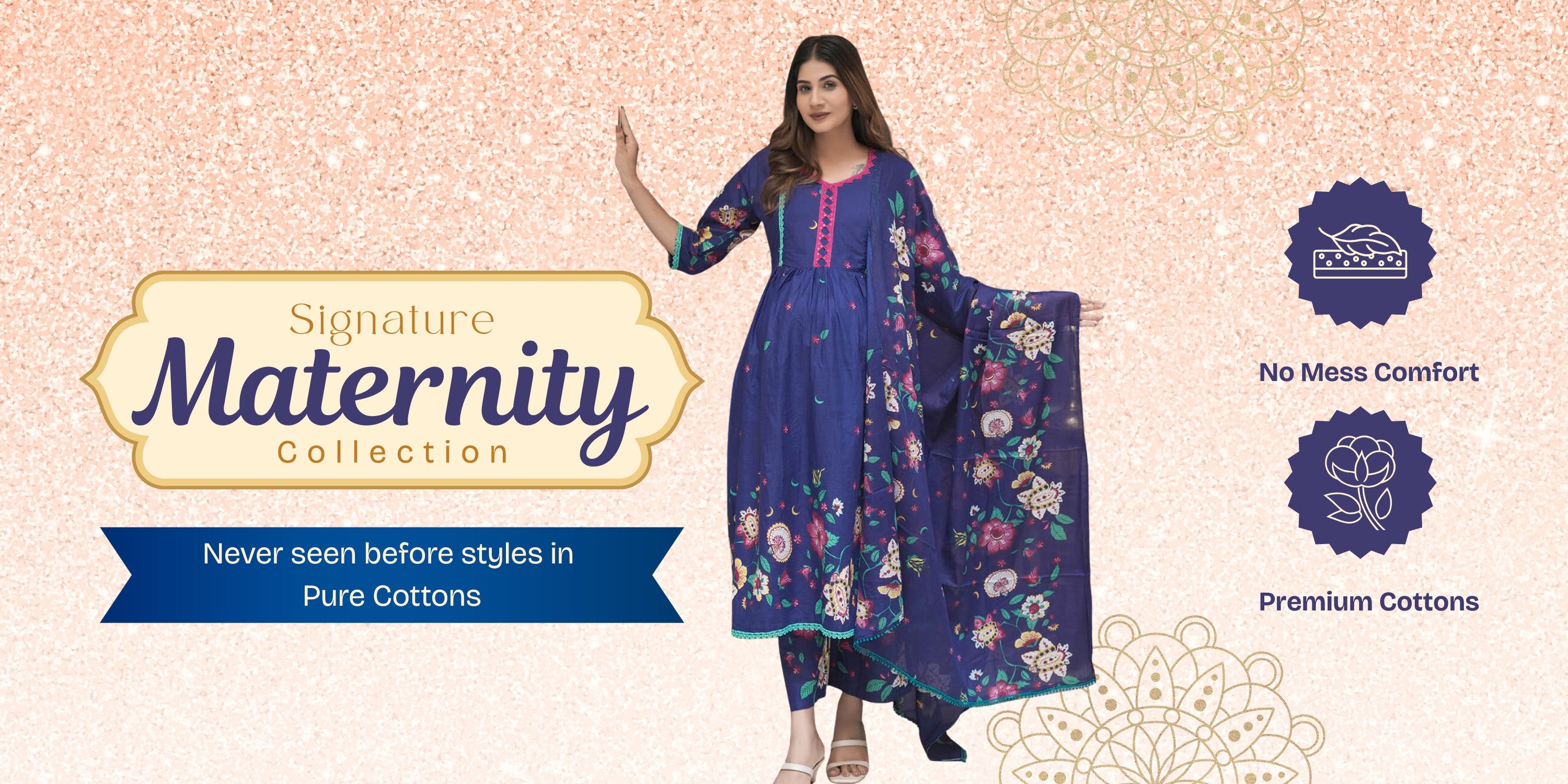 We Offer a Collections of Ethnic Pre & Post Maternity Apparels, which will help you look and feel Comfortable, Charming during difficulty yet Happy phase of Life. With our Creativity and an eye for Fashion detailing, we always strive to introduce more Fashionable, Functional and Appealing Attires in our Collections from time to time.