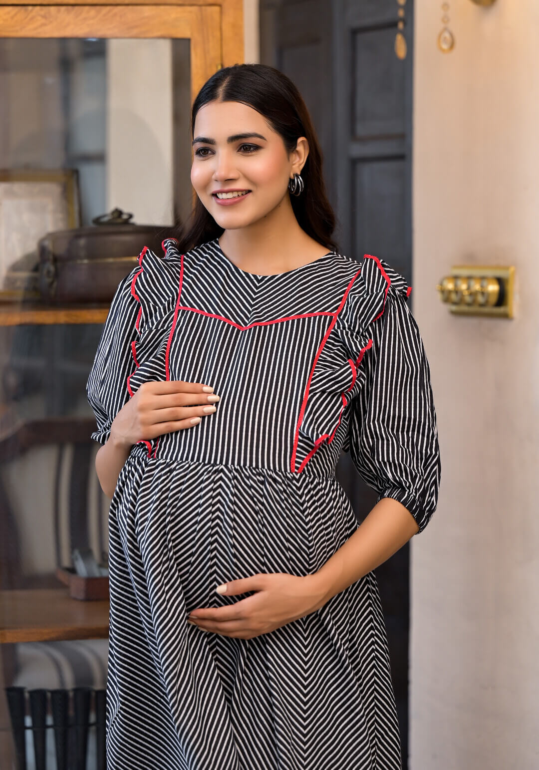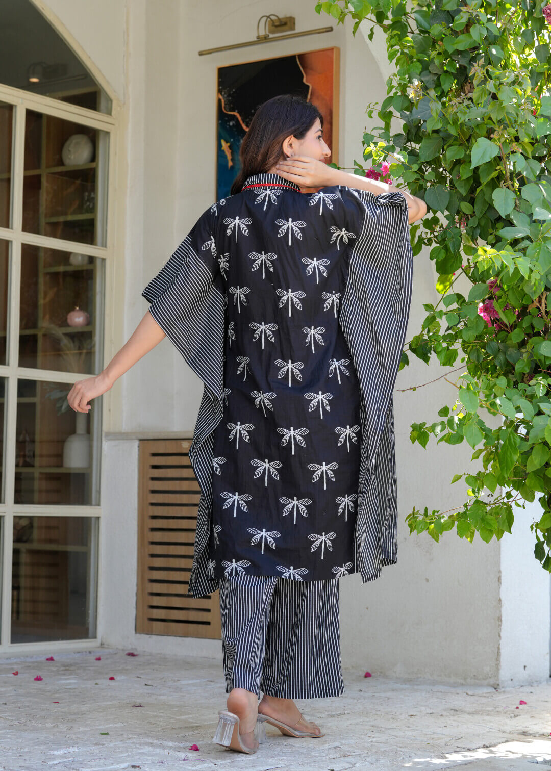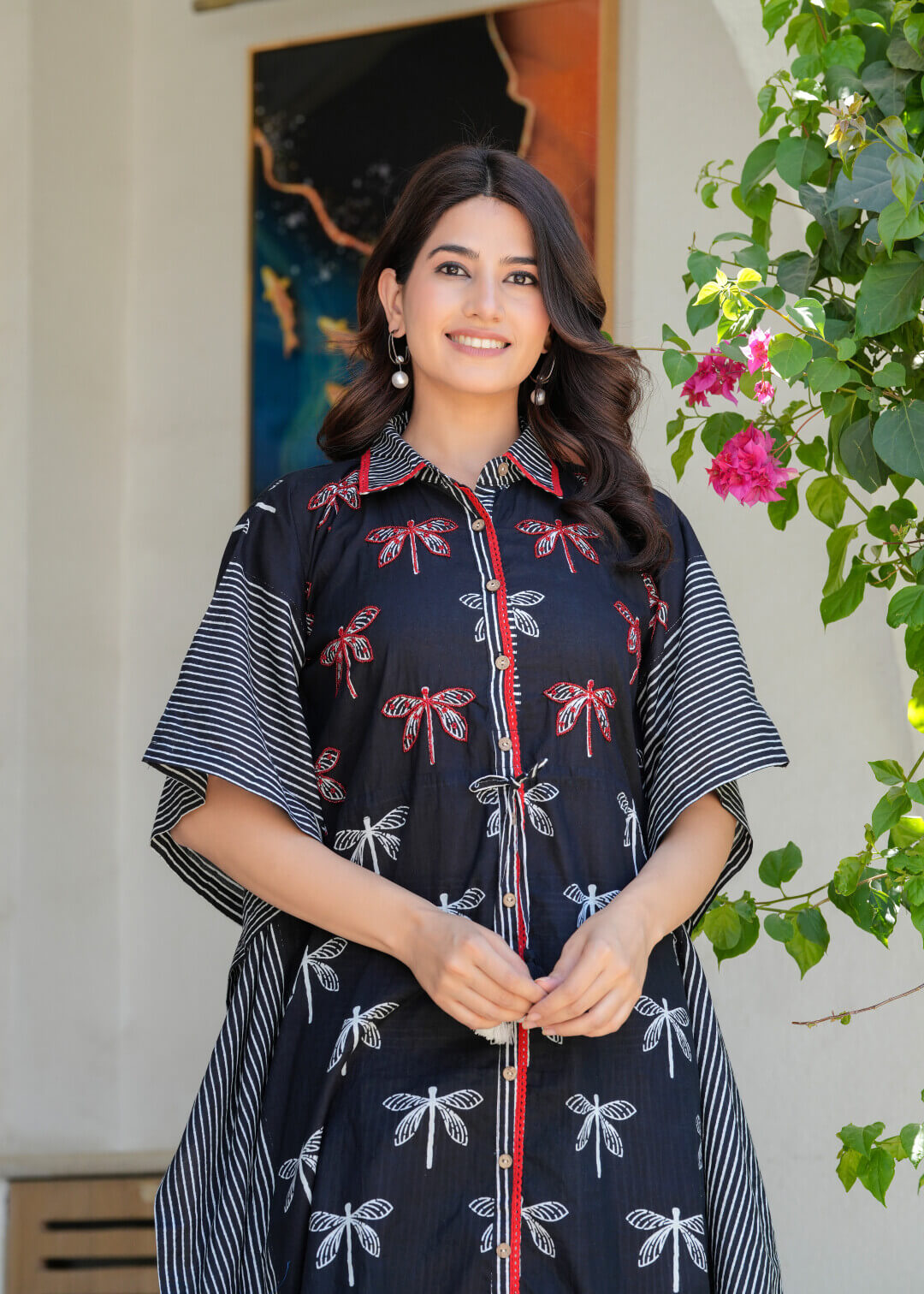Black Cotton Printed Maternity Feeding Kaftan Kurta Set