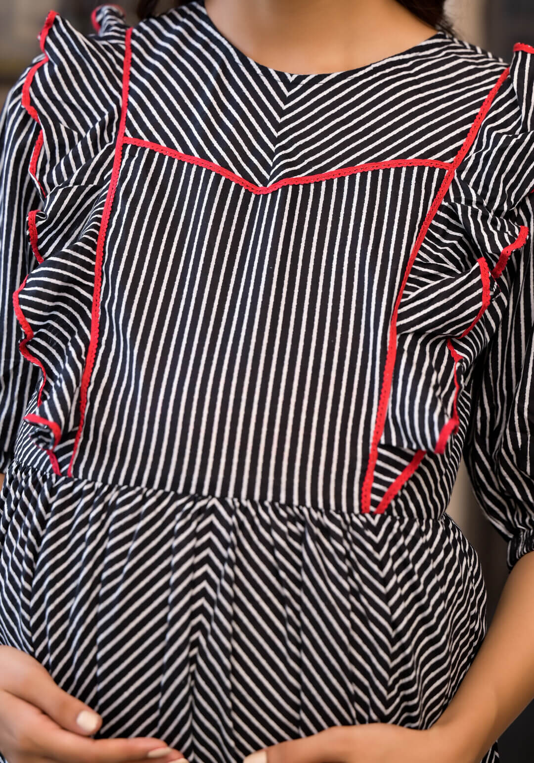 Black Cotton Printed Maternity Feeding Flared Kurta