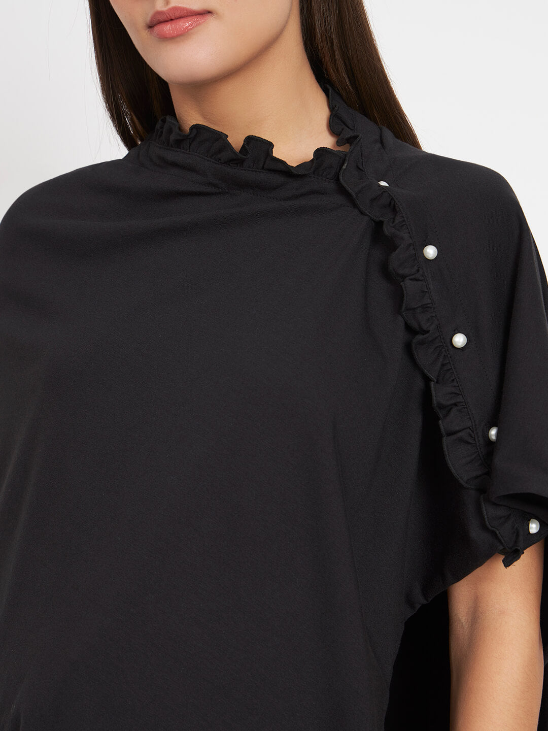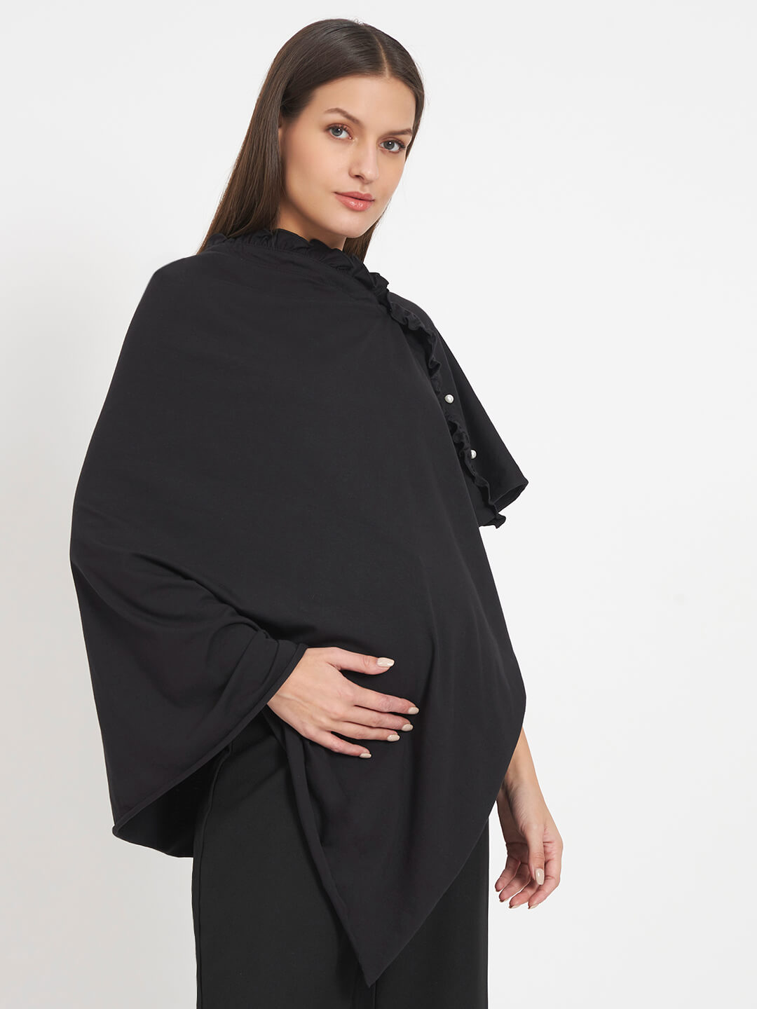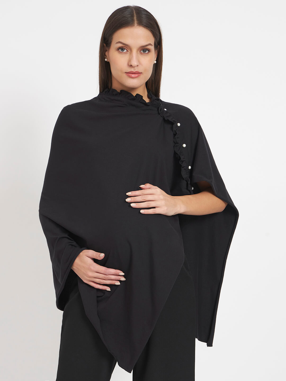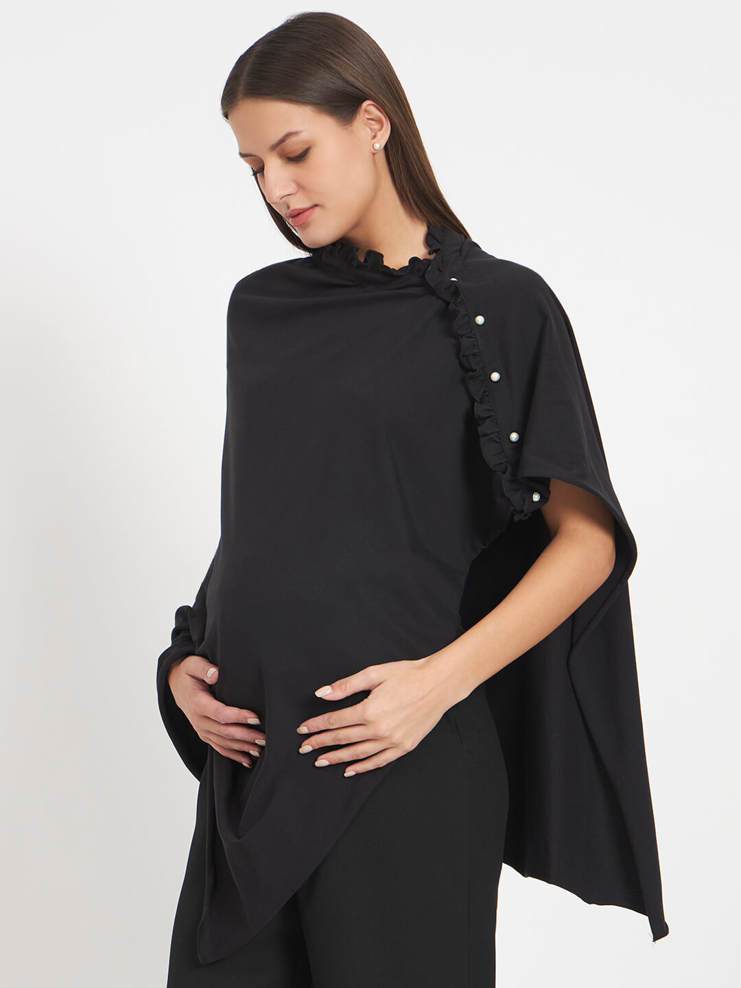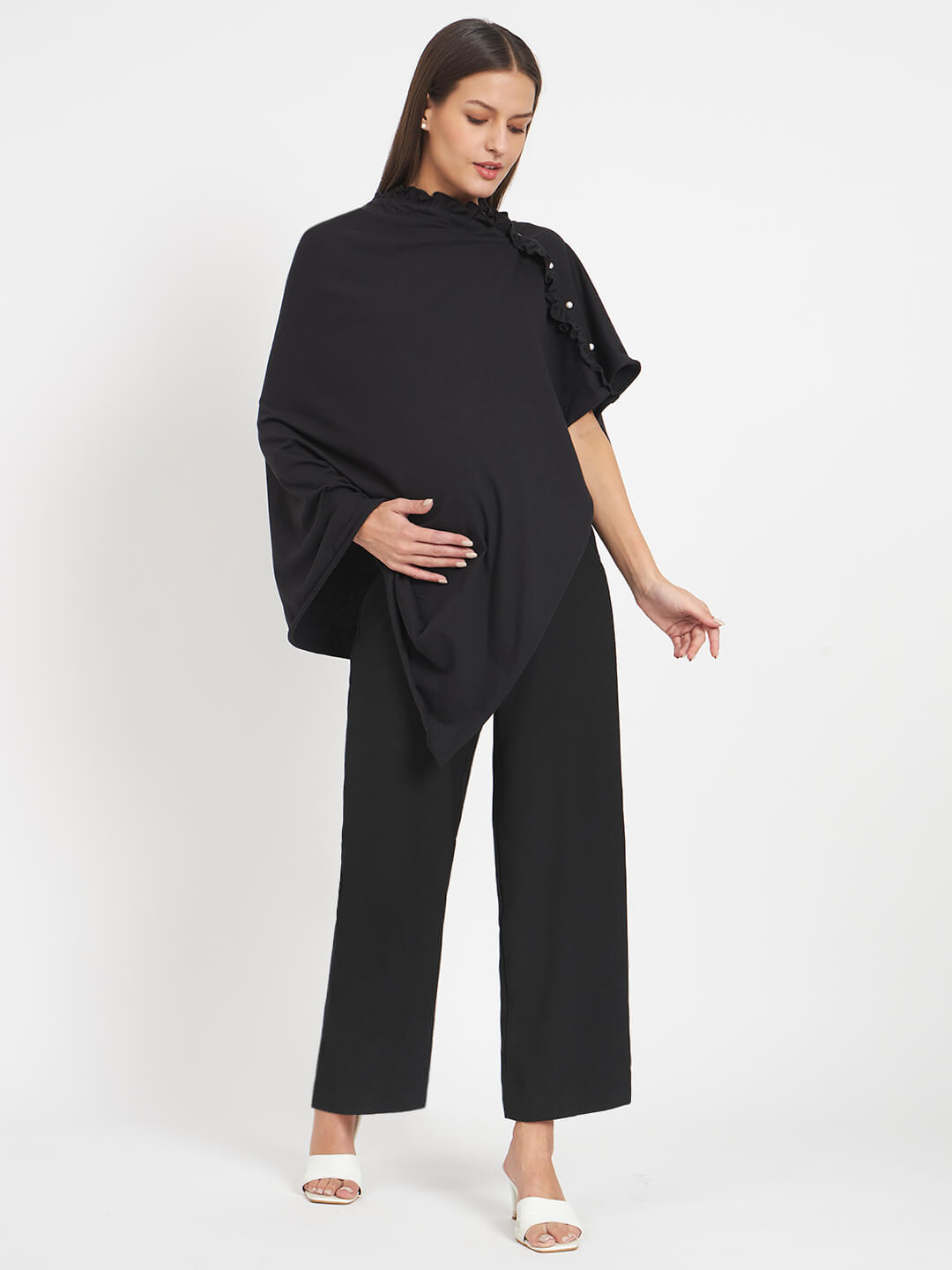 Black Printed Front Zipper Maternity Feeding Kaftan