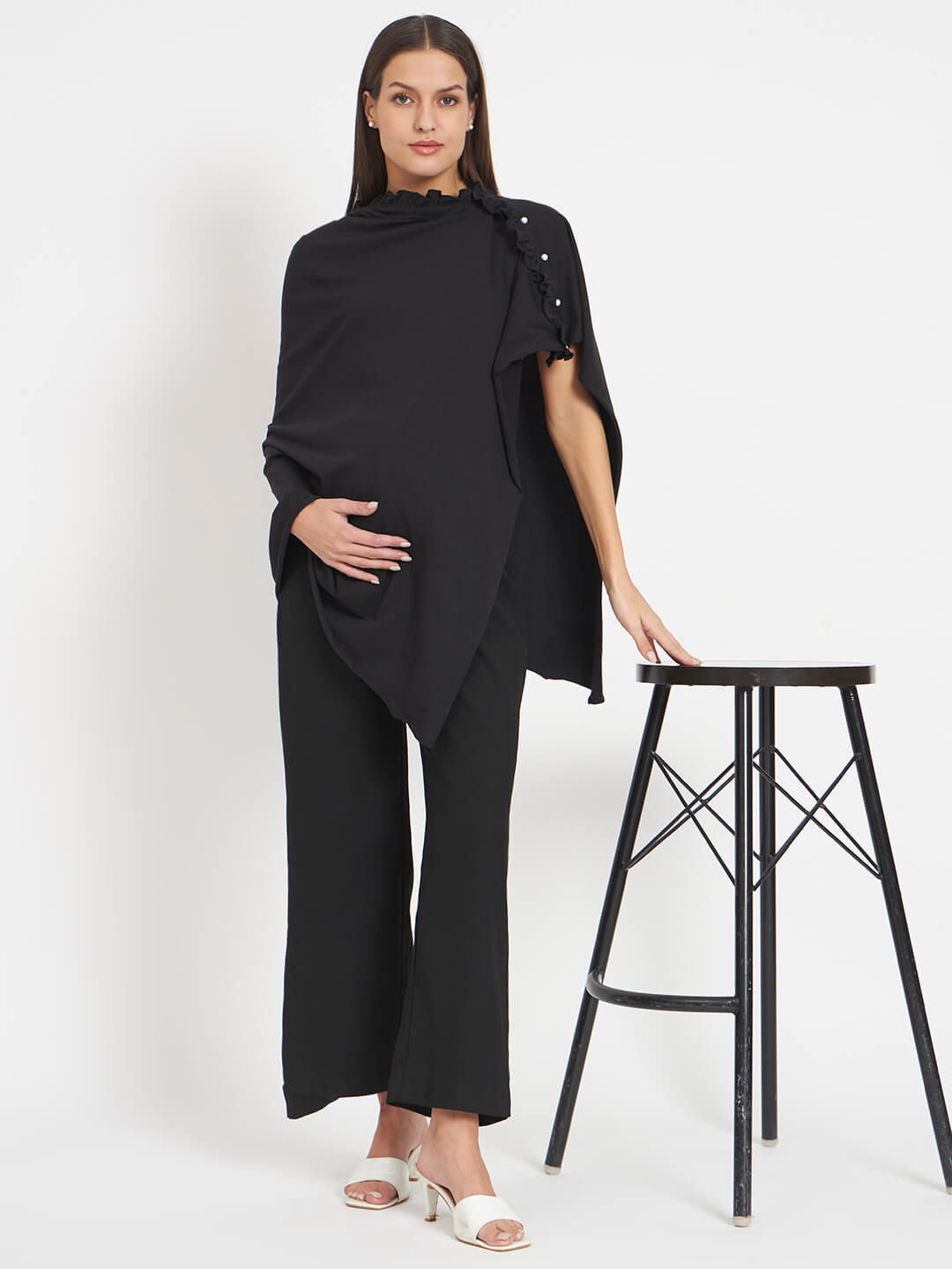 Black Woolen Digital Printed Maternity Feeding Flared Kurta Set
