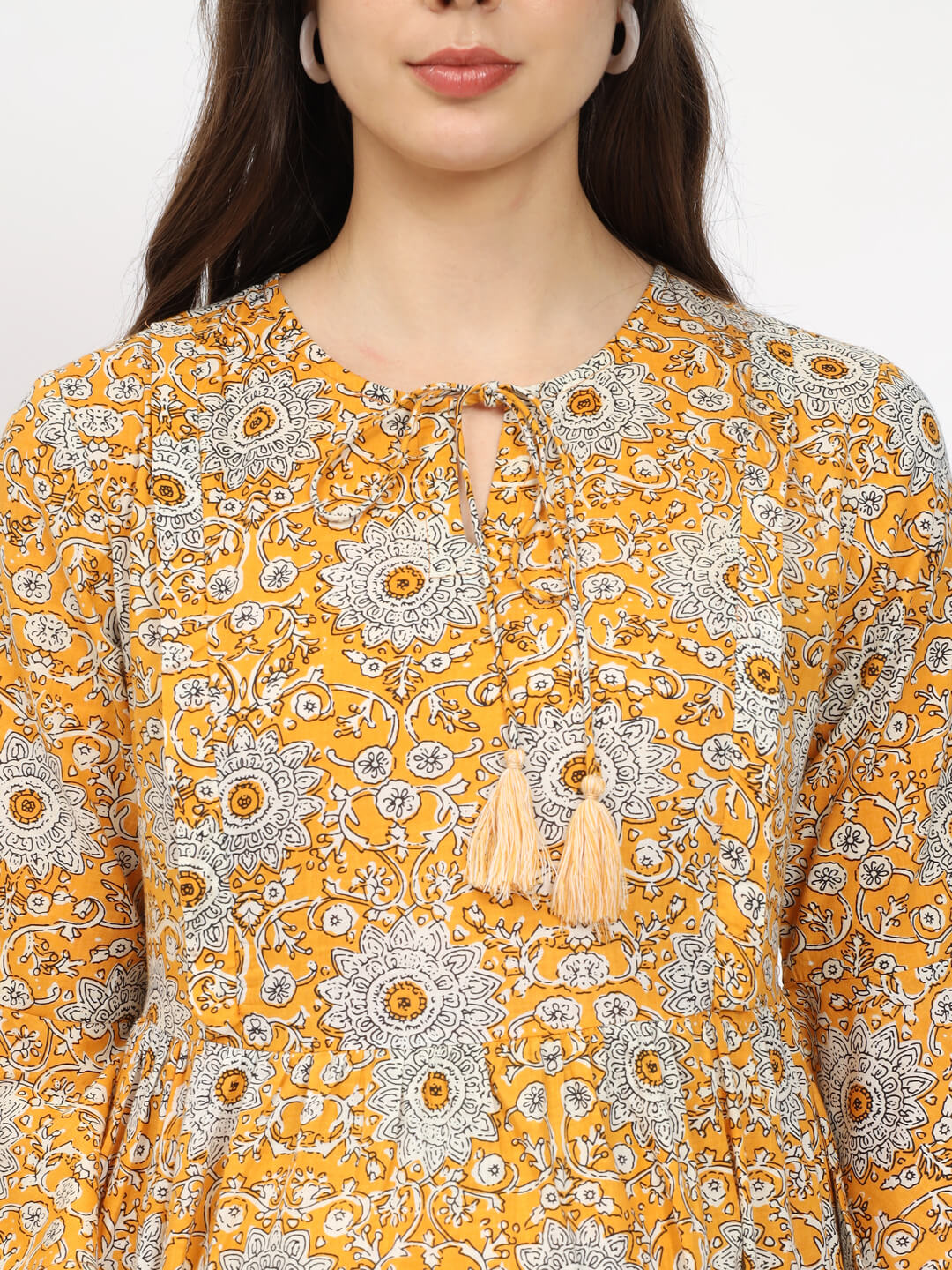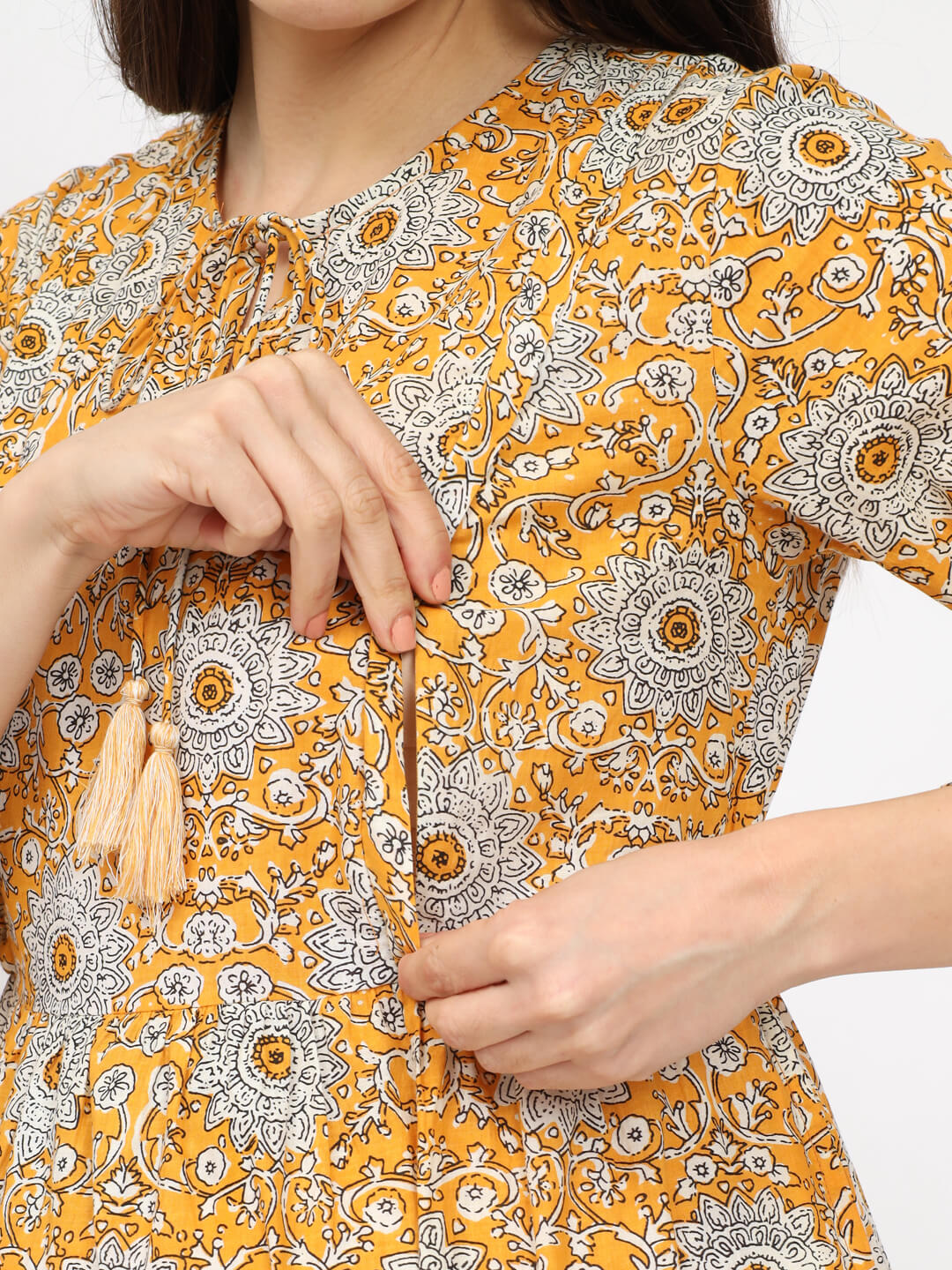 Yellow Cotton Printed Maternity Feeding Kurta