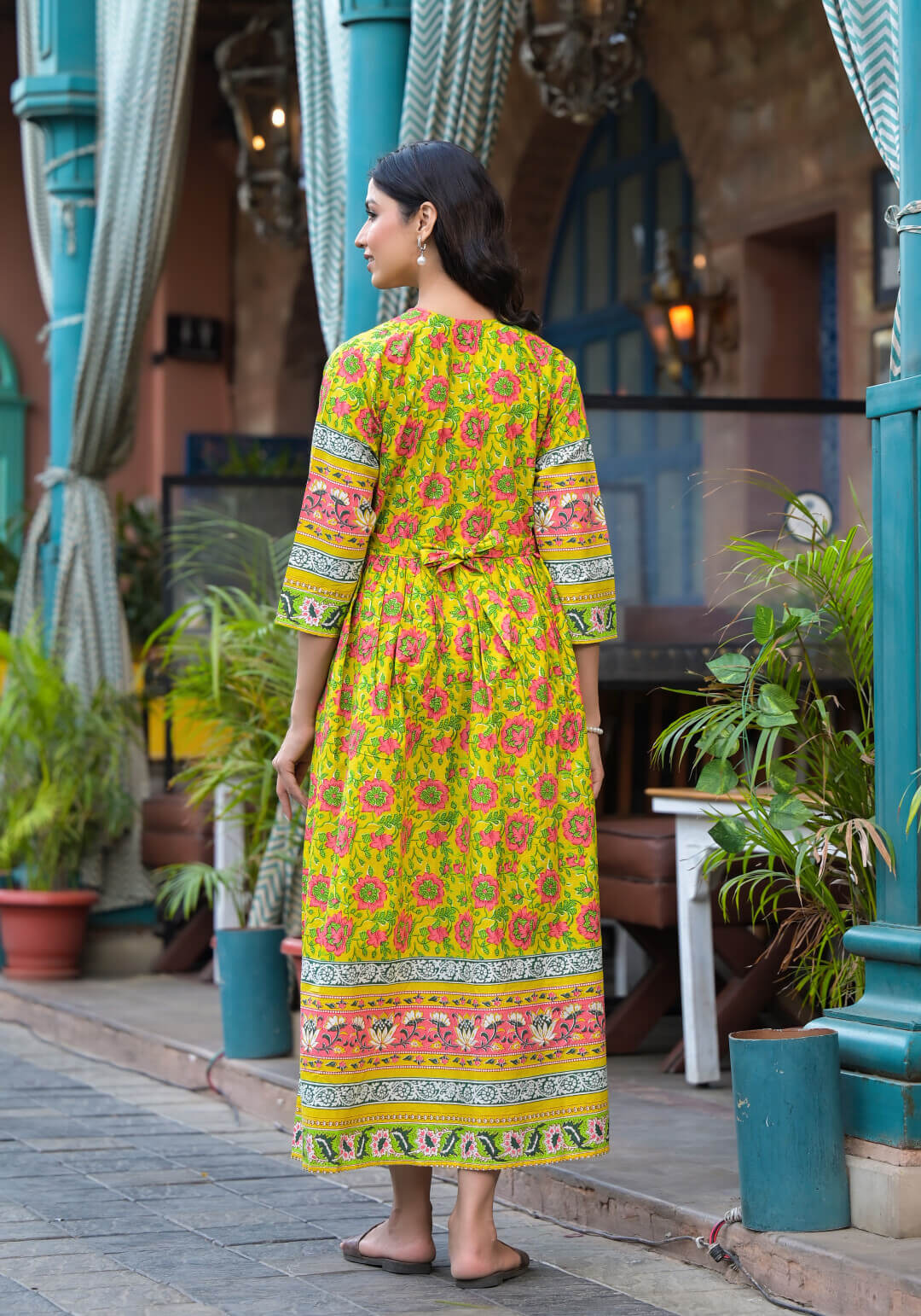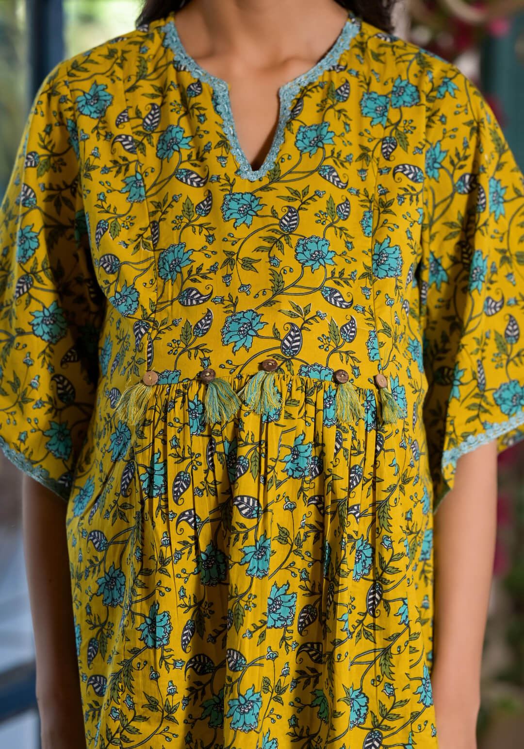 Yellow Multi Cotton Printed Maternity Feeding Kaftan