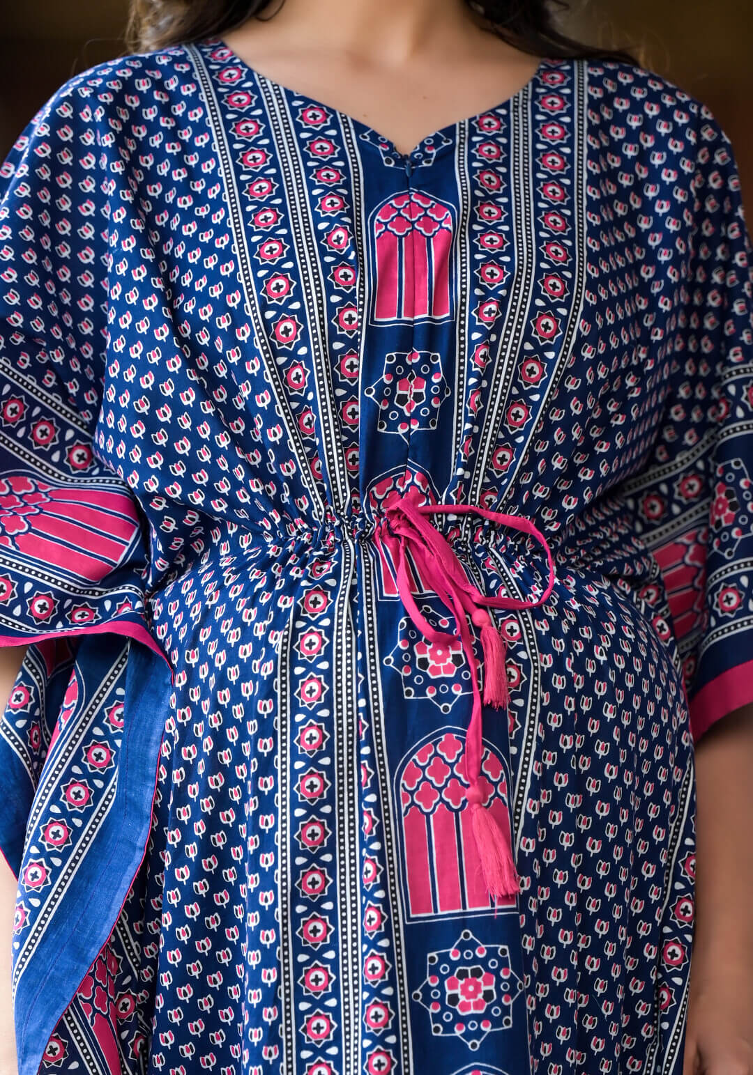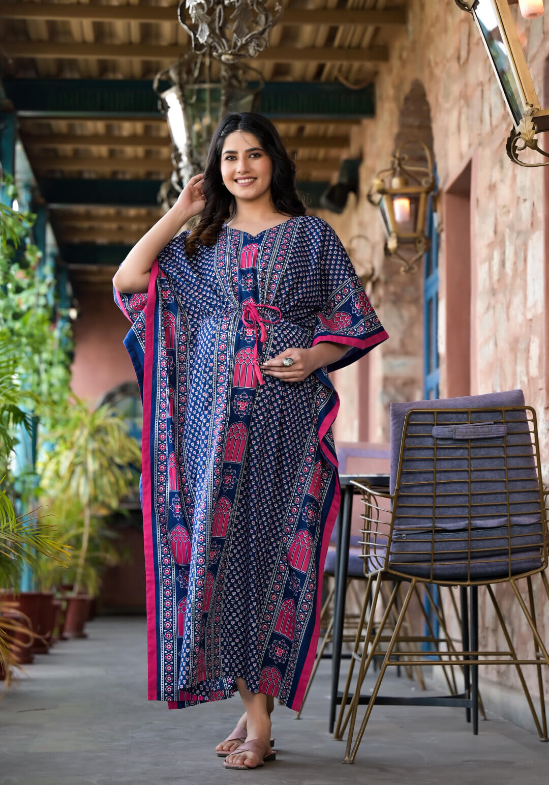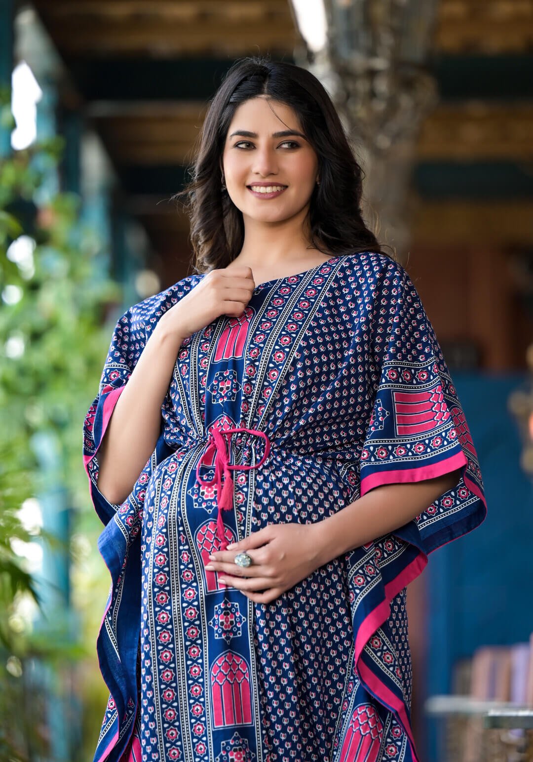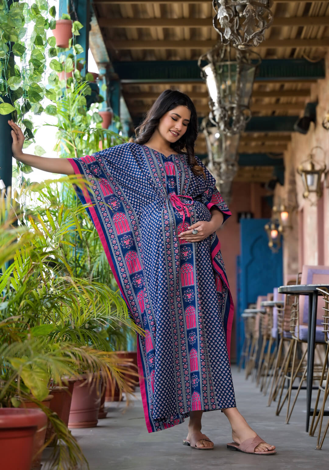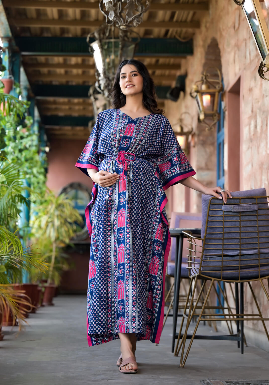 Indigo Multi Printed Front Zipper Maternity Feeding Kaftan