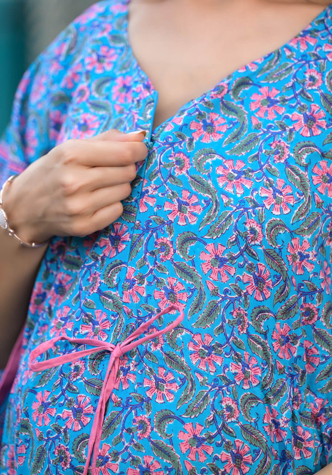 Tuquoise Multi Printed Front Zipper Maternity Feeding Kaftan