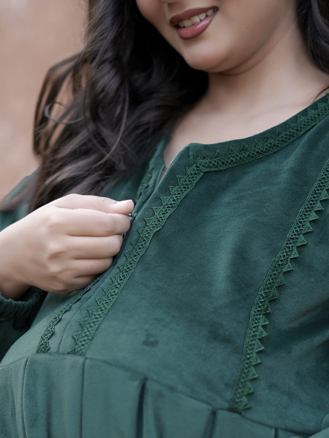 Dark Green Velvet Maternity Feeding Night Suit