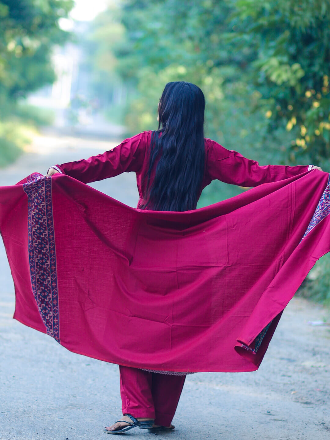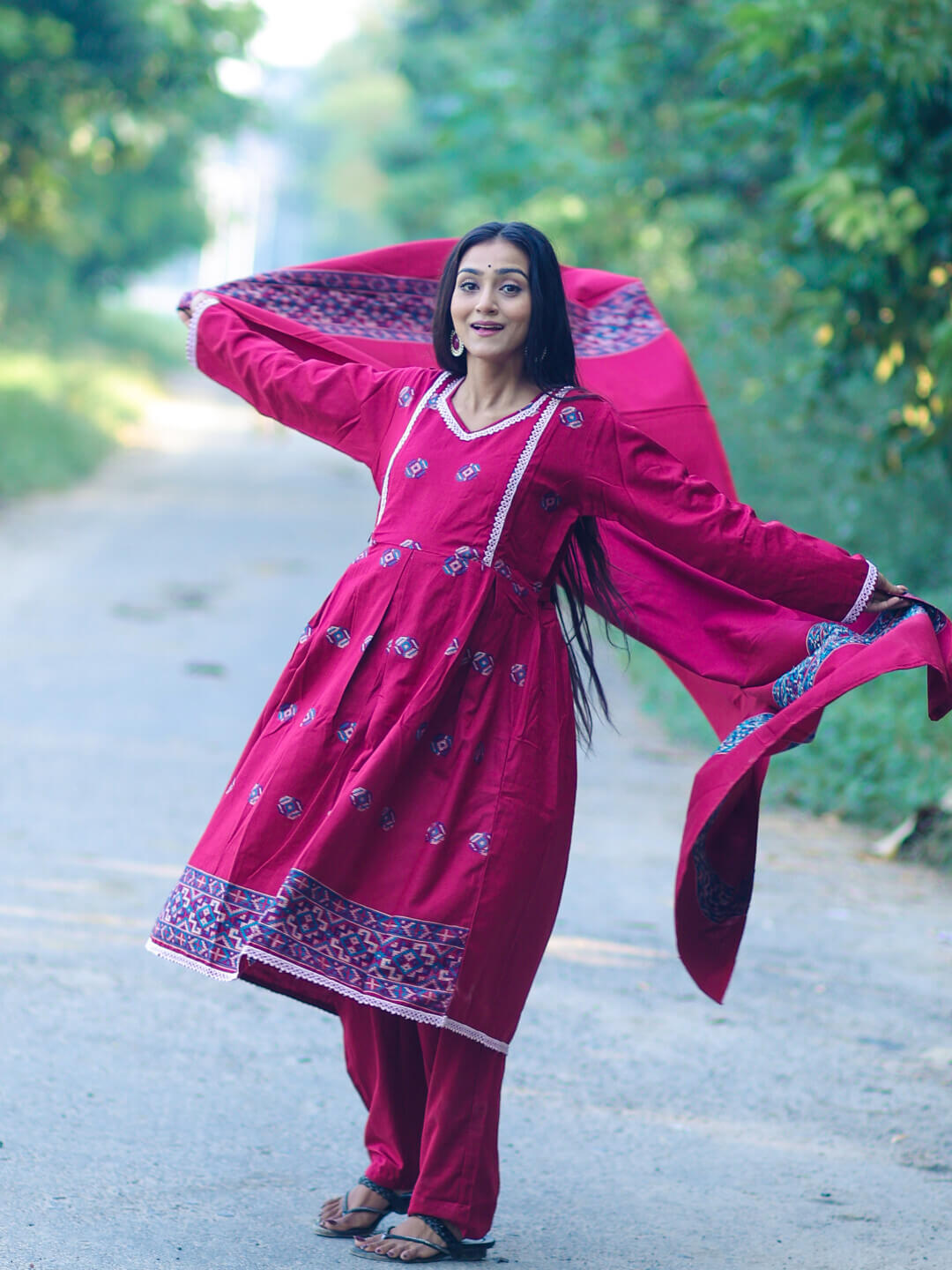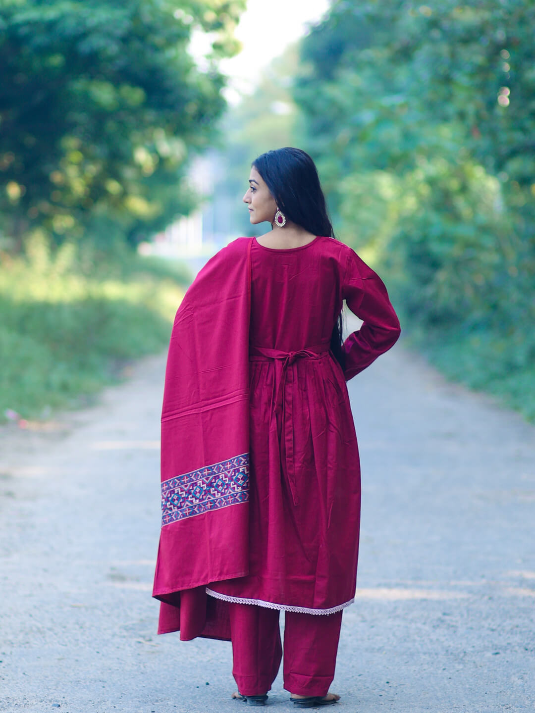 Maroon Woolen Kullu Patti Maternity Feeding Flared Kurta Set with Shawl