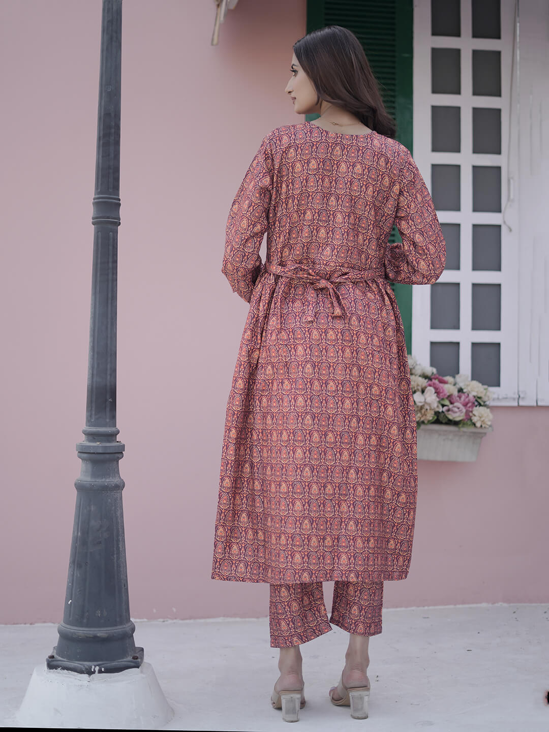 Brown Woolen Digital Printed Maternity Feeding Flared Kurta Set