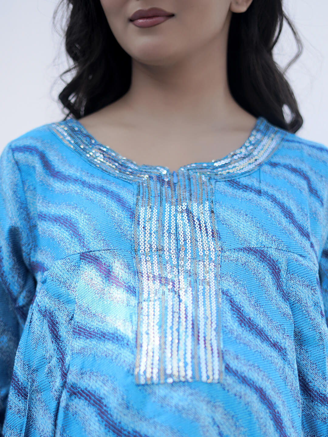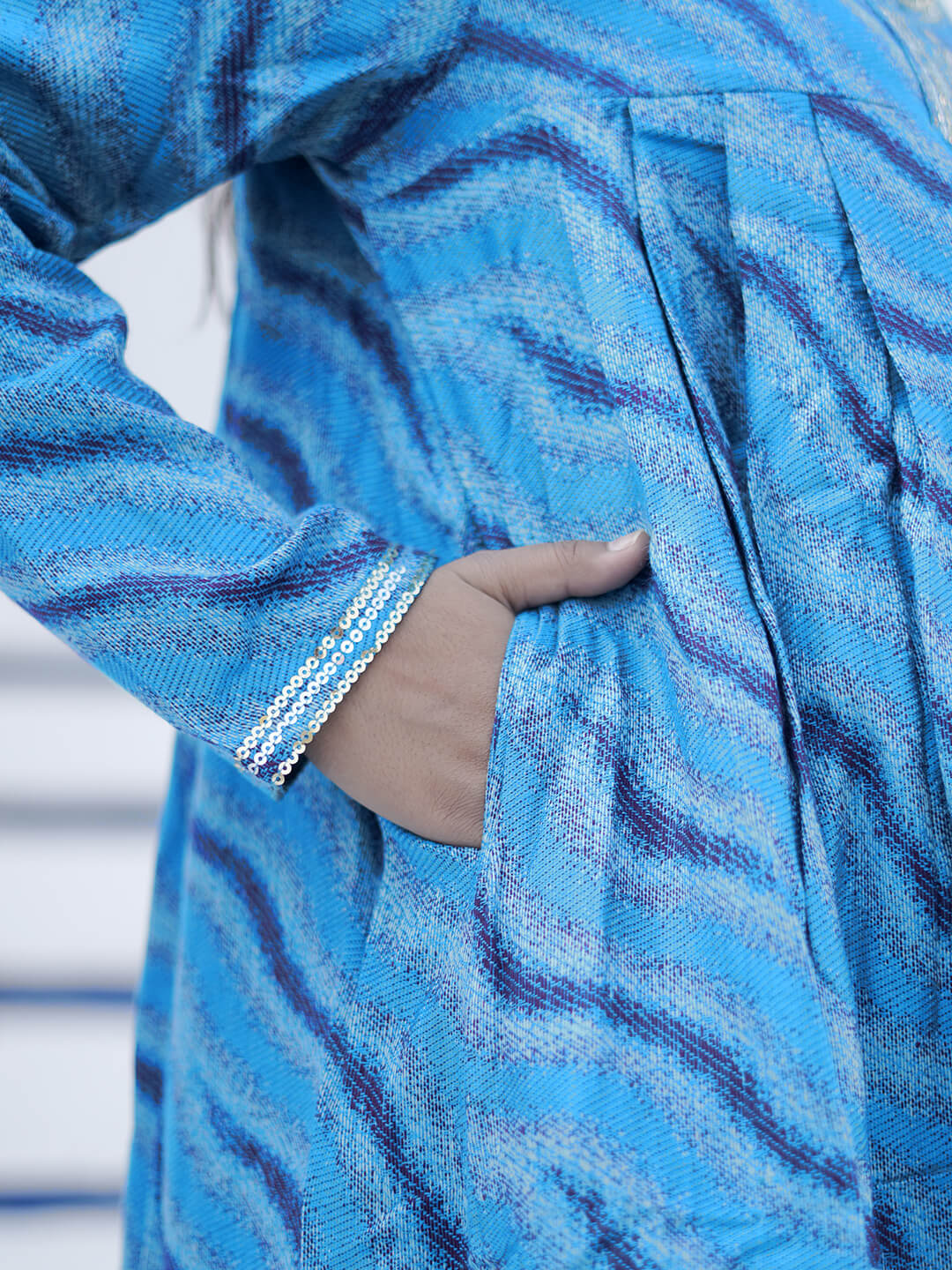 Turquoise Self Woven Woolen Maternity Feeding Flared Kurta Set