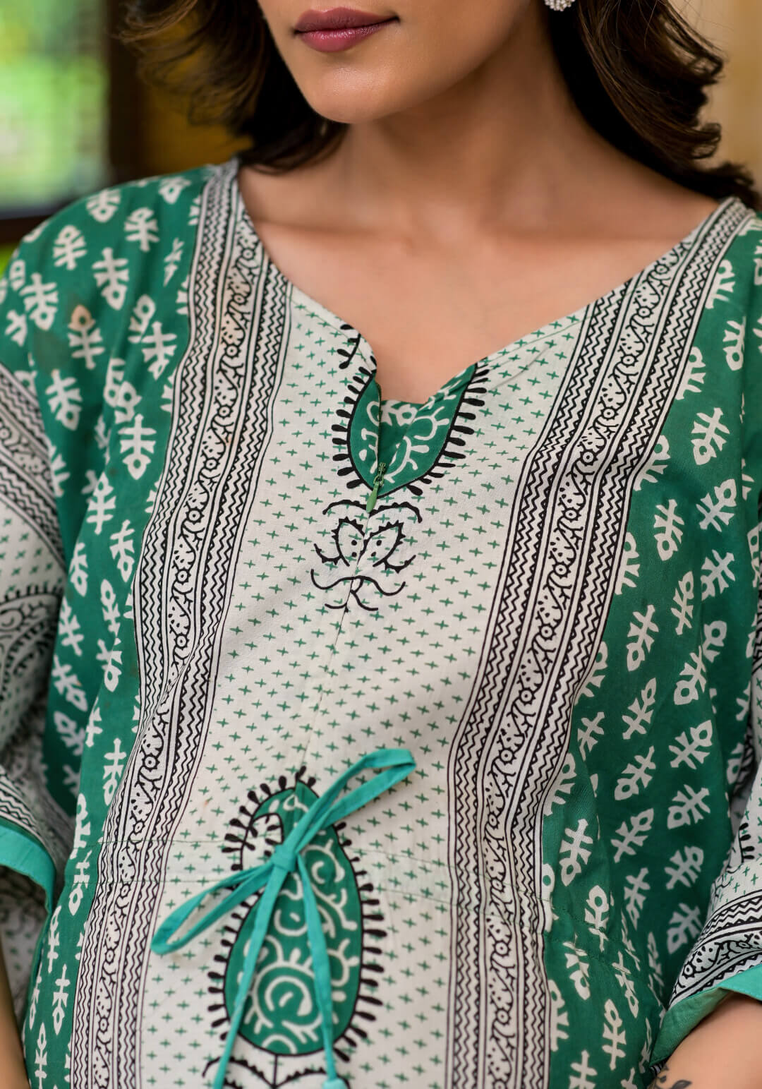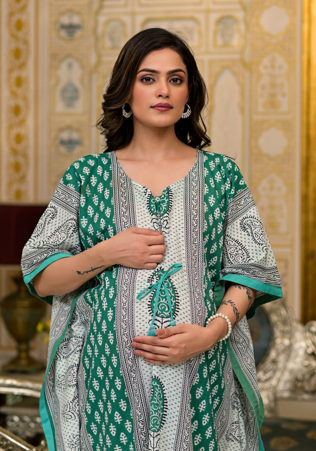 Green Multi Printed Front Zipper Maternity Feeding Kaftan