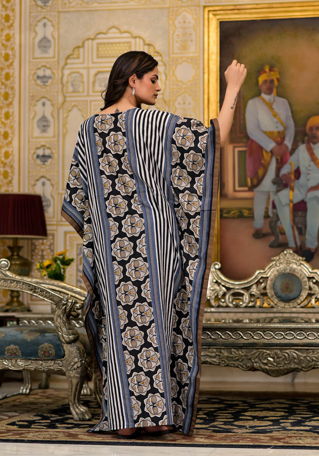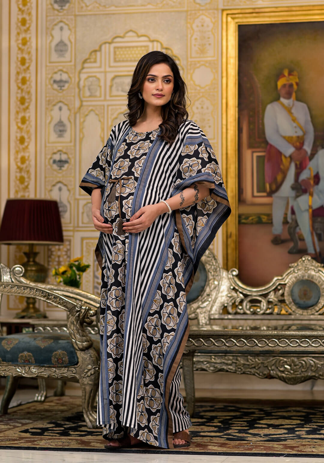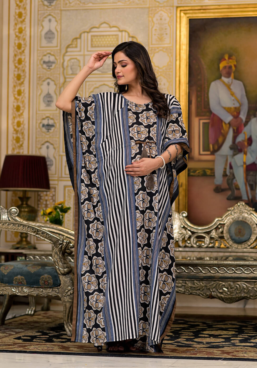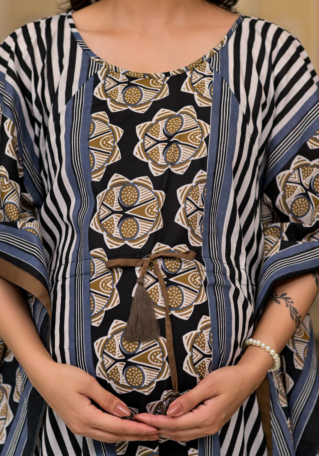 Black Brown Printed Front Zipper Maternity Feeding Kaftan