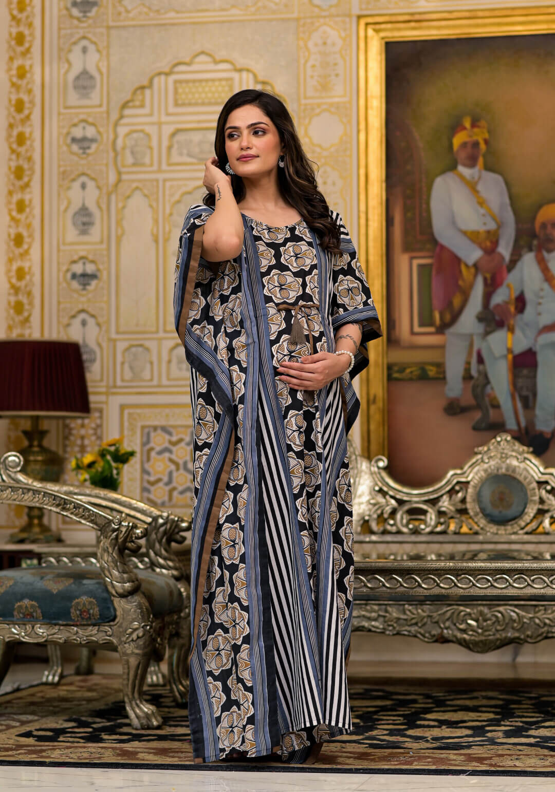 Indigo Cotton Printed Maternity Front Zipper Feeding Kaftan