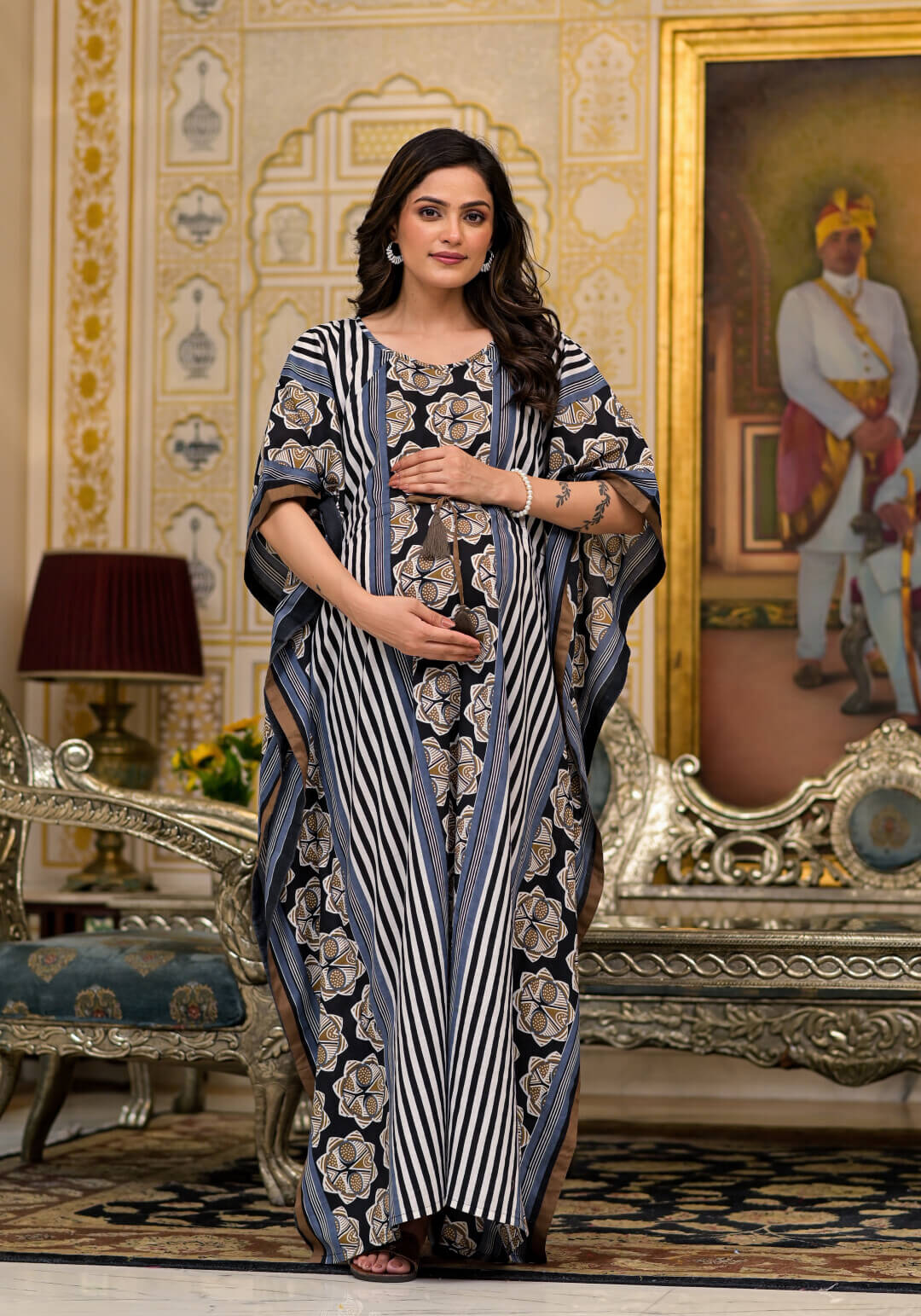 Black Brown Printed Front Zipper Maternity Feeding Kaftan