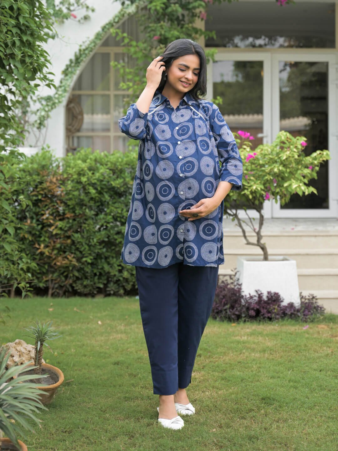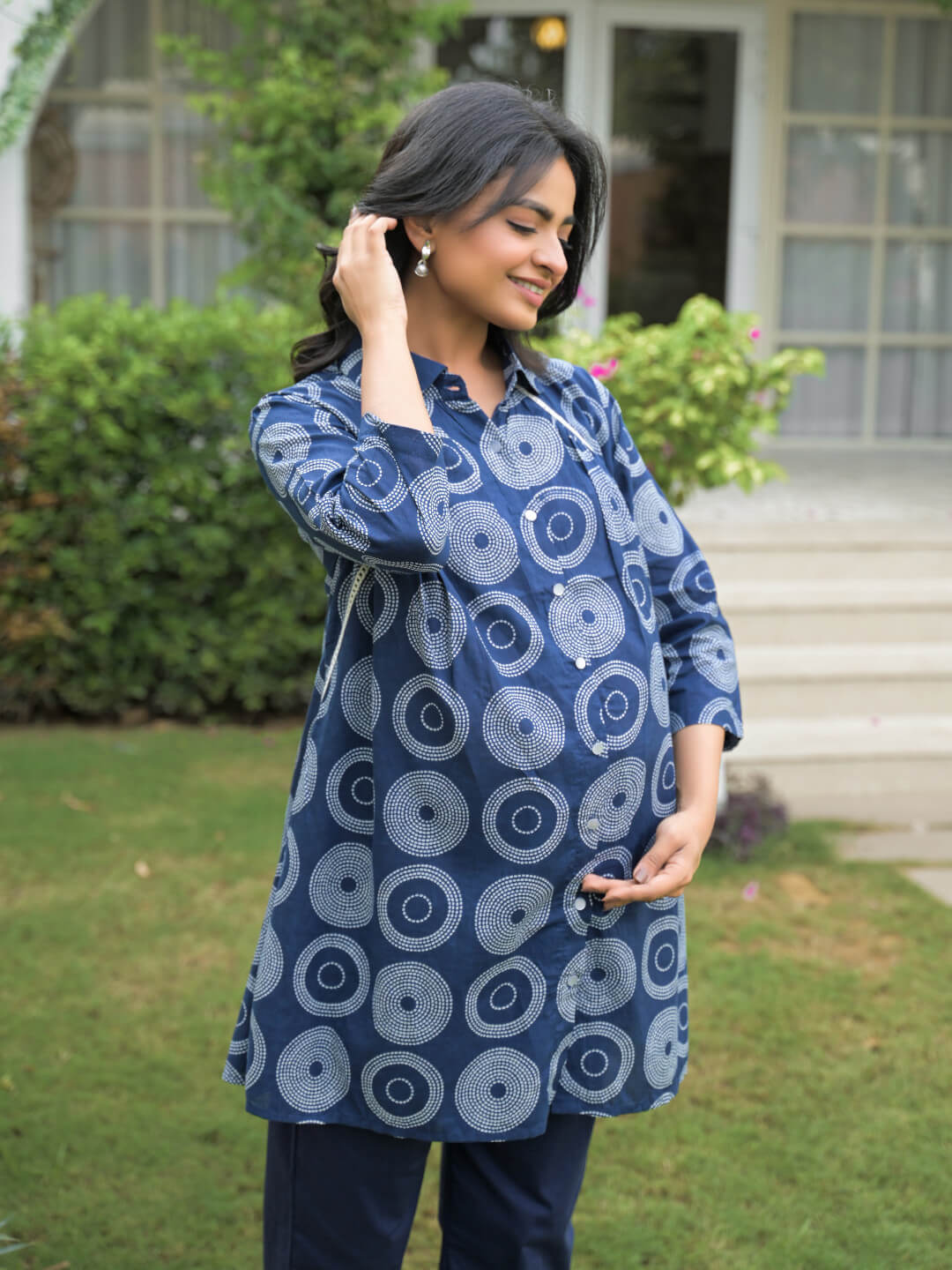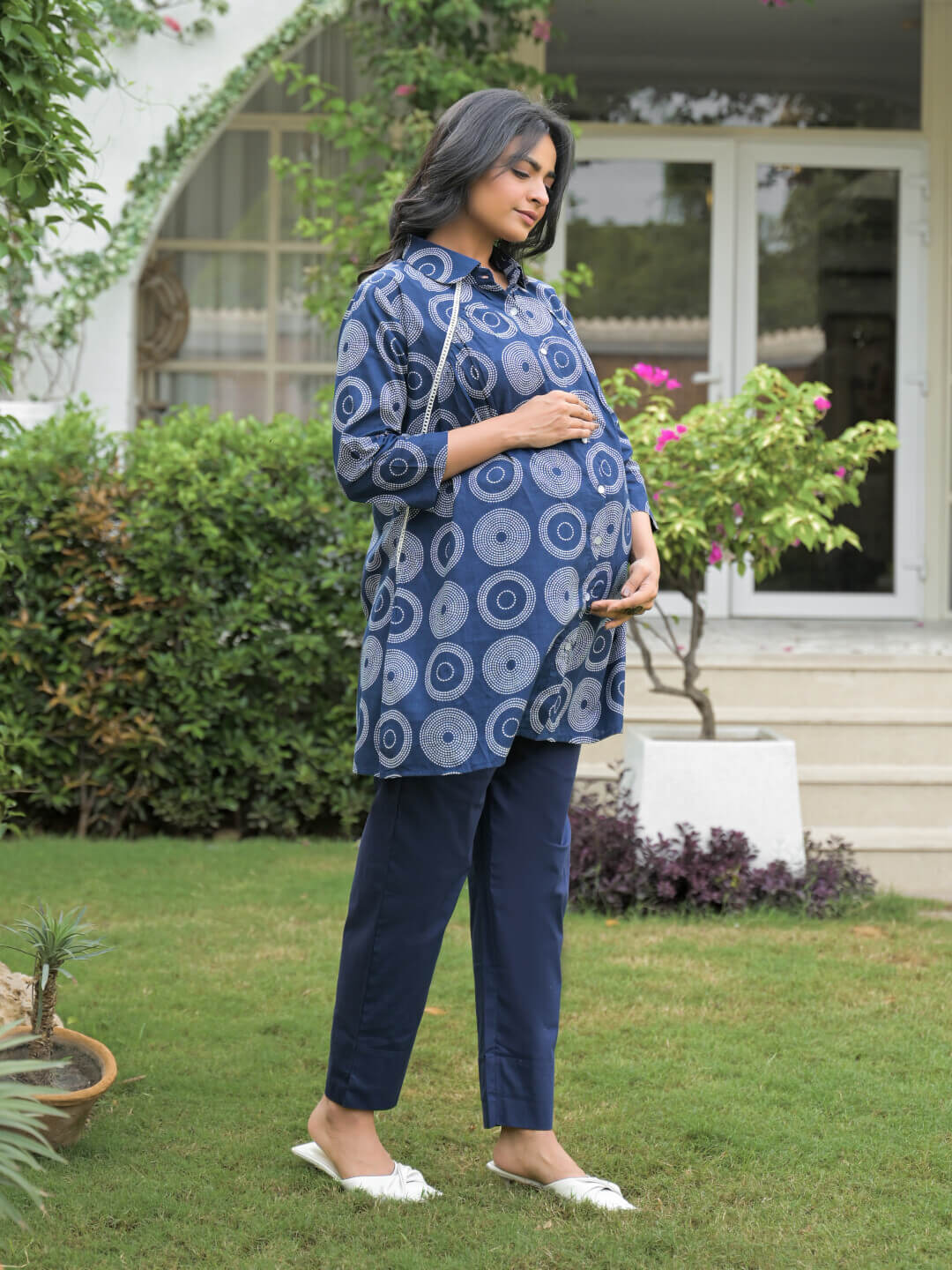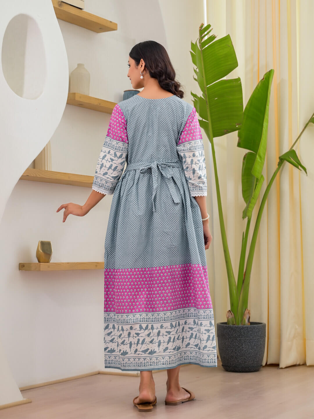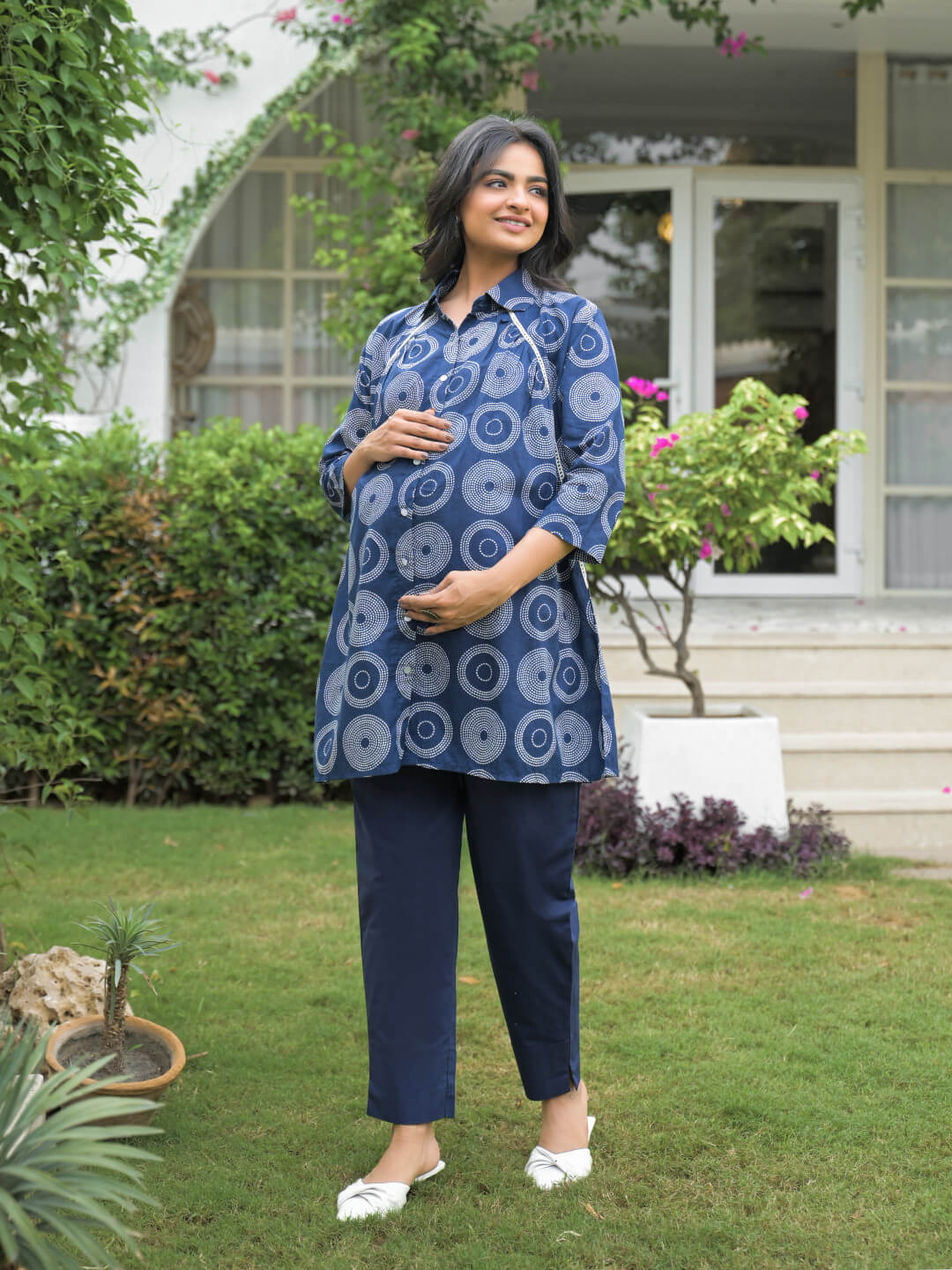 Maroon Printed Front Zipper Maternity Feeding Kaftan