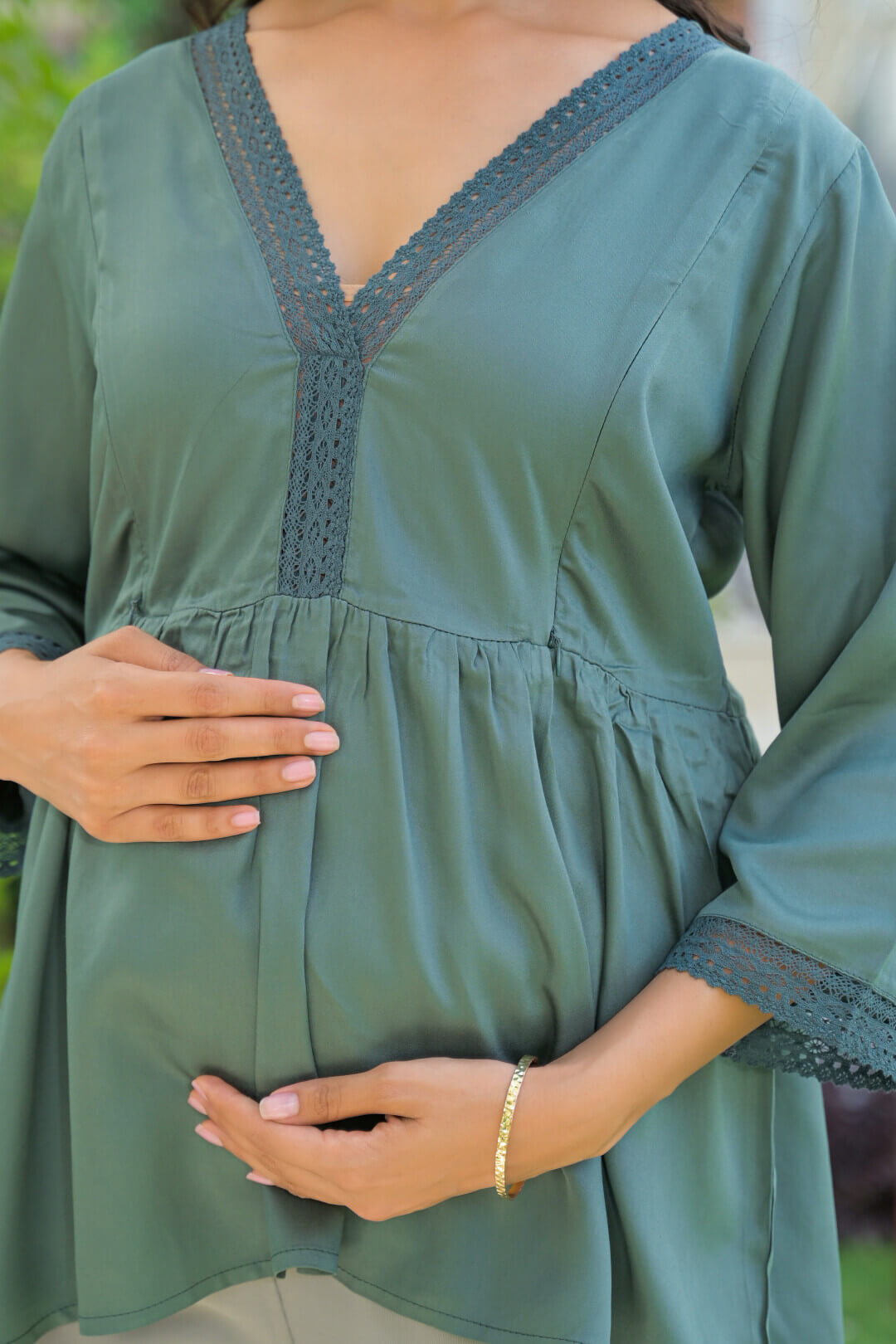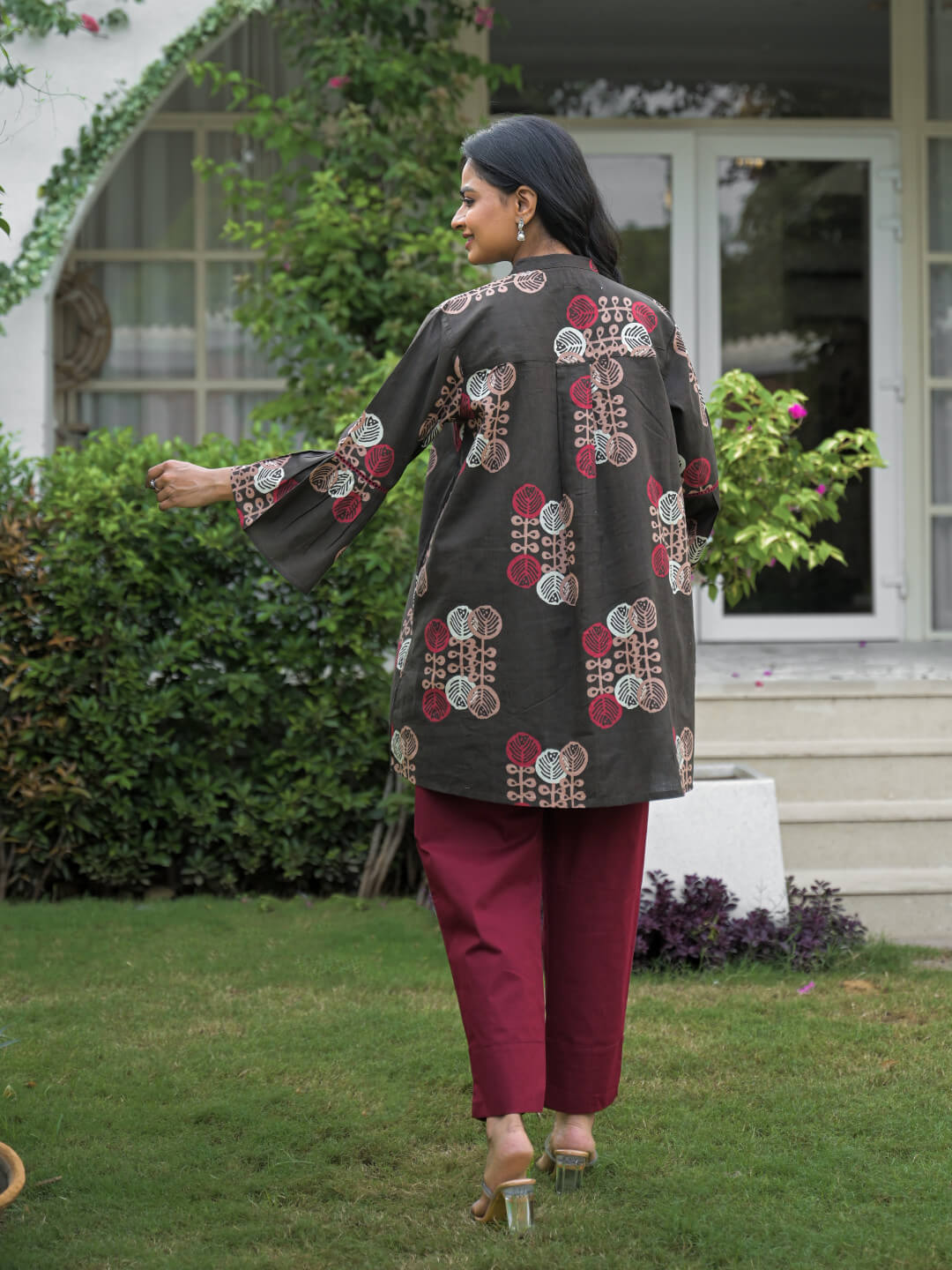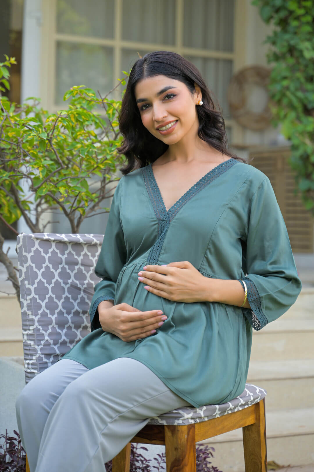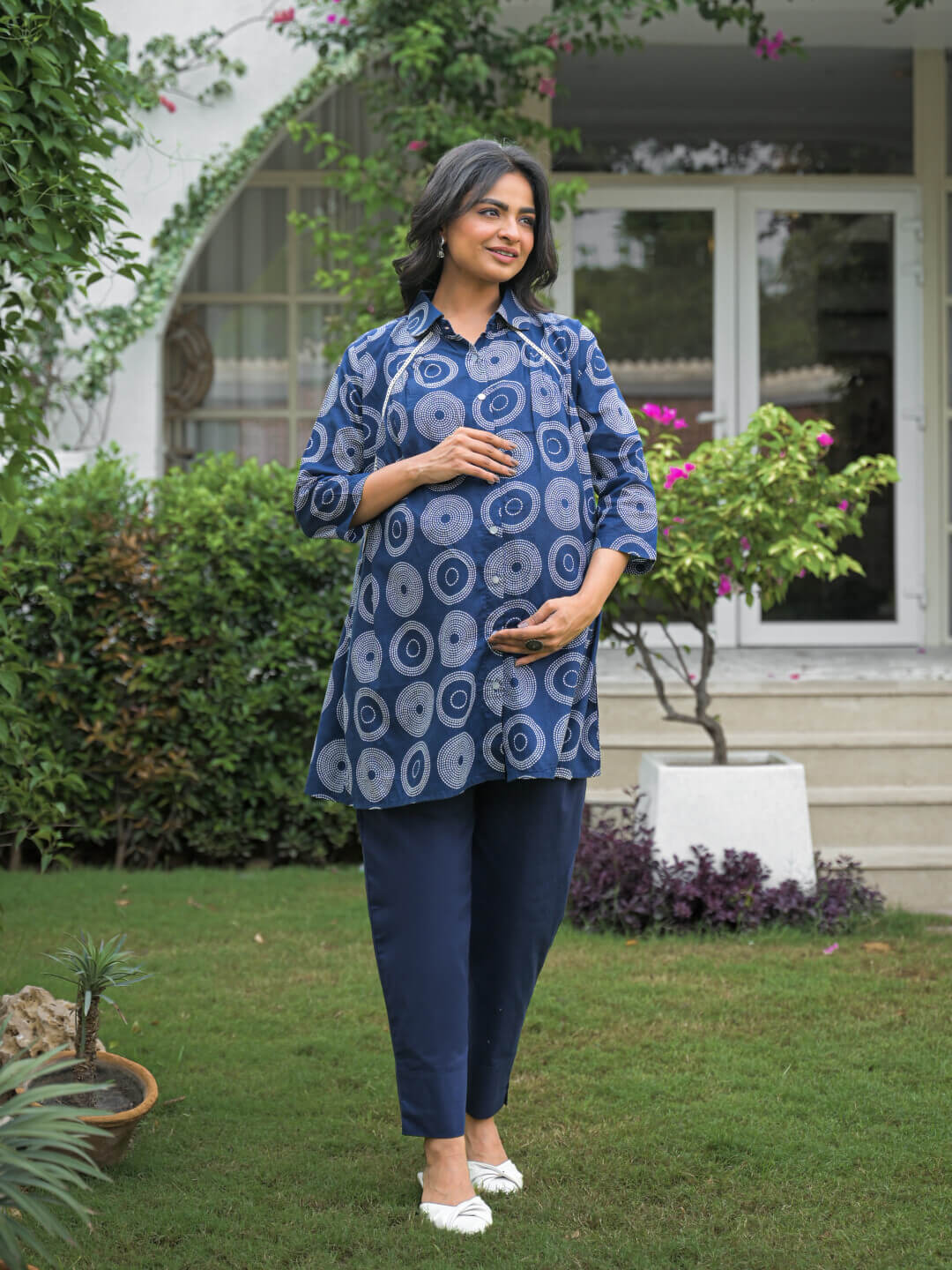 Maroon Printed Front Zipper Maternity Feeding Kaftan