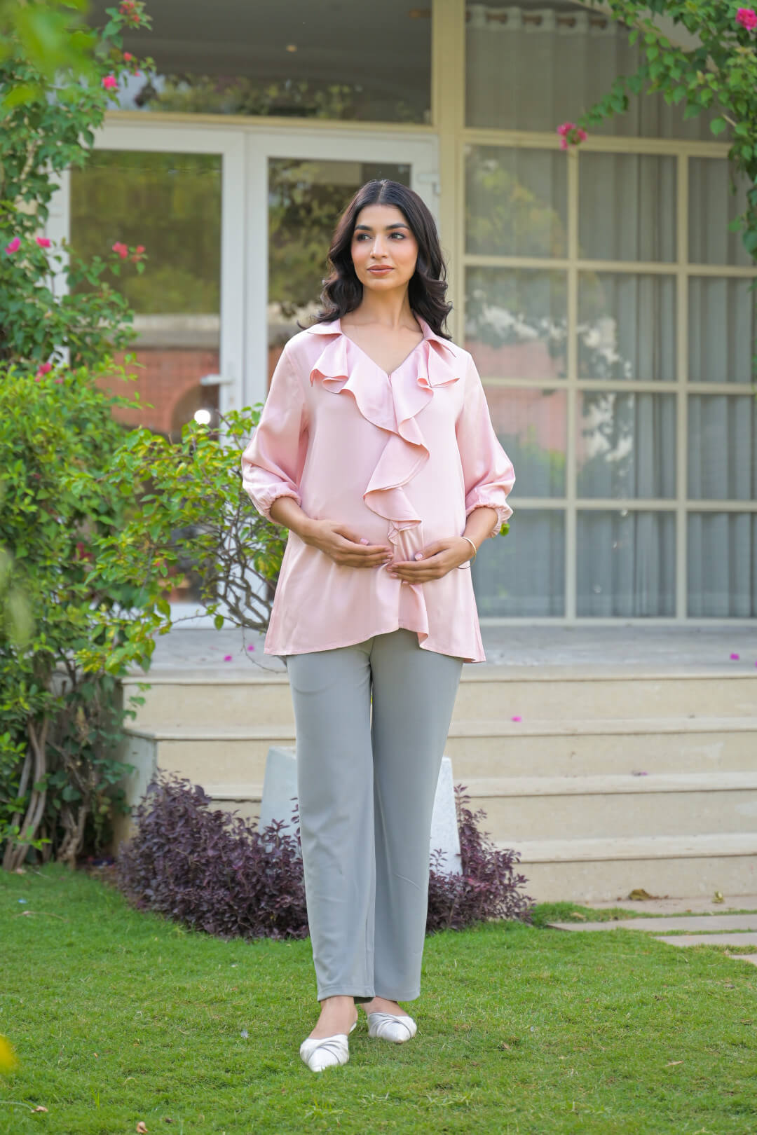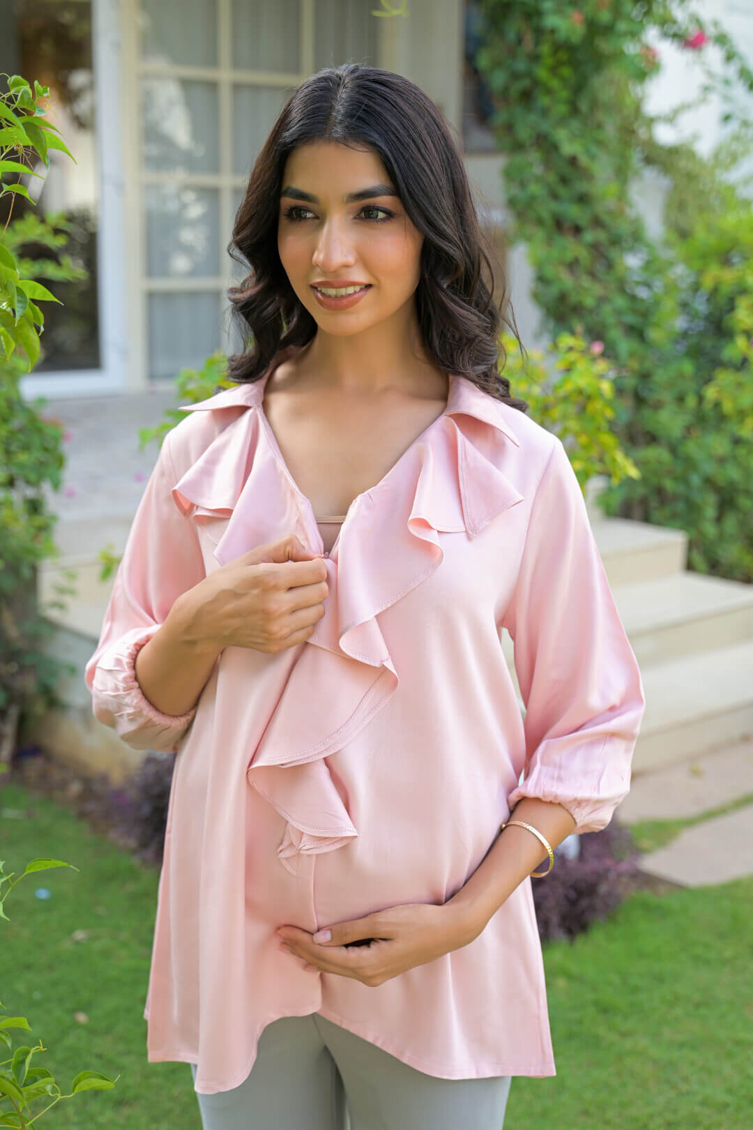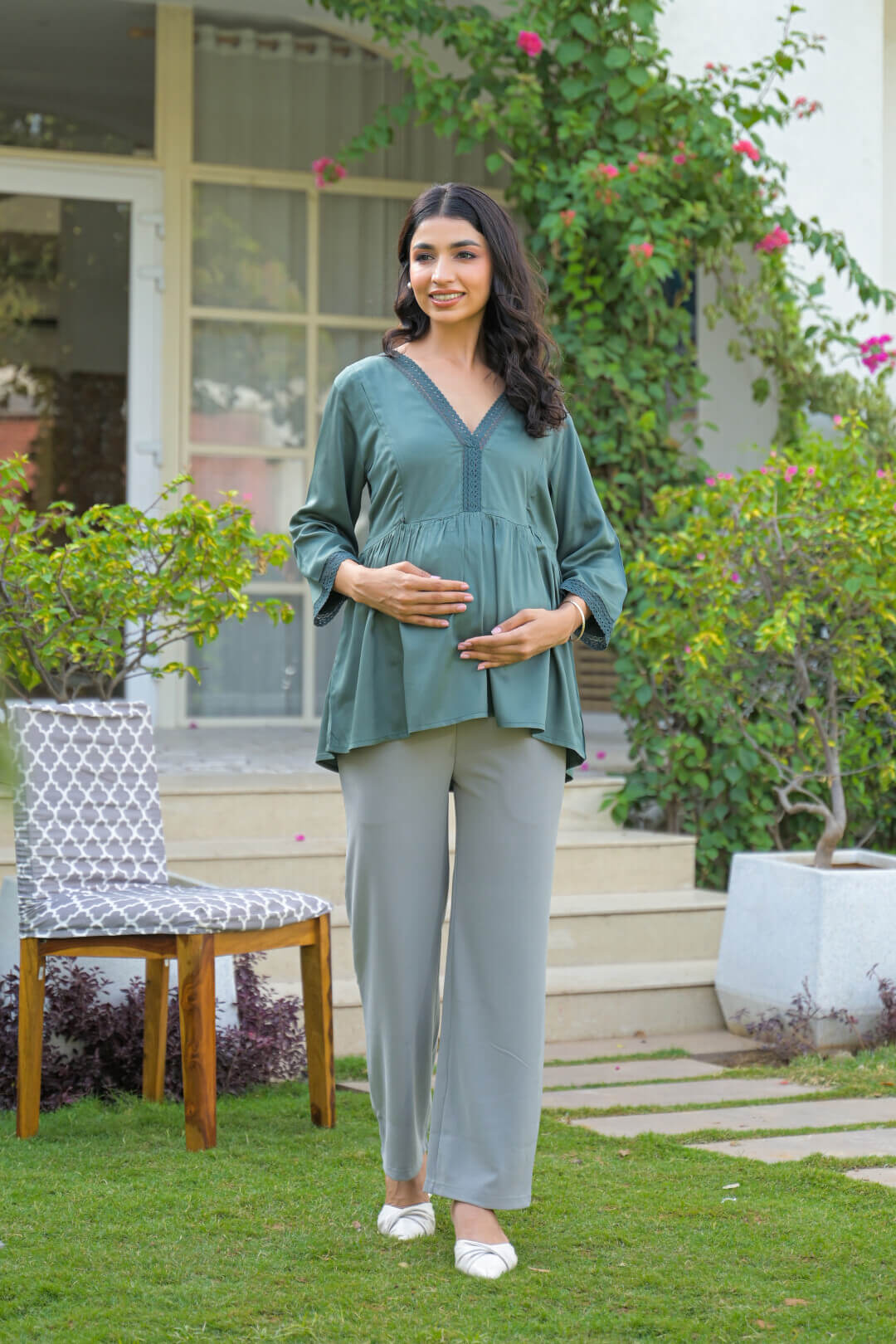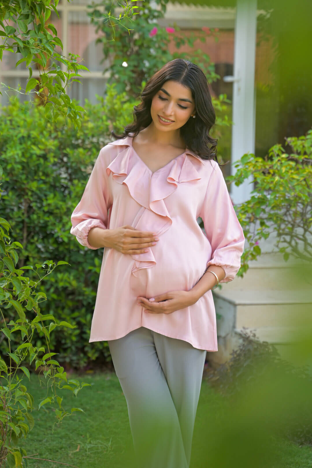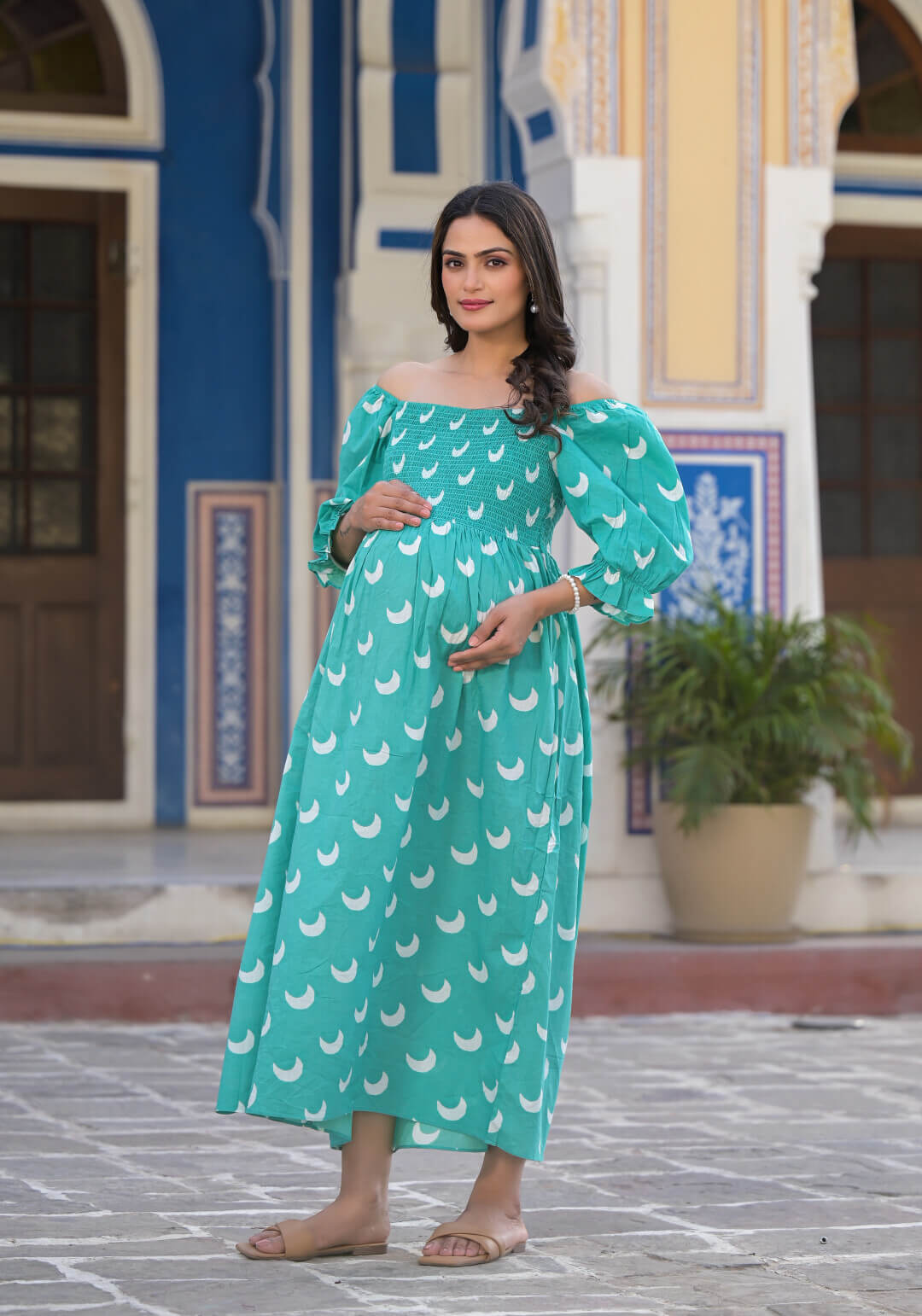 Maroon Printed Front Zipper Maternity Feeding Kaftan