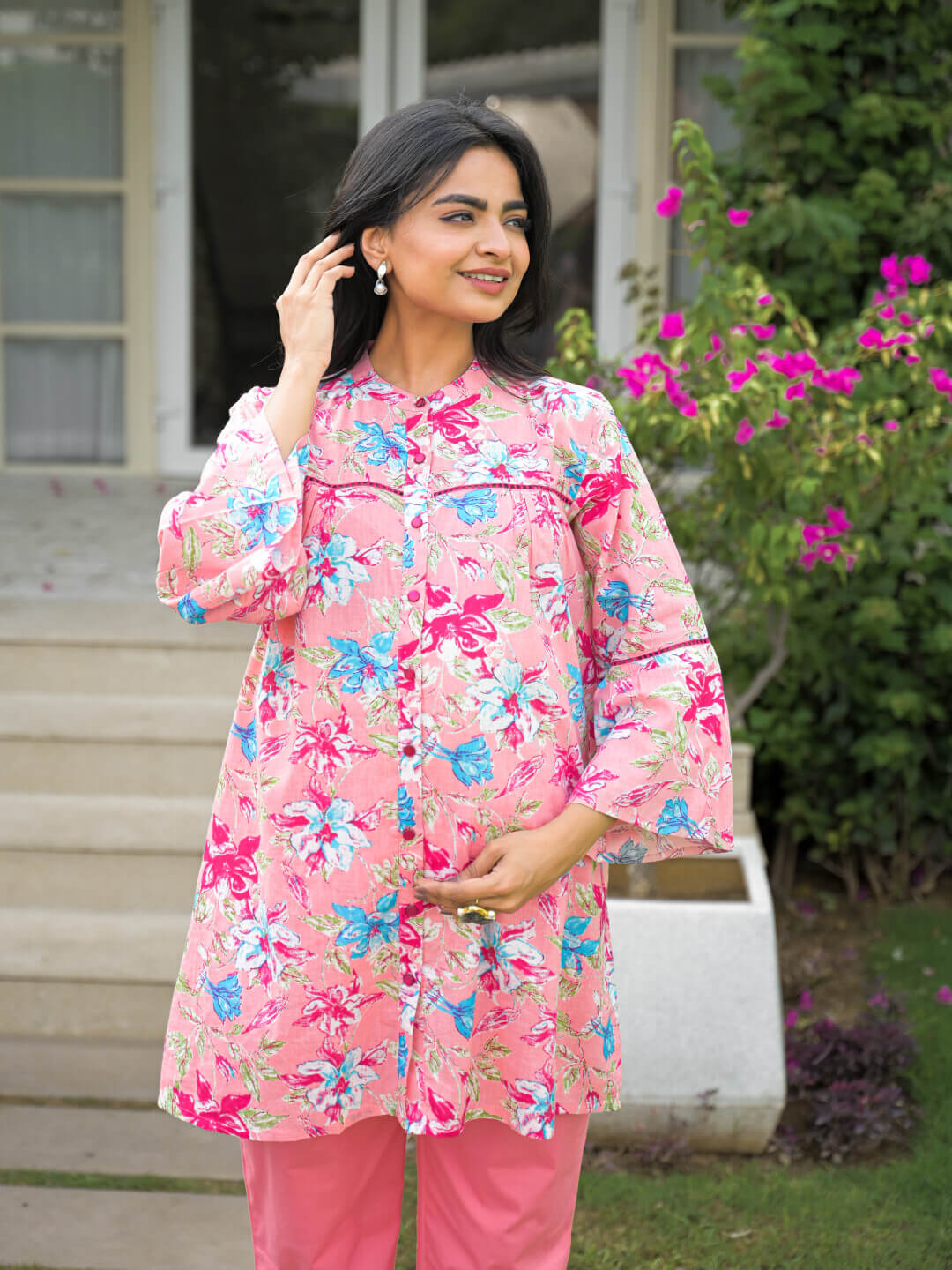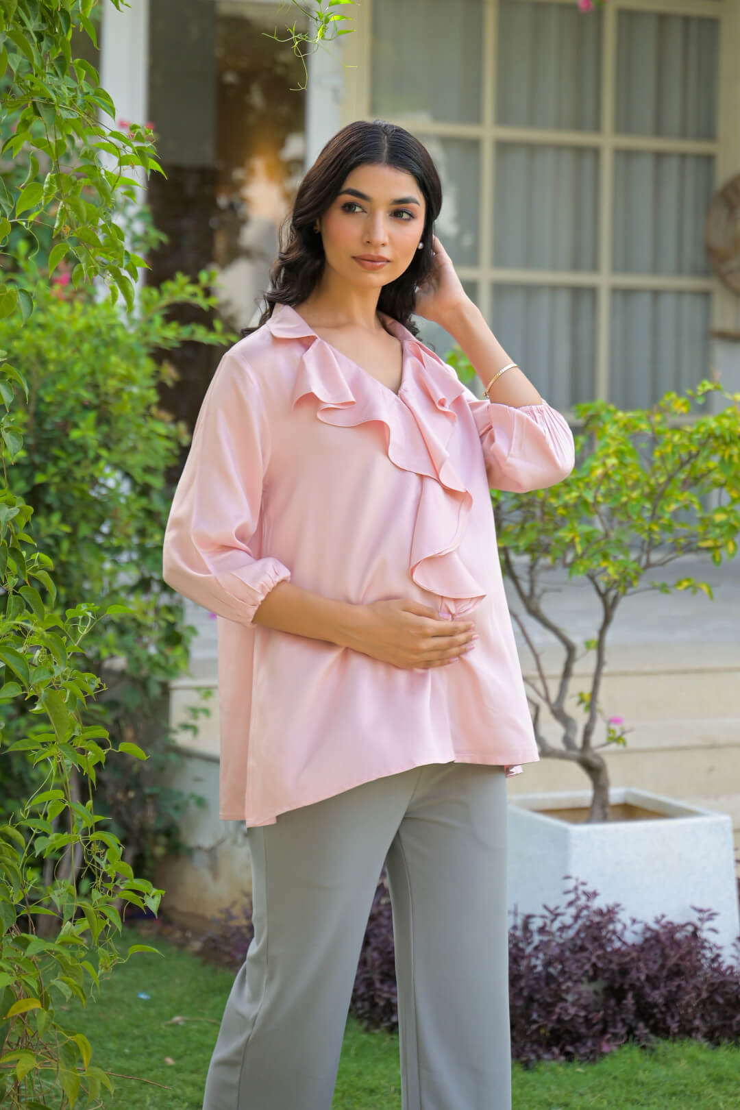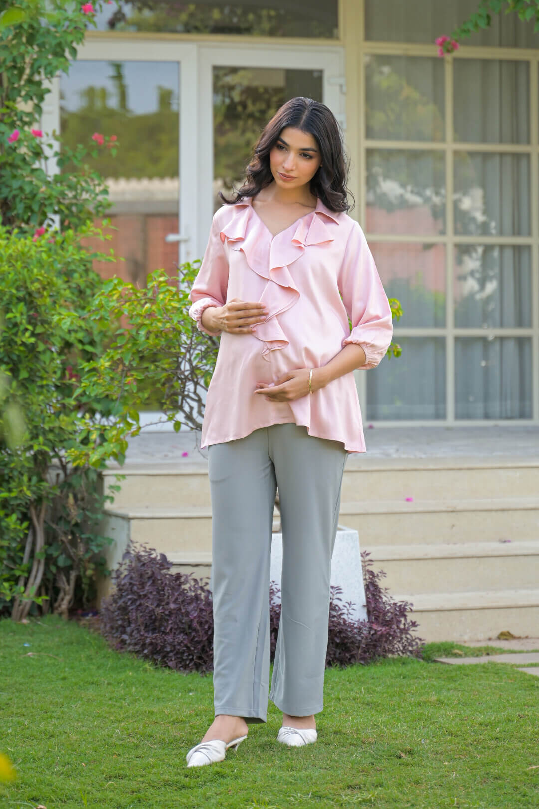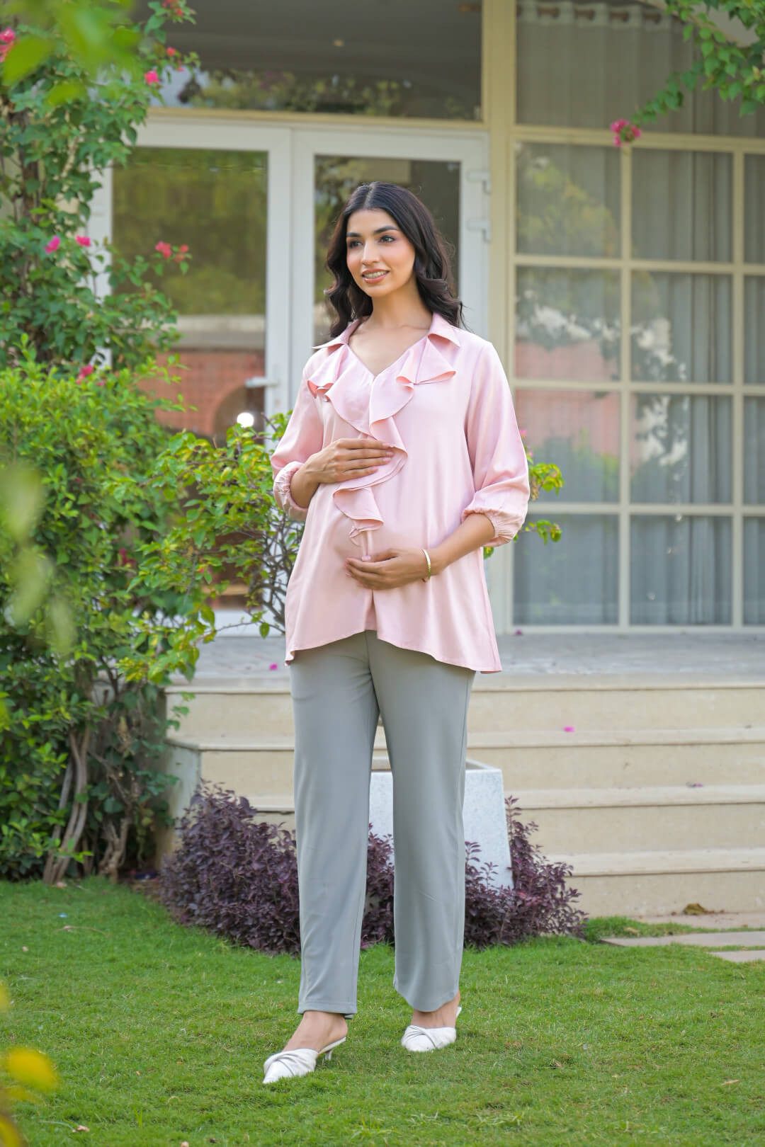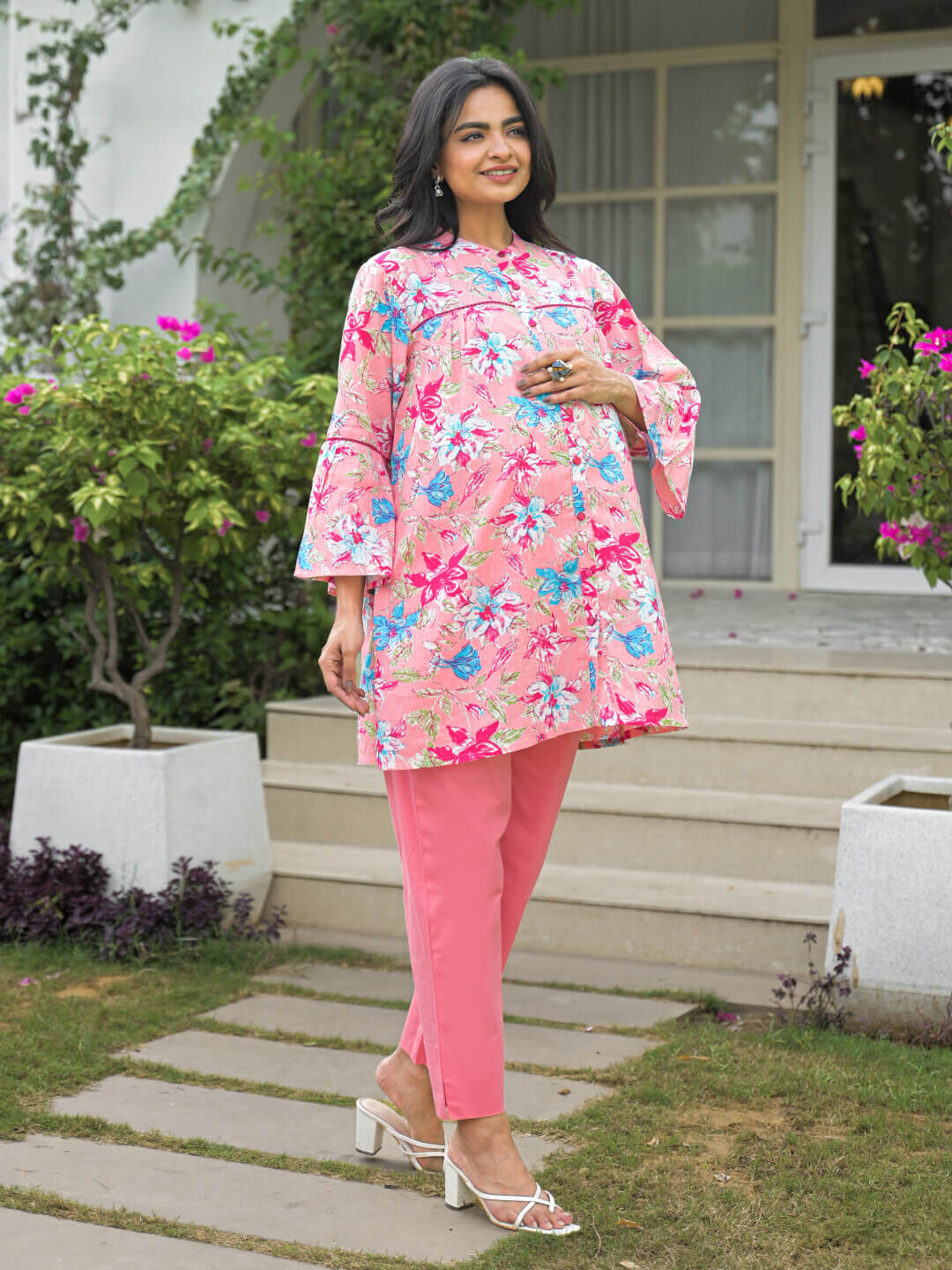 Maroon Printed Front Zipper Maternity Feeding Kaftan