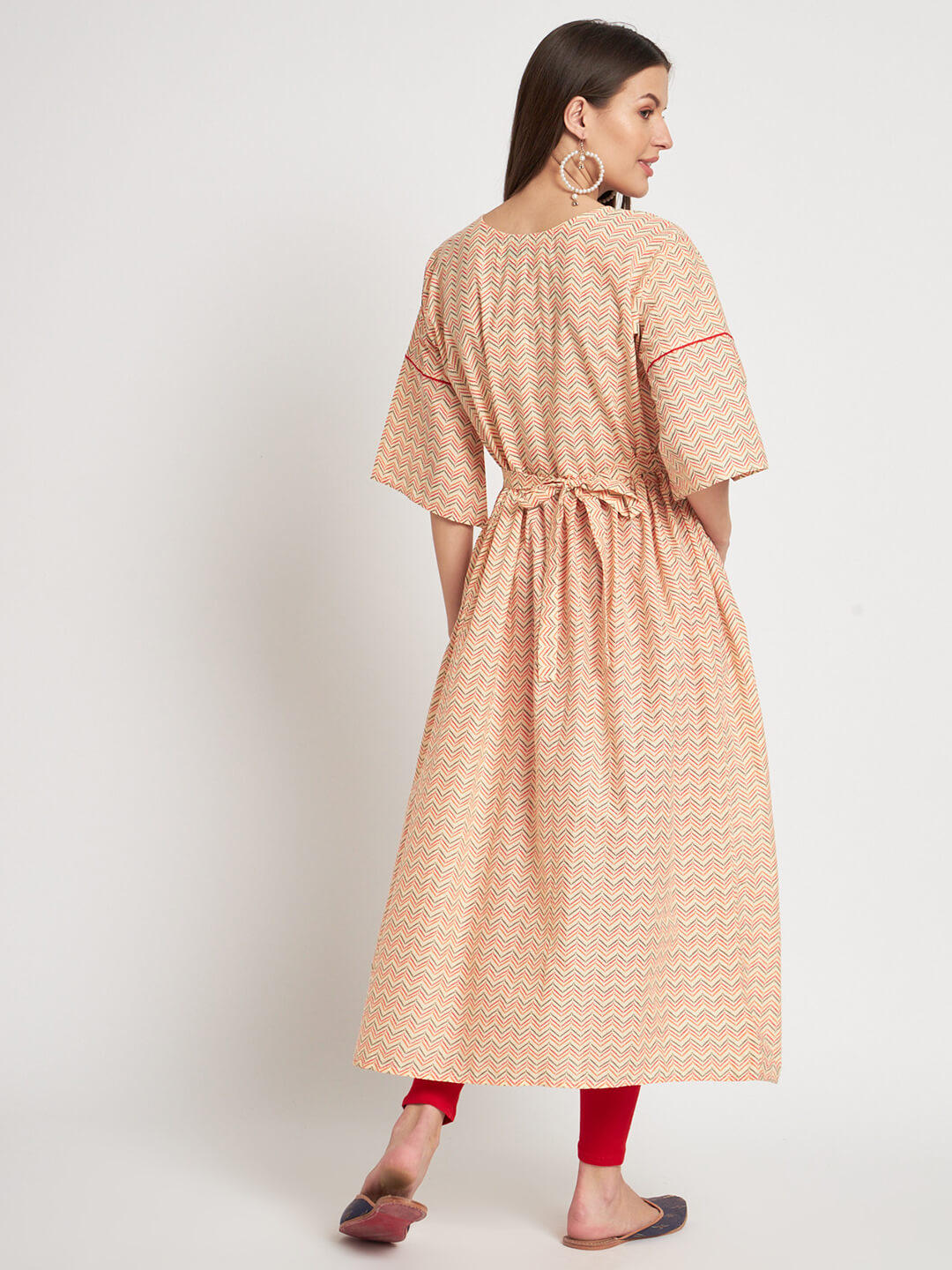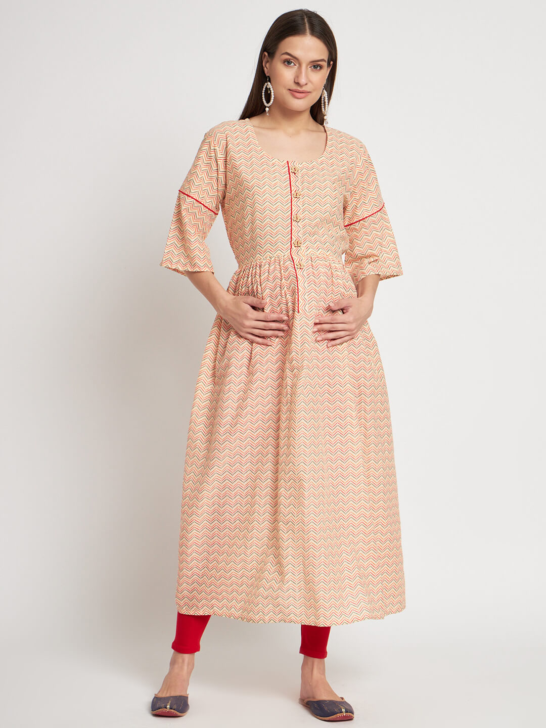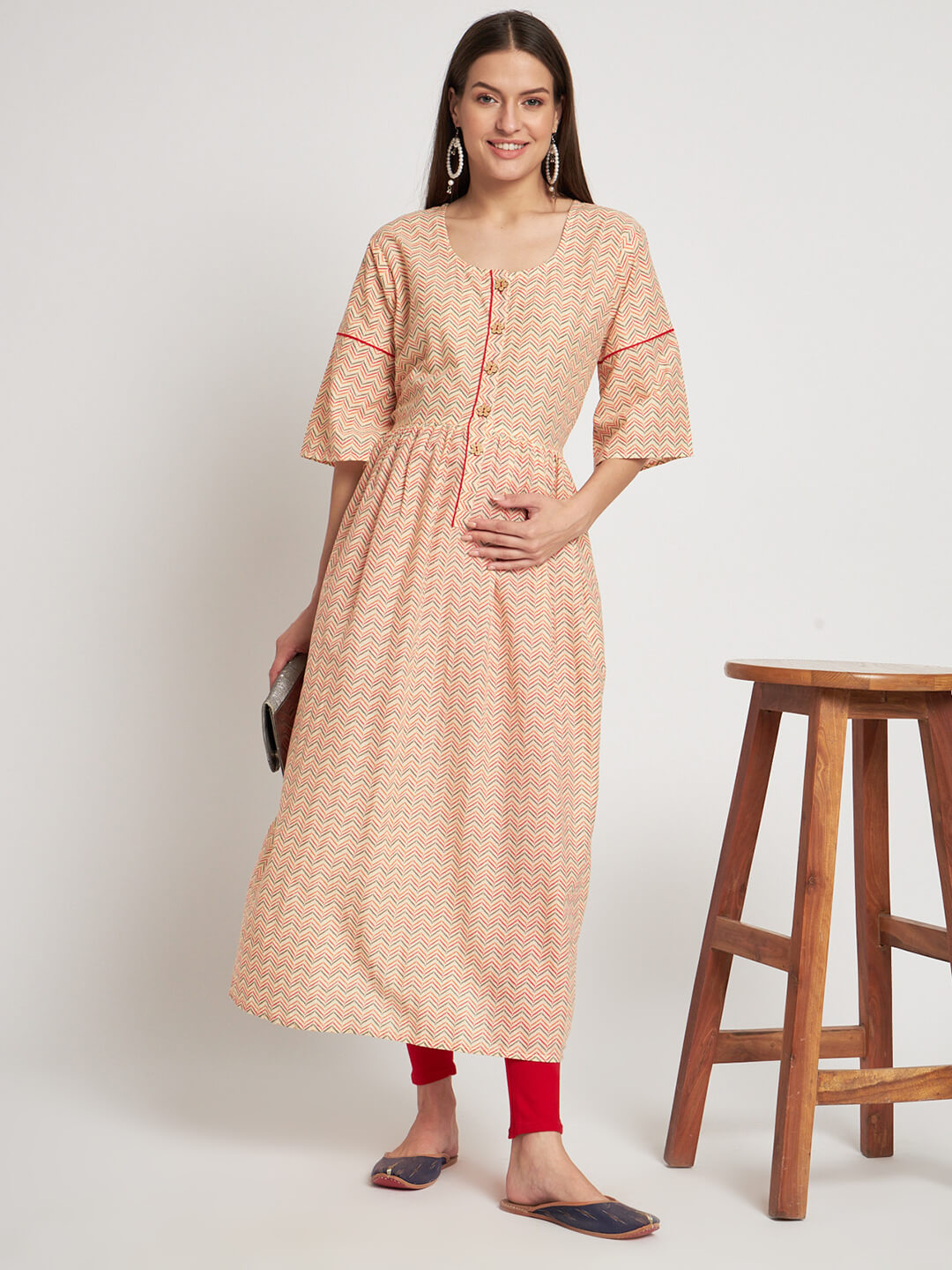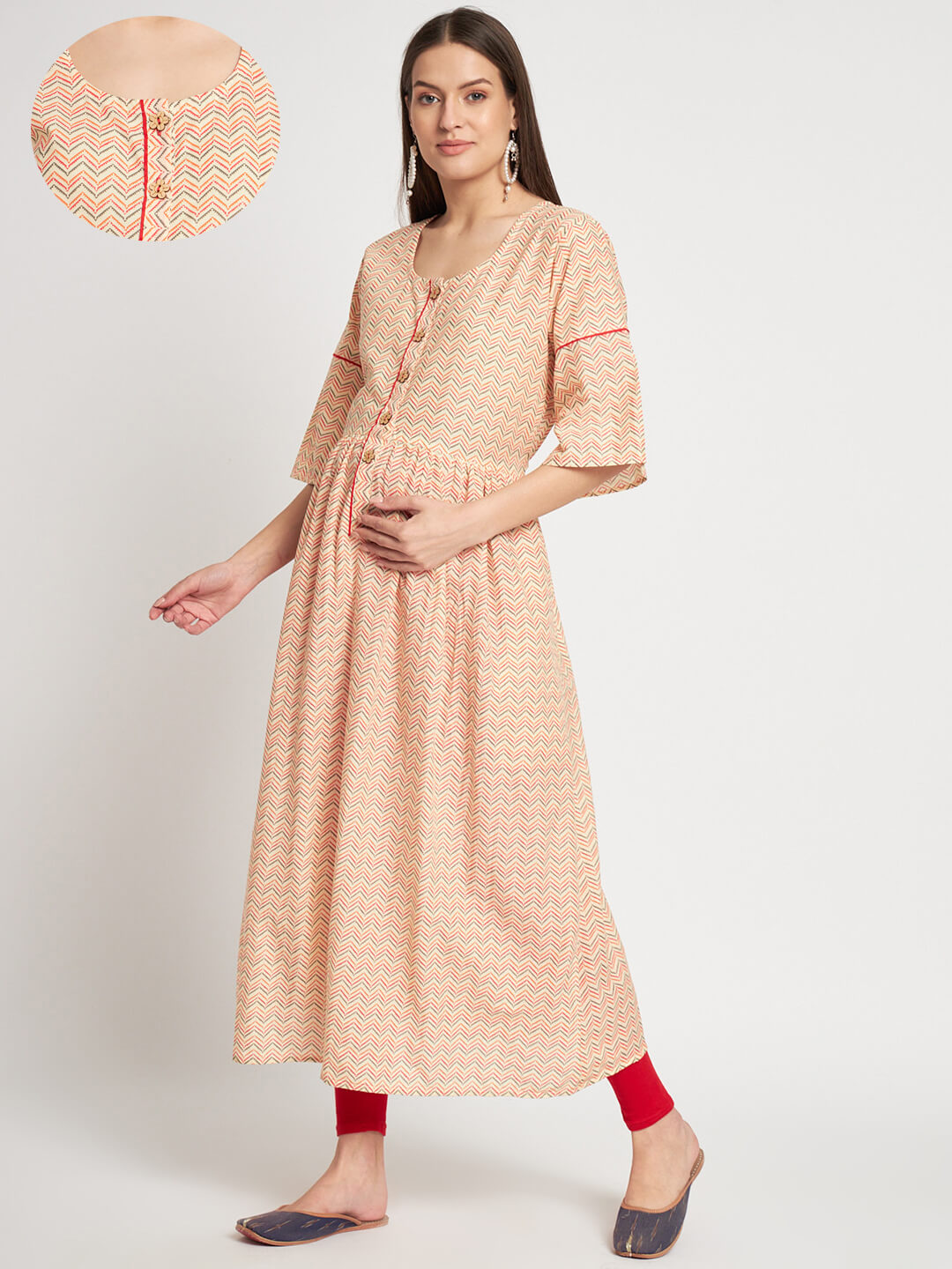 Off White Multi Cotton Printed Maternity Feeding Kurta