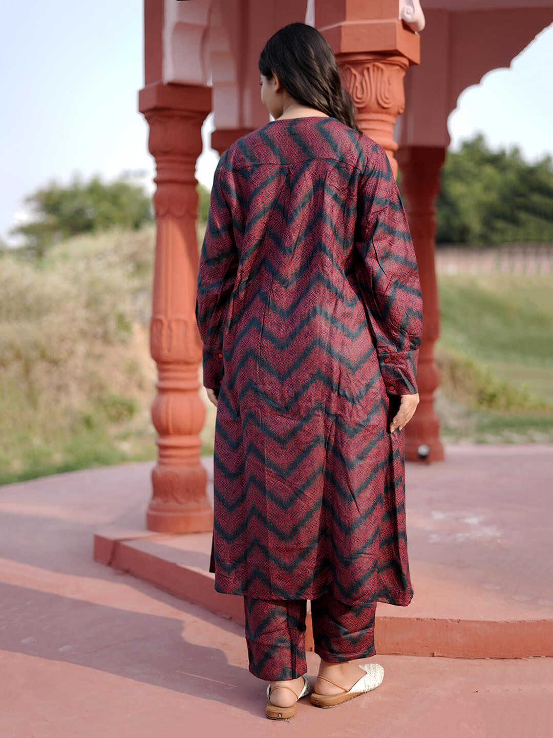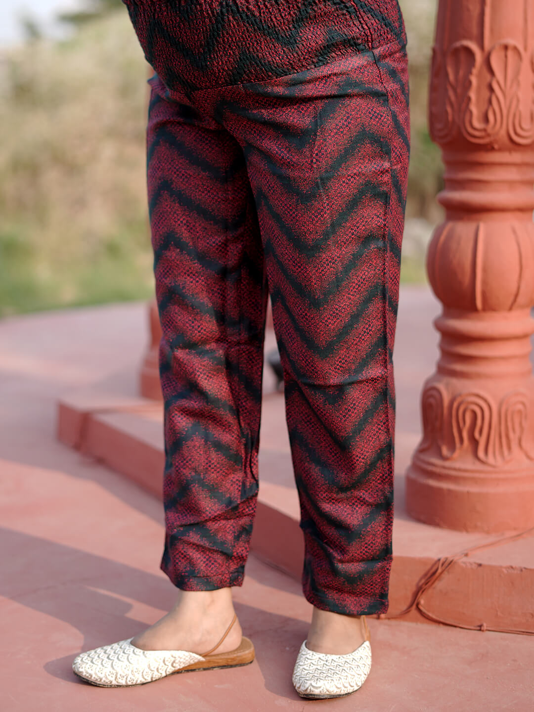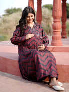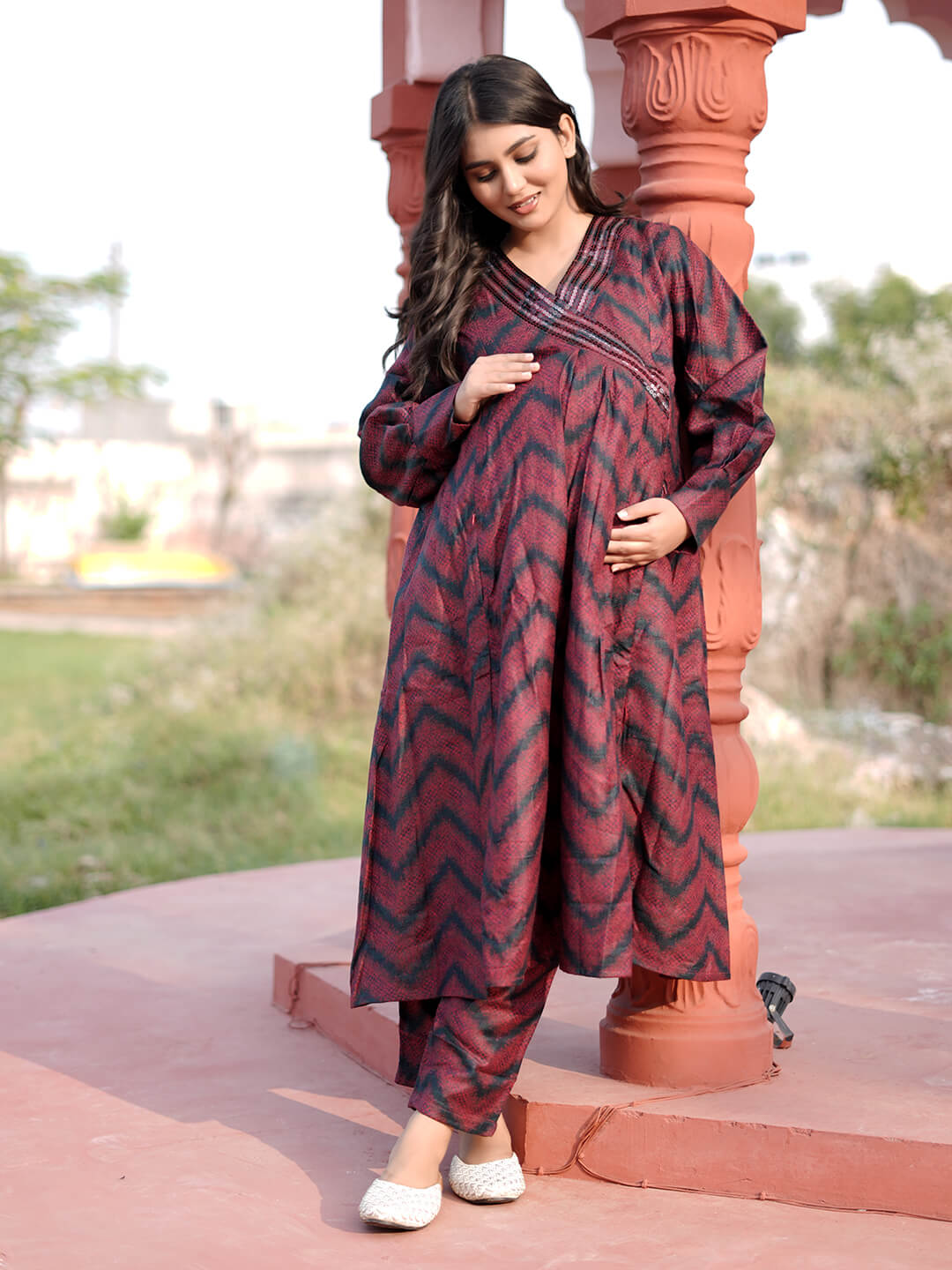 Maroon Black Self Woven Woolen Maternity Feeding Flared Kurta Set
