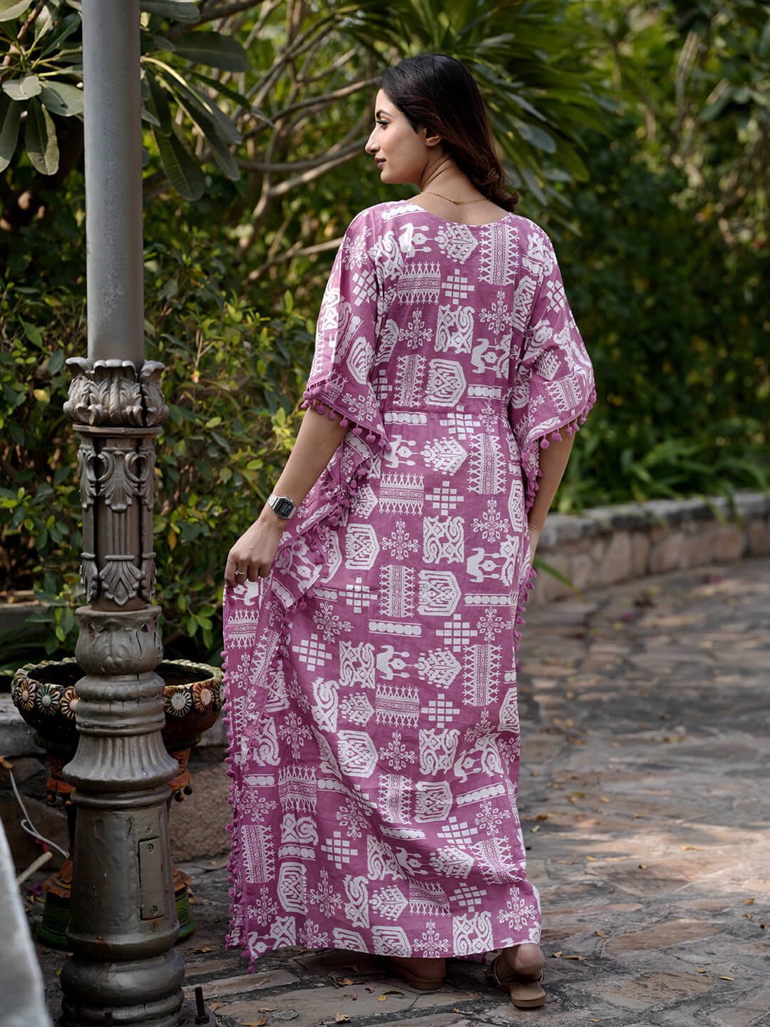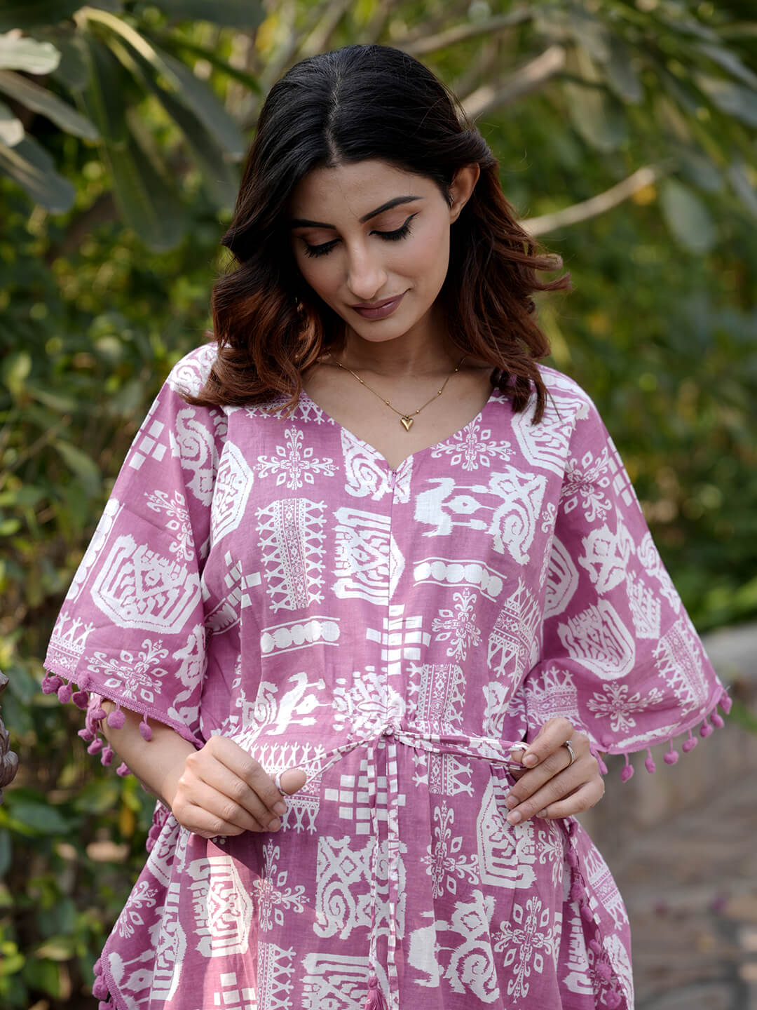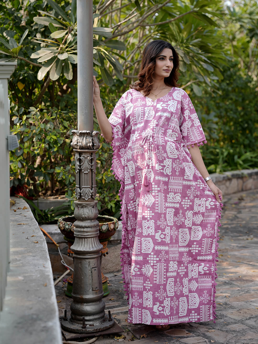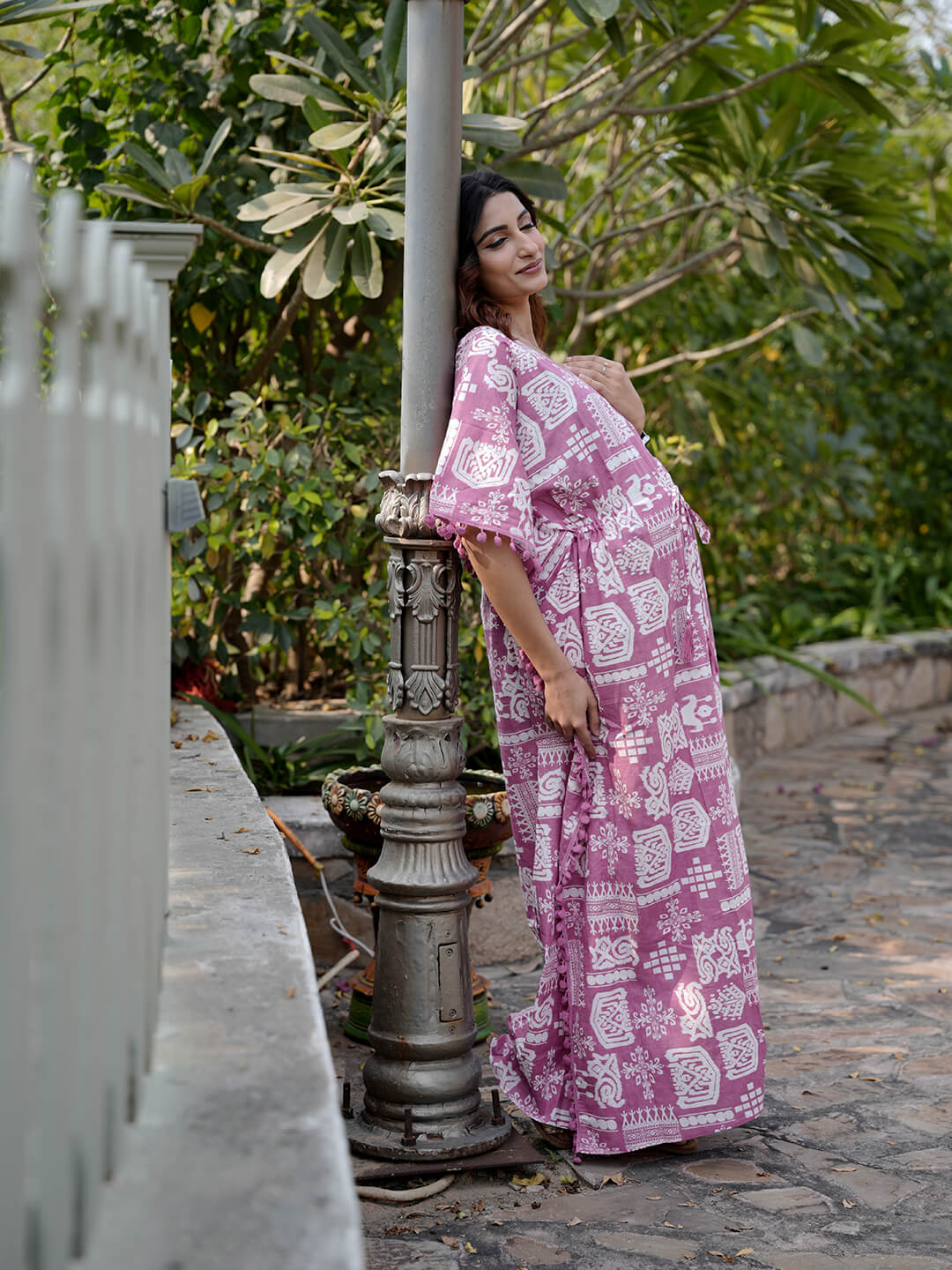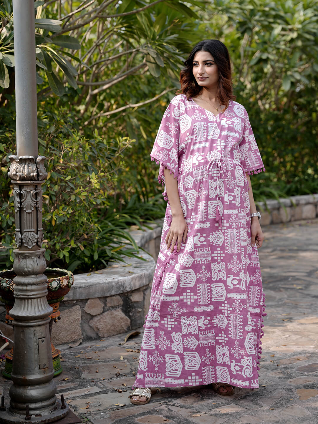Mauve Ethnic Print Maternity & Feeding Kaftan Dress with Concealed Zipper