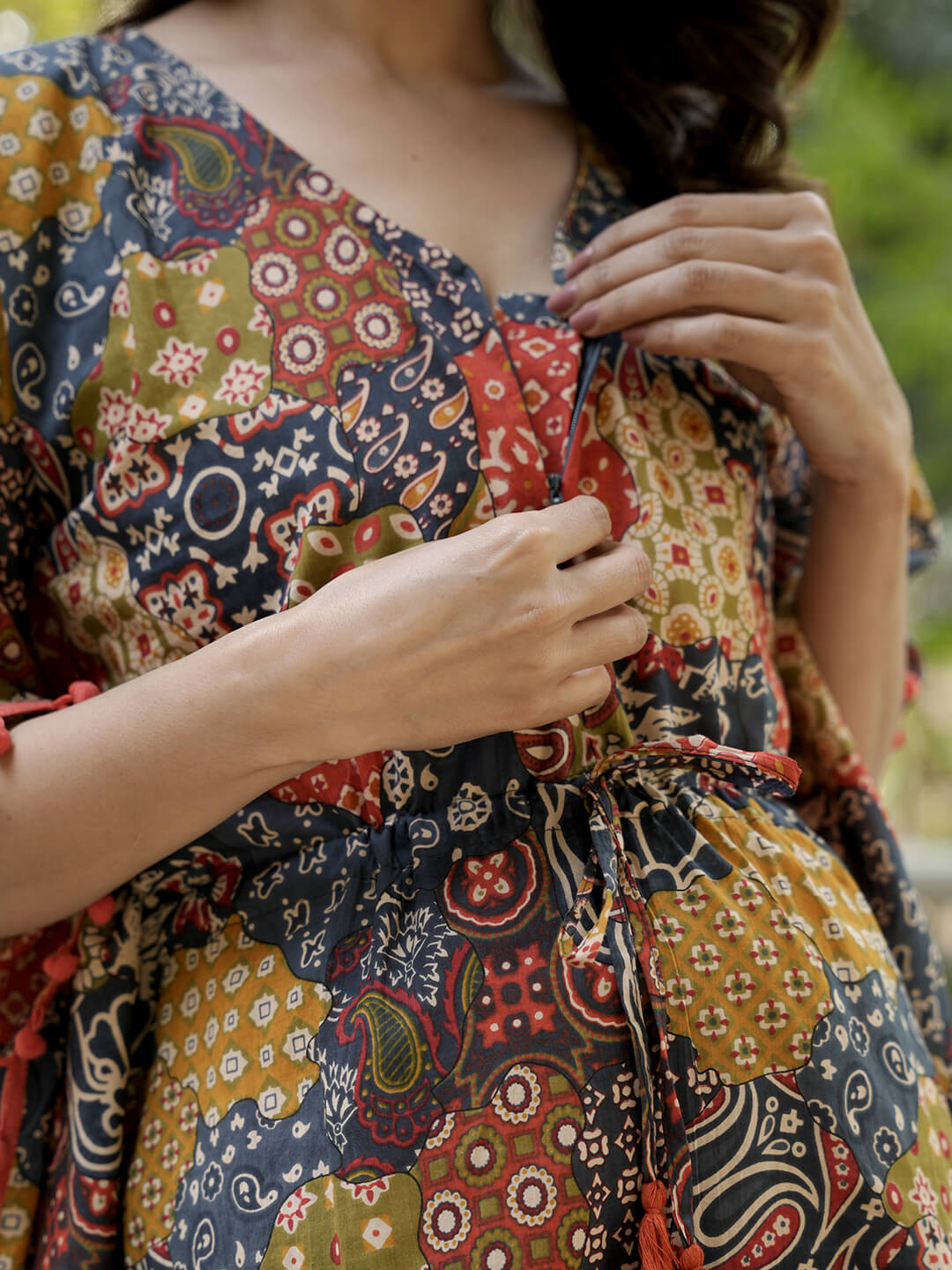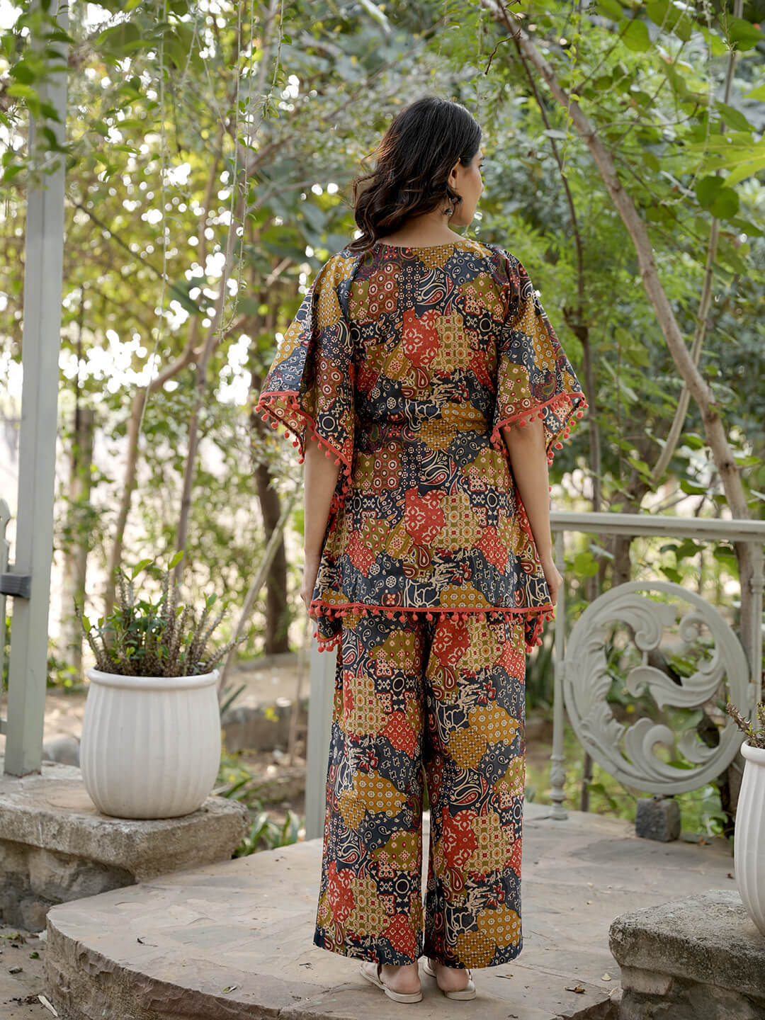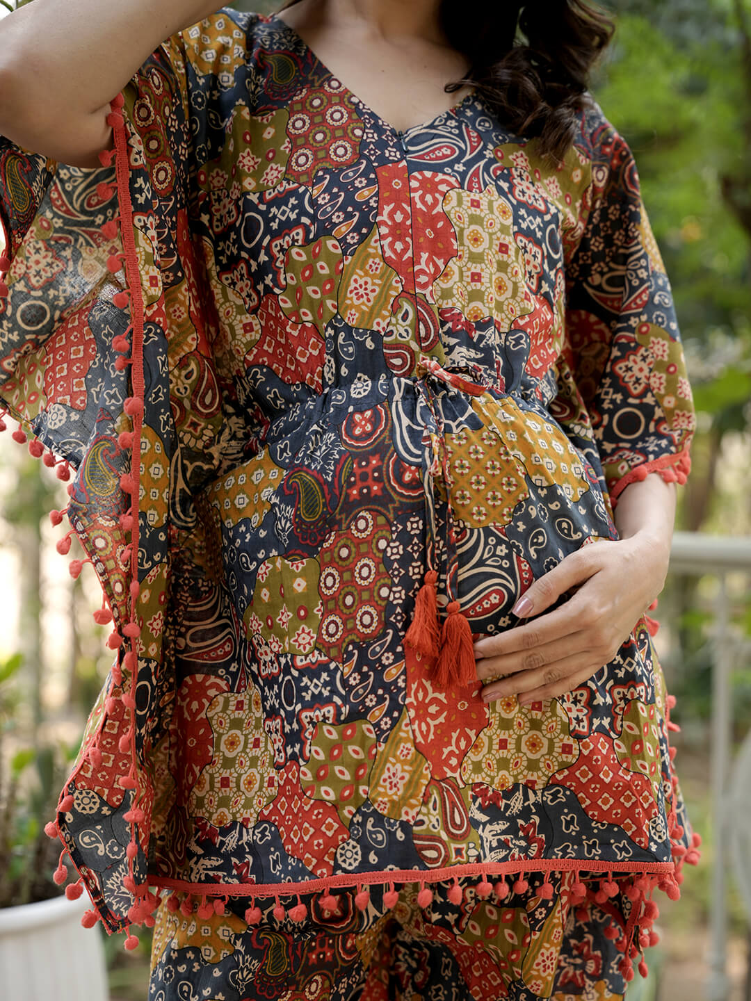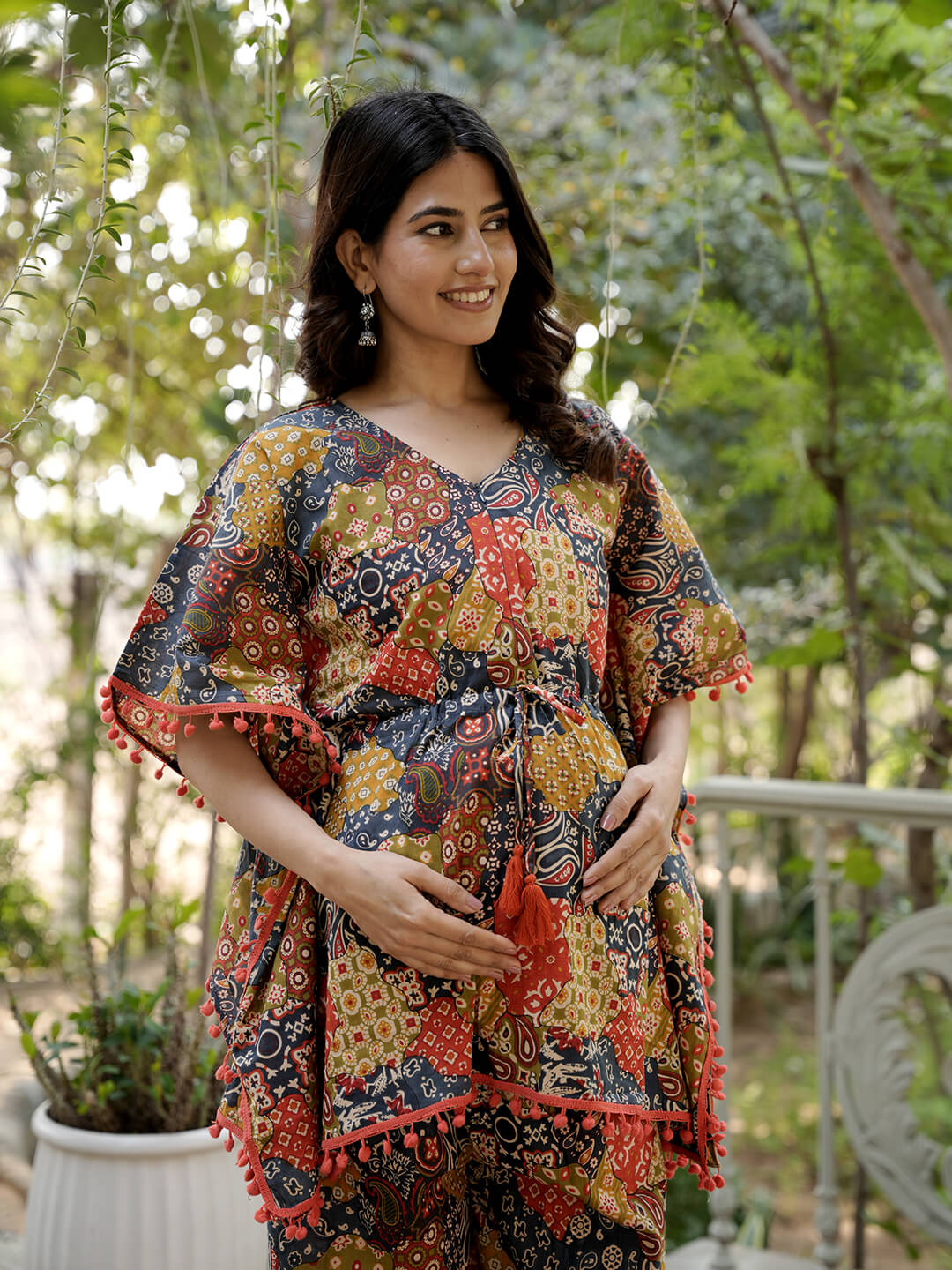 Multicolor Printed Cotton Maternity Feeding-Friendly Kaftan Night Suit