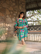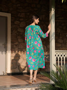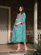 Sea Green Floral Printed Maternity & Nursing Midi Dress with Concealed Feeding Zippers