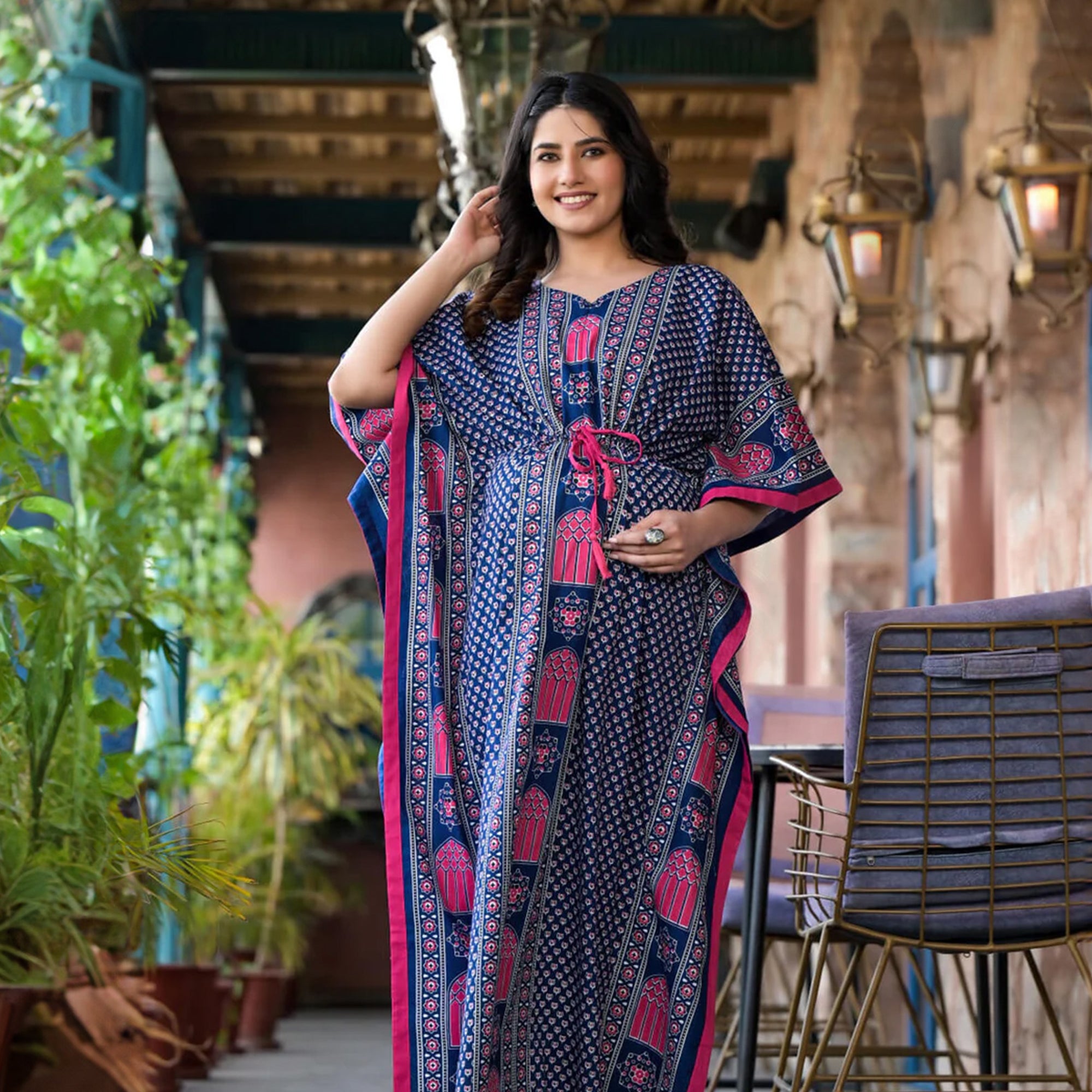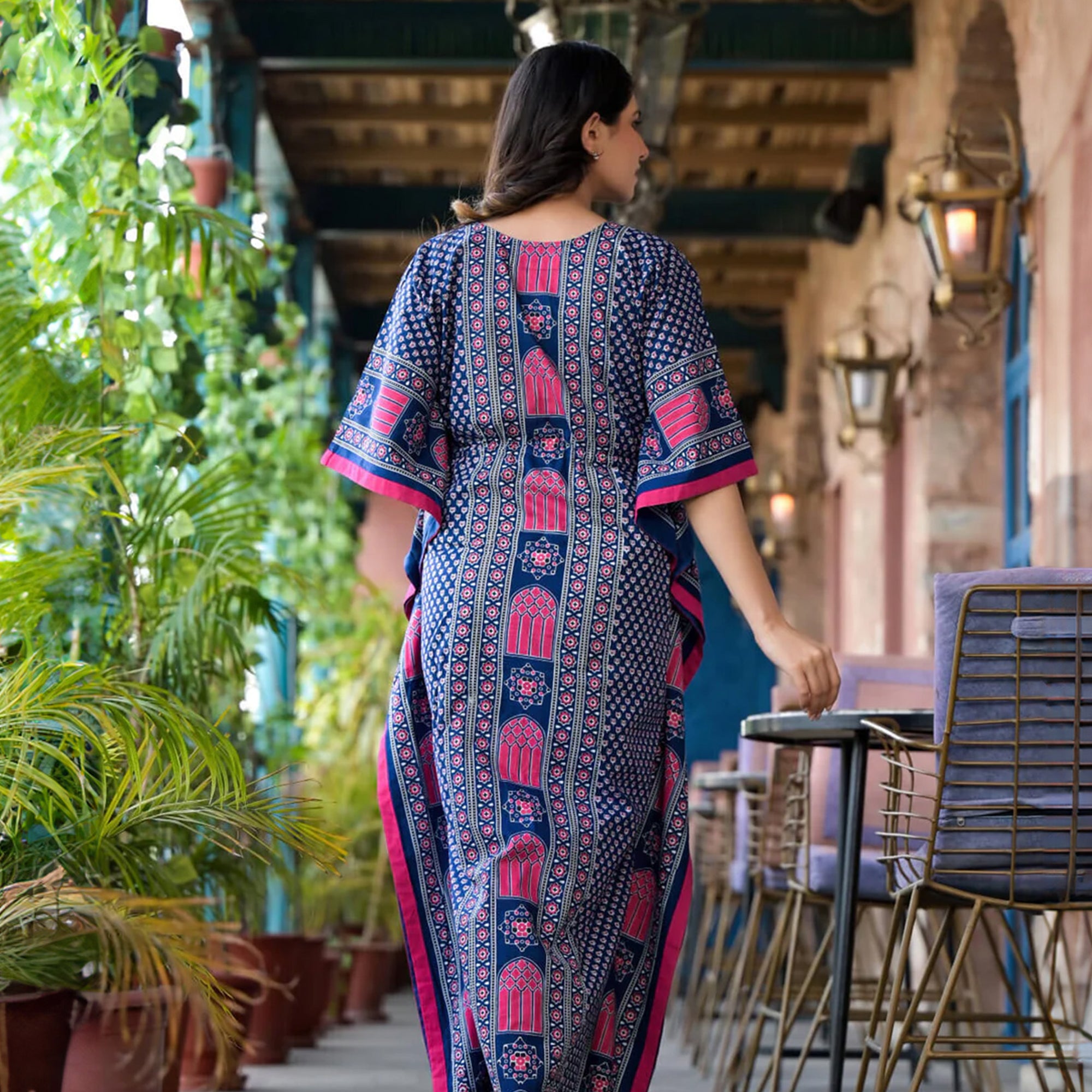 The kaftan has a roomy, comfortable silhouette that allows free movement without pressure.