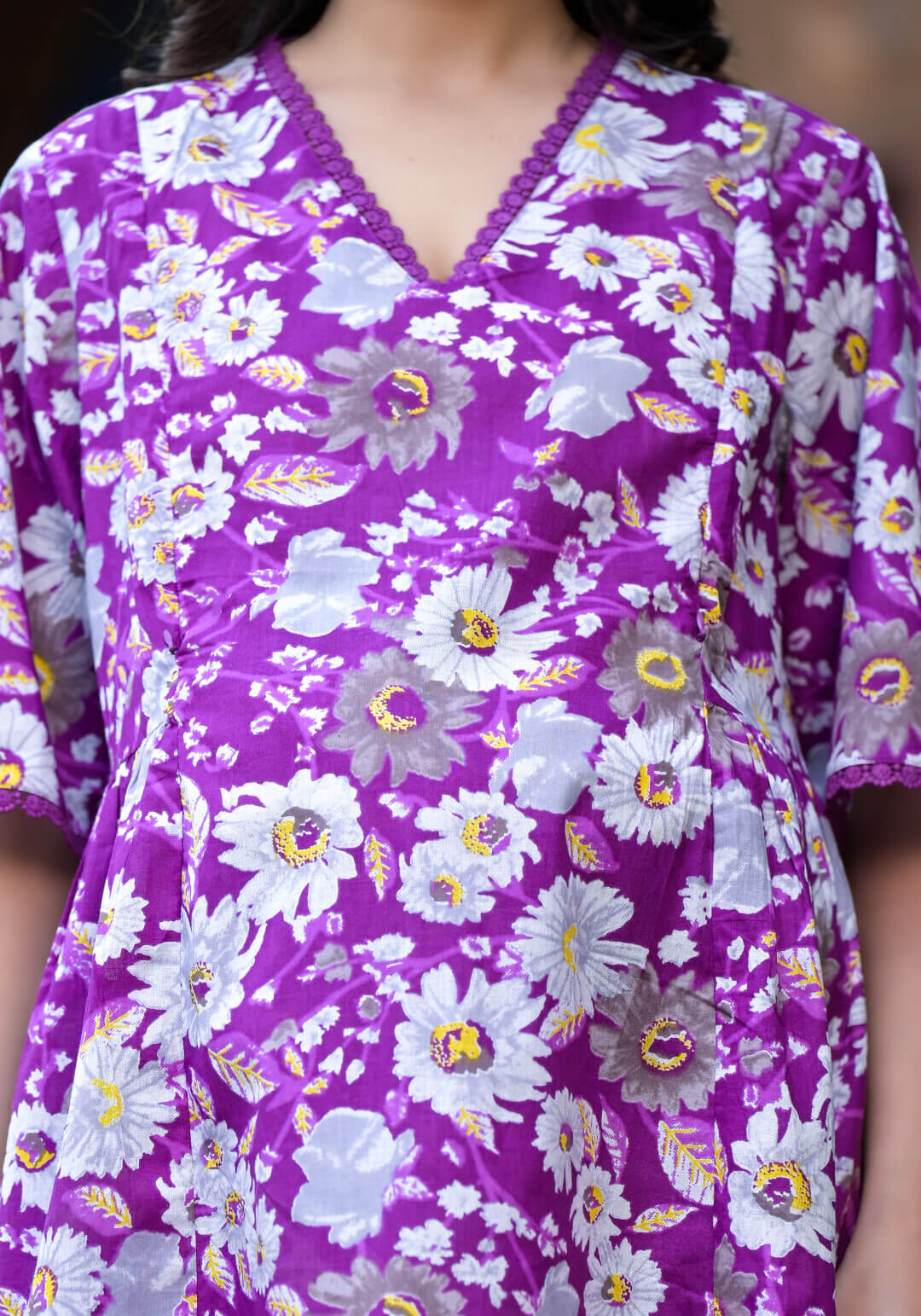 Off White Purple Cotton Printed Maternity Feeding Kurta Set