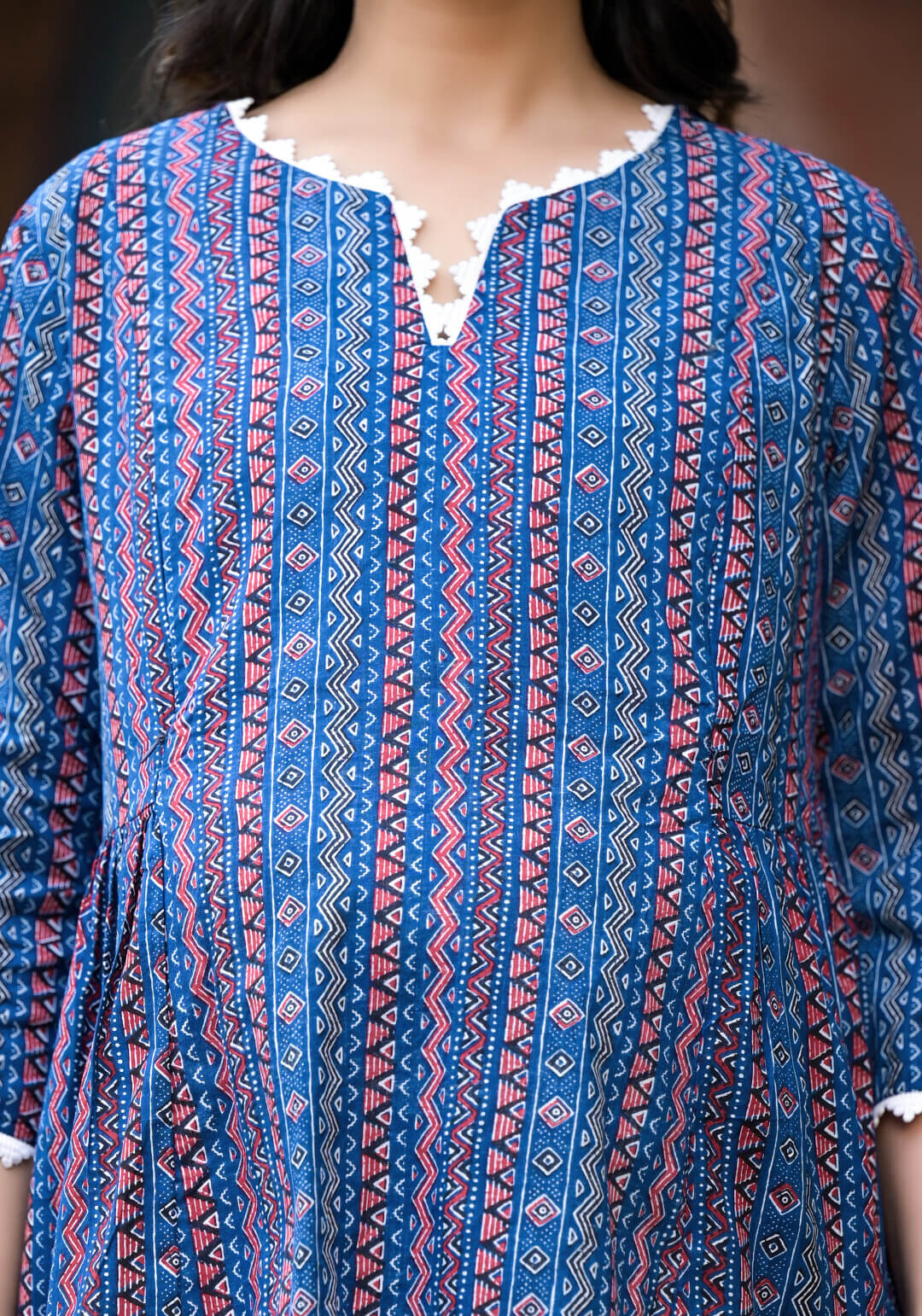 Indigo Red Printed Front Zipper Maternity Feeding Kaftan