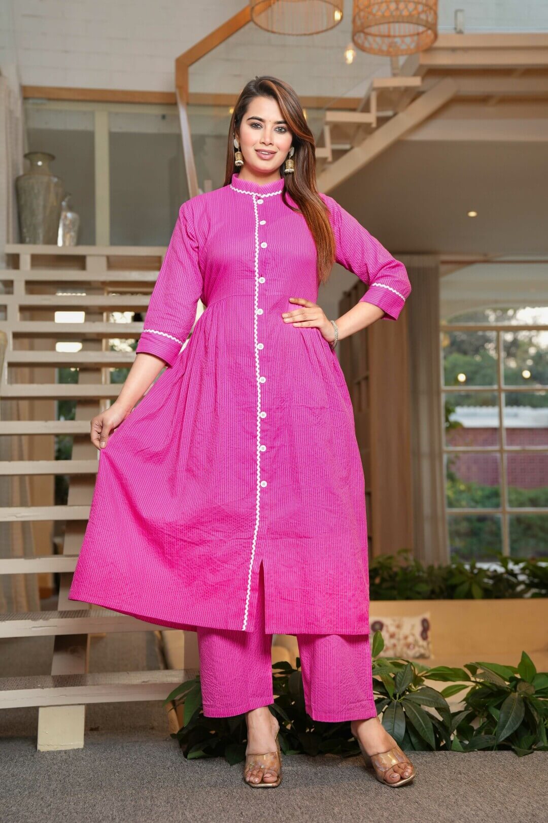 Fuchsia Cotton Maternity Feeding Flared Kurta Set