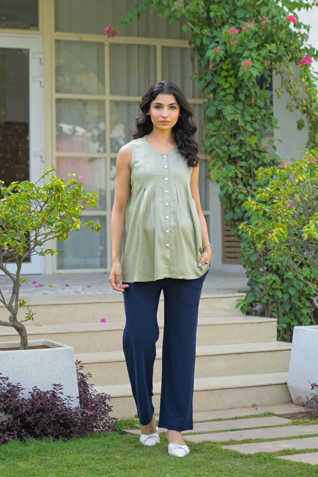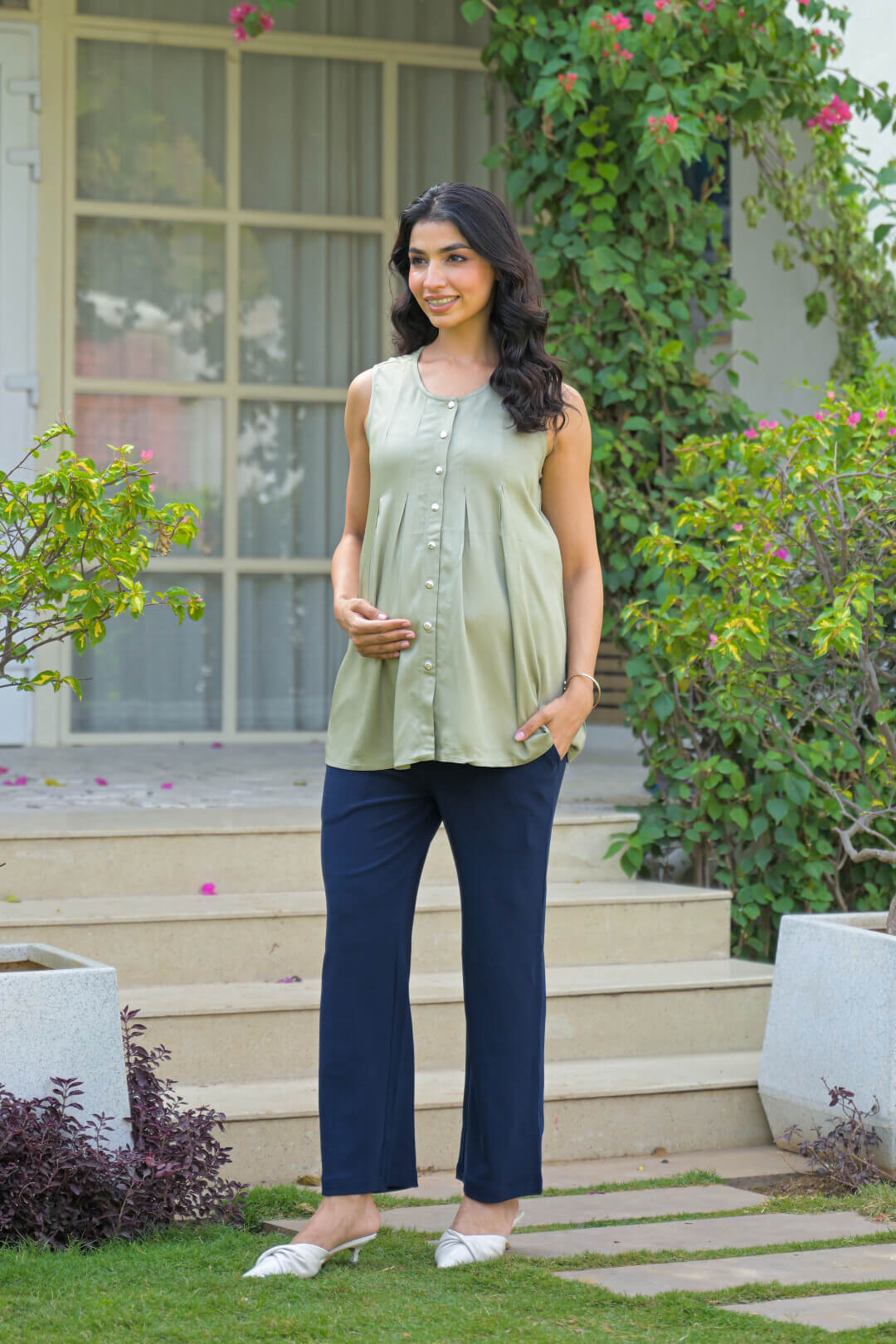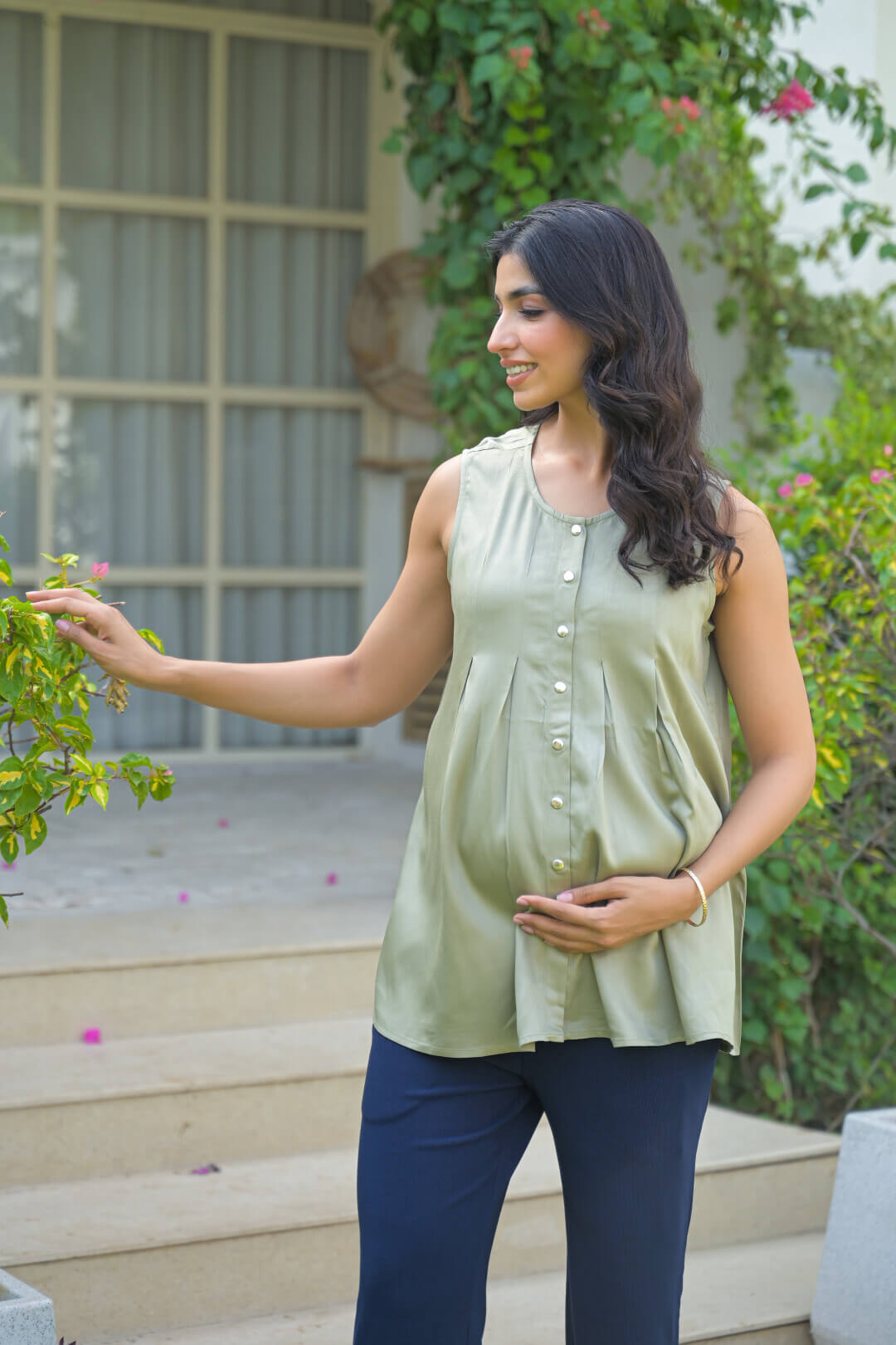 Olive Green Pleated Maternity Feeding Top