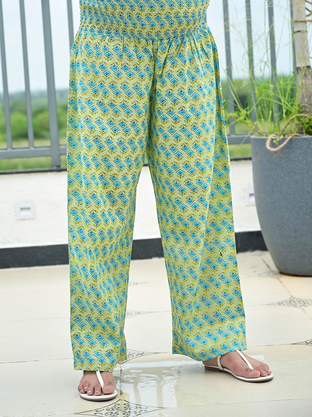 Pista Green Printed Cotton Maternity Feeding Kaftan Night Suit