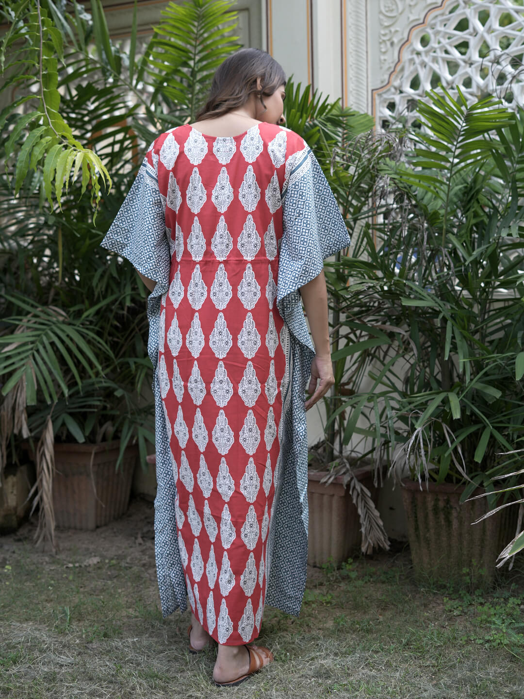 Royal Blue Printed Cotton Maternity Feeding Kaftan Night Suit