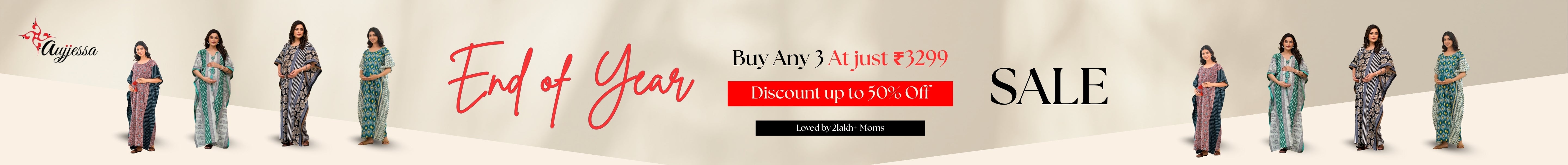Indigo Red Printed Cotton Maternity Feeding Kaftan Night Suit
