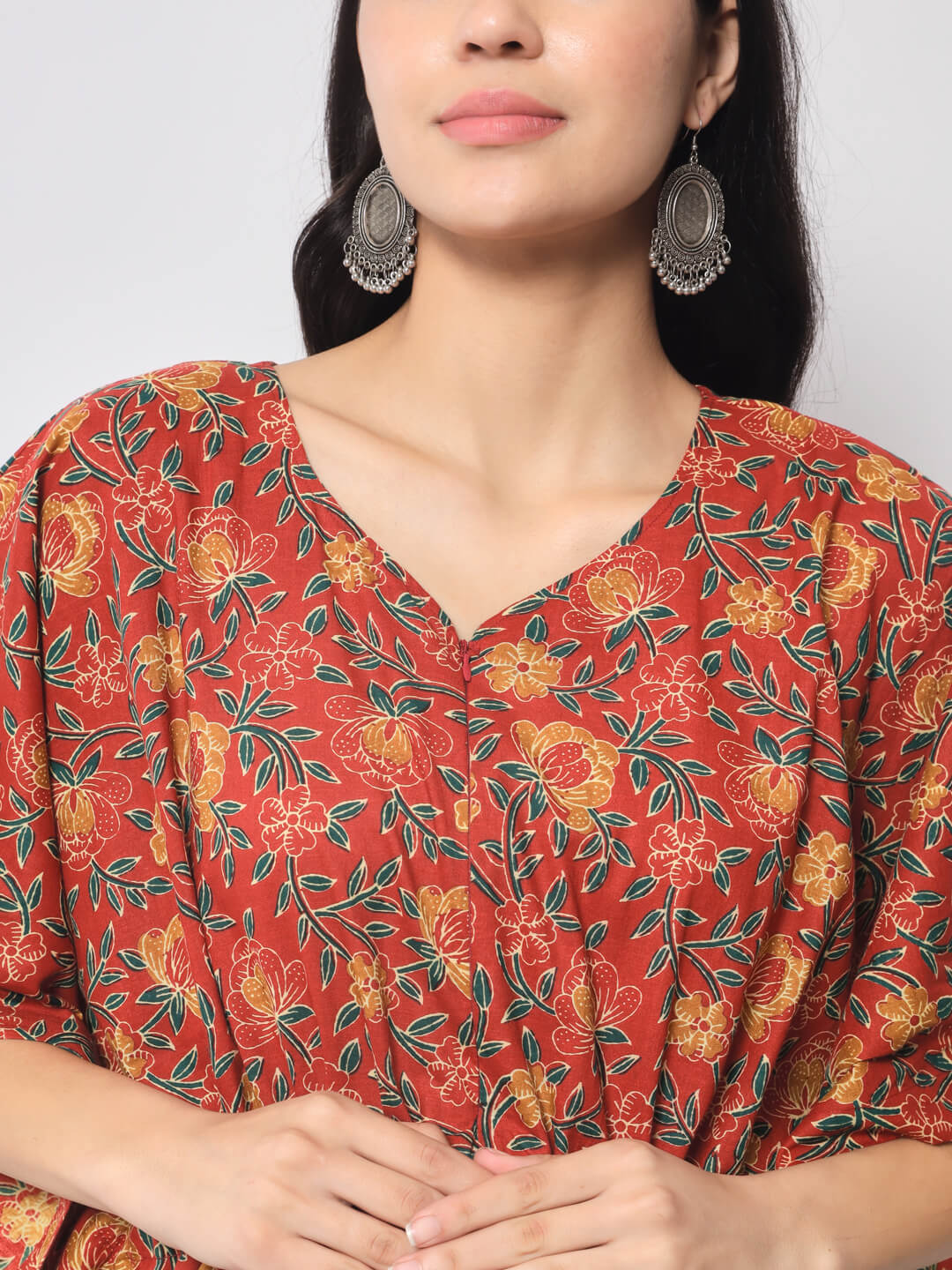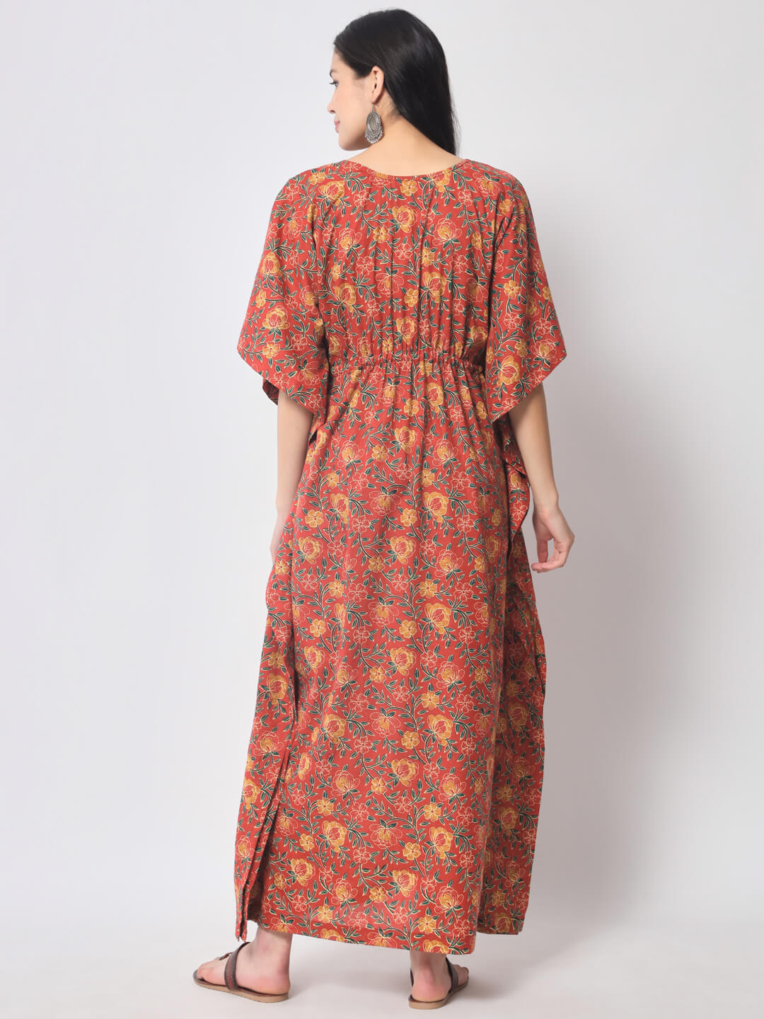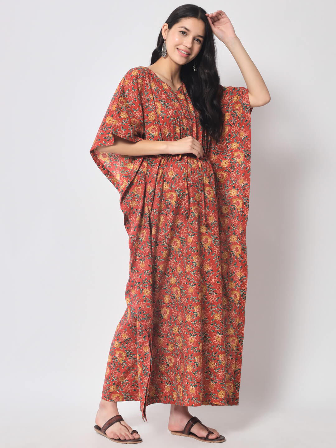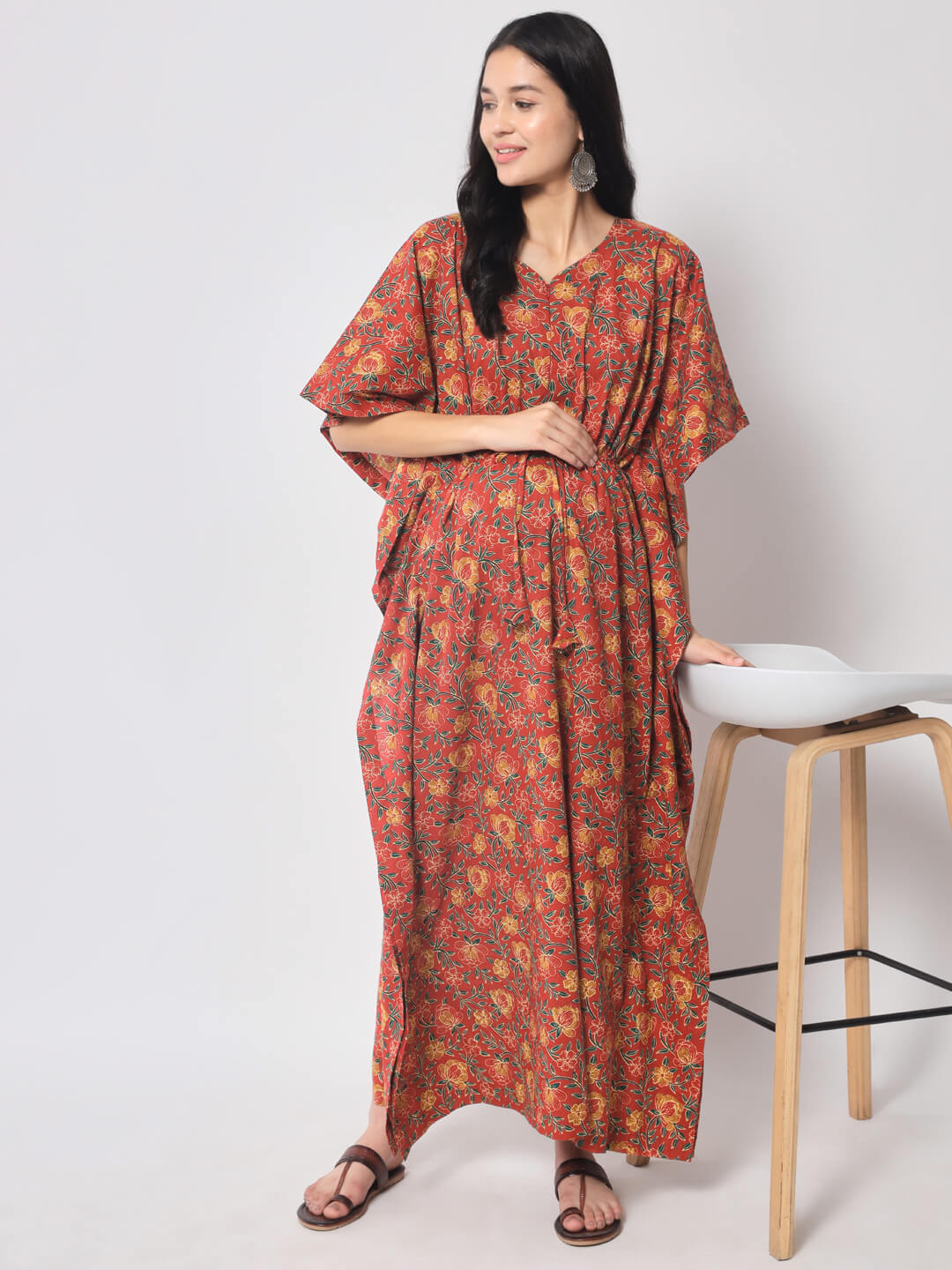 Red Multi Cotton Printed Maternity Feeding Kaftan