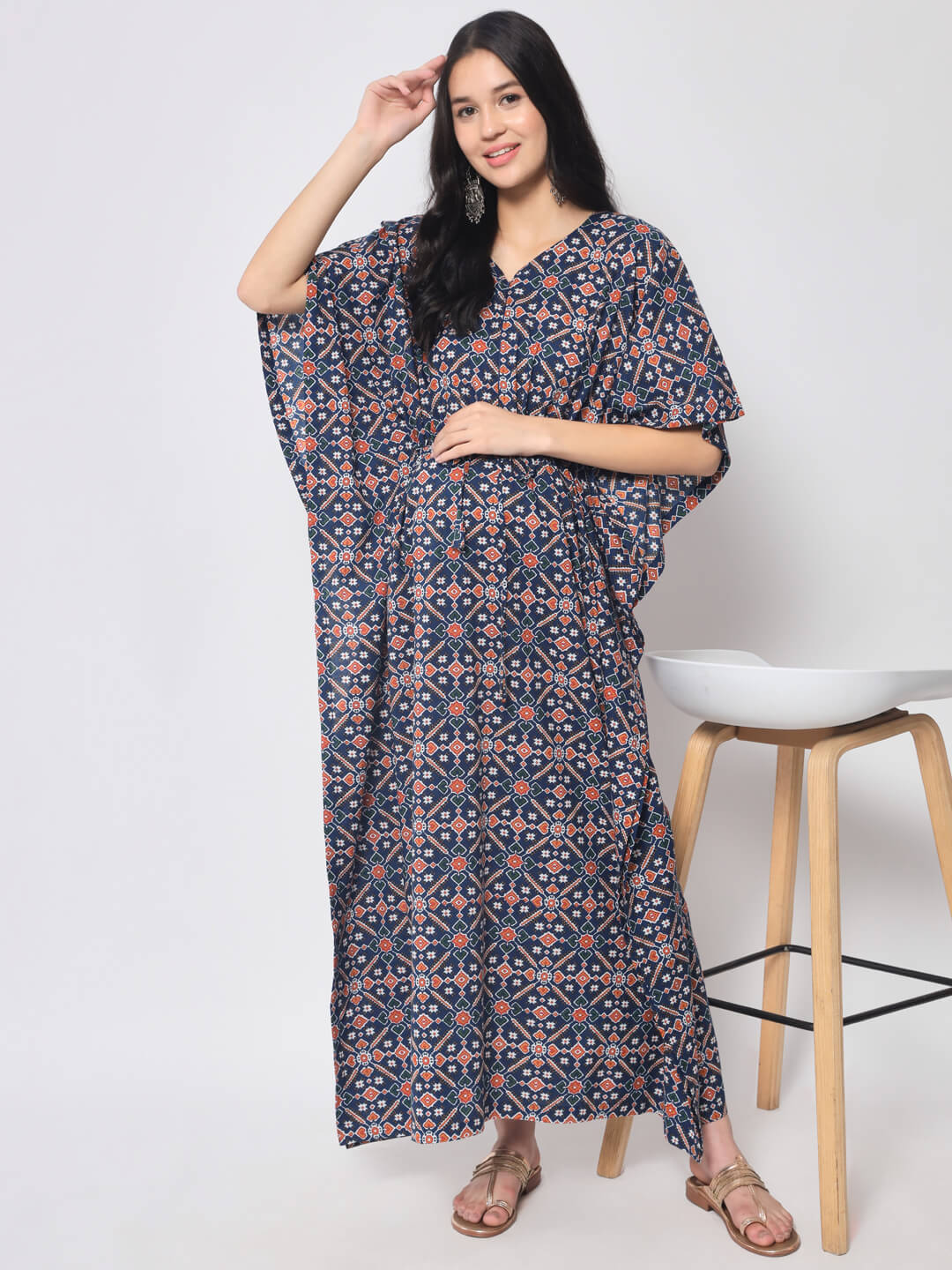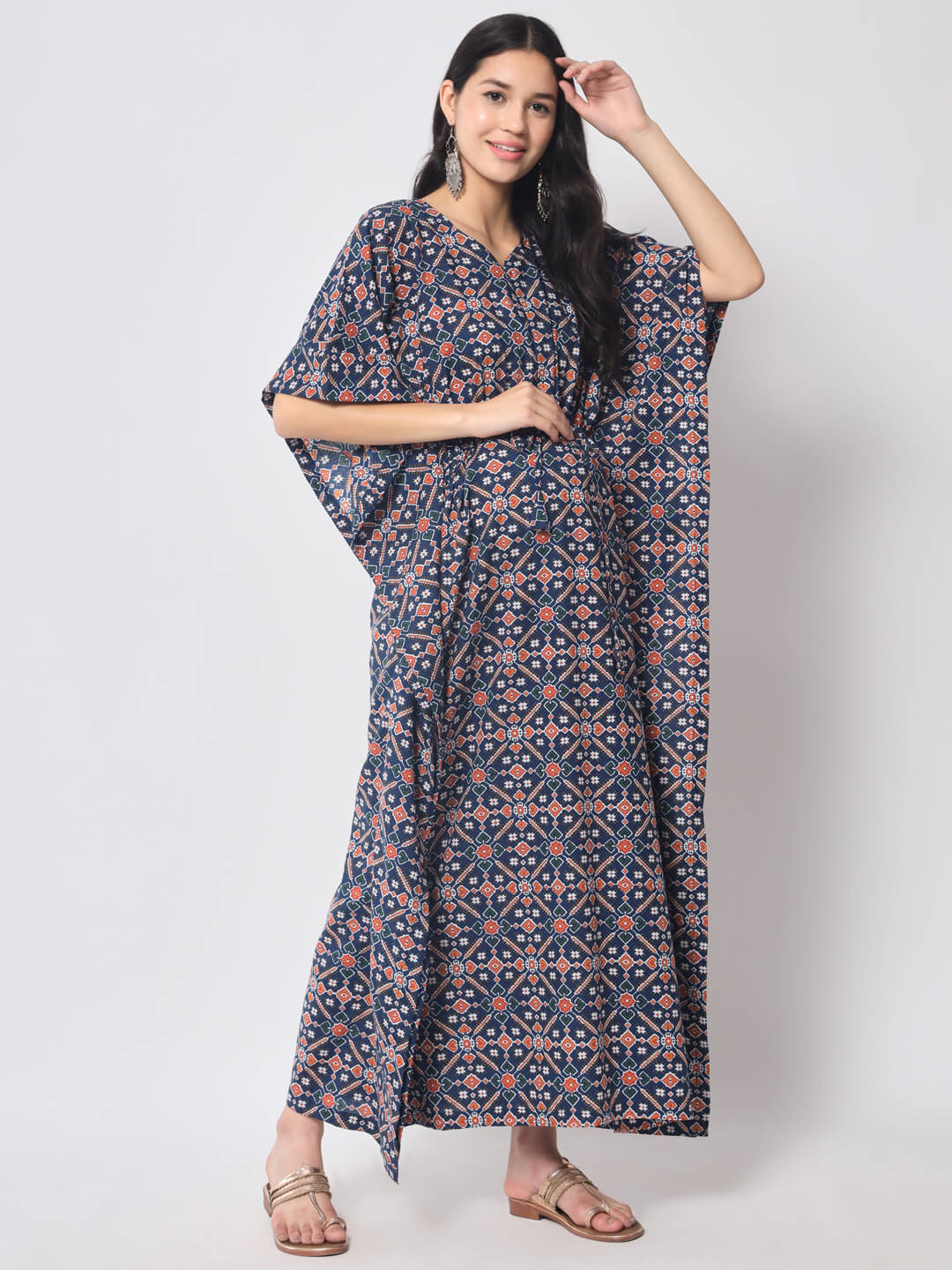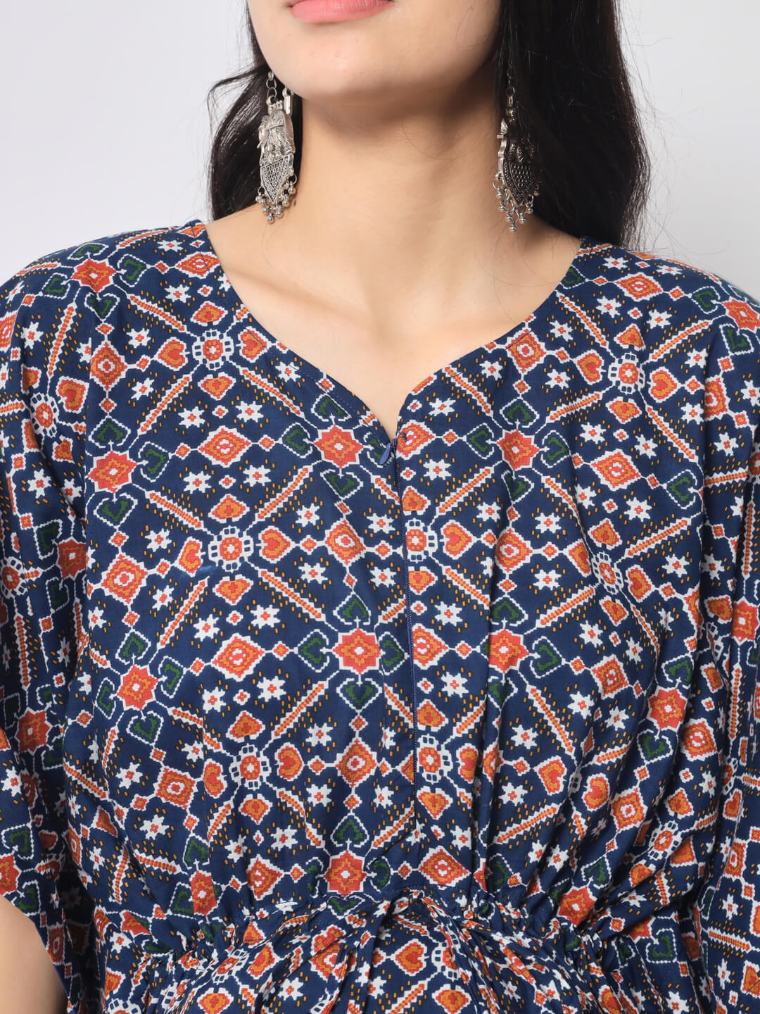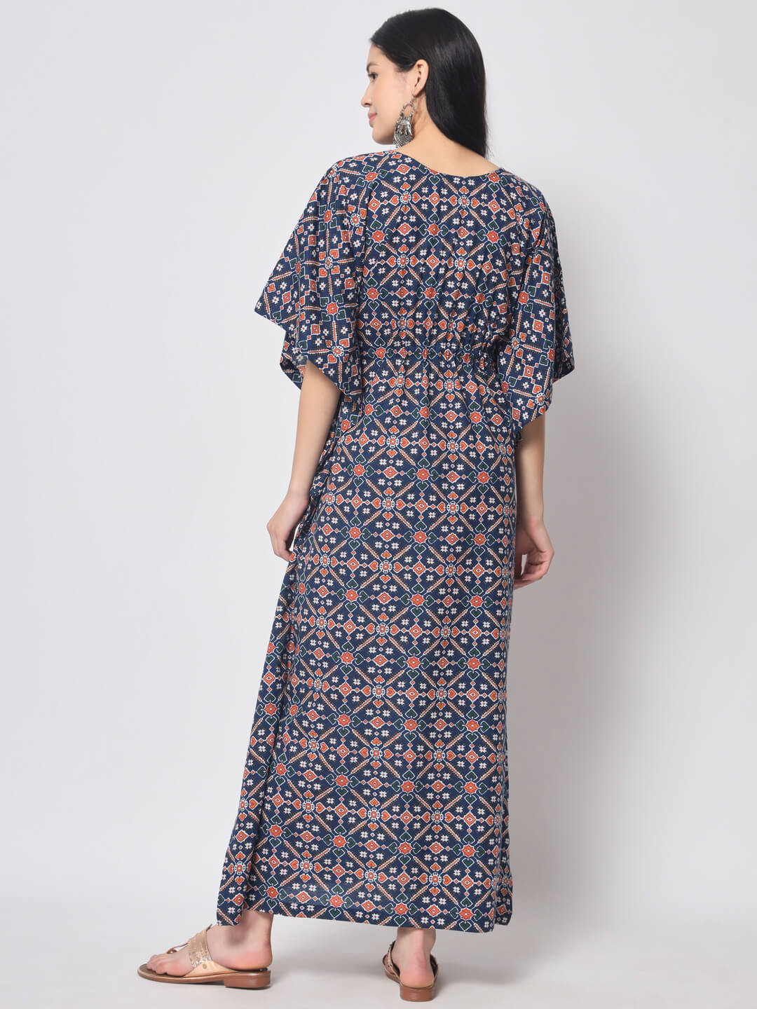 Indigo Multi Cotton Printed Maternity Feeding Kaftan