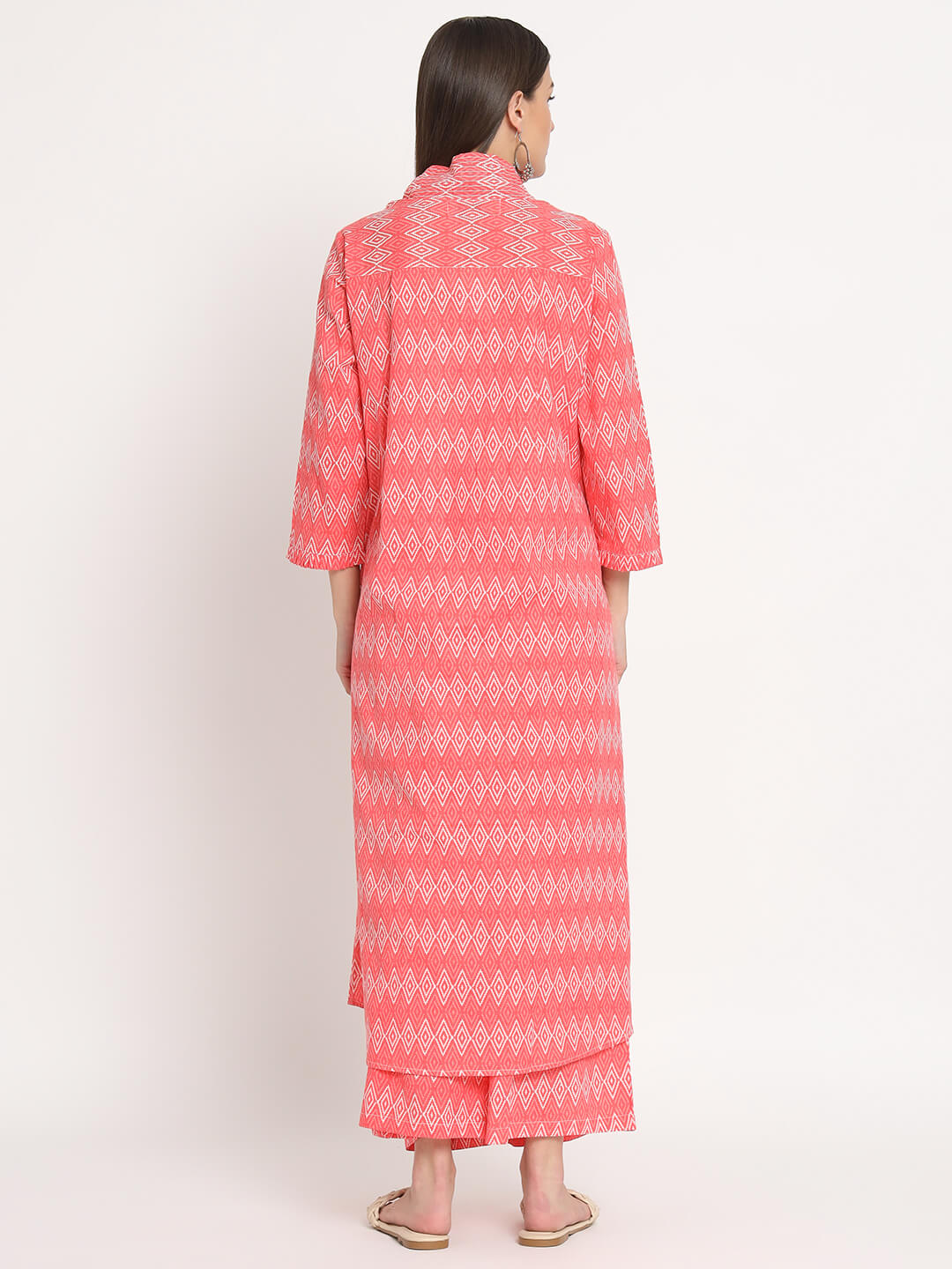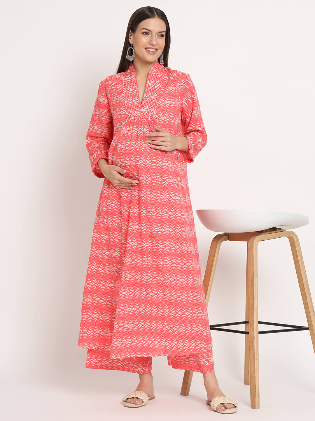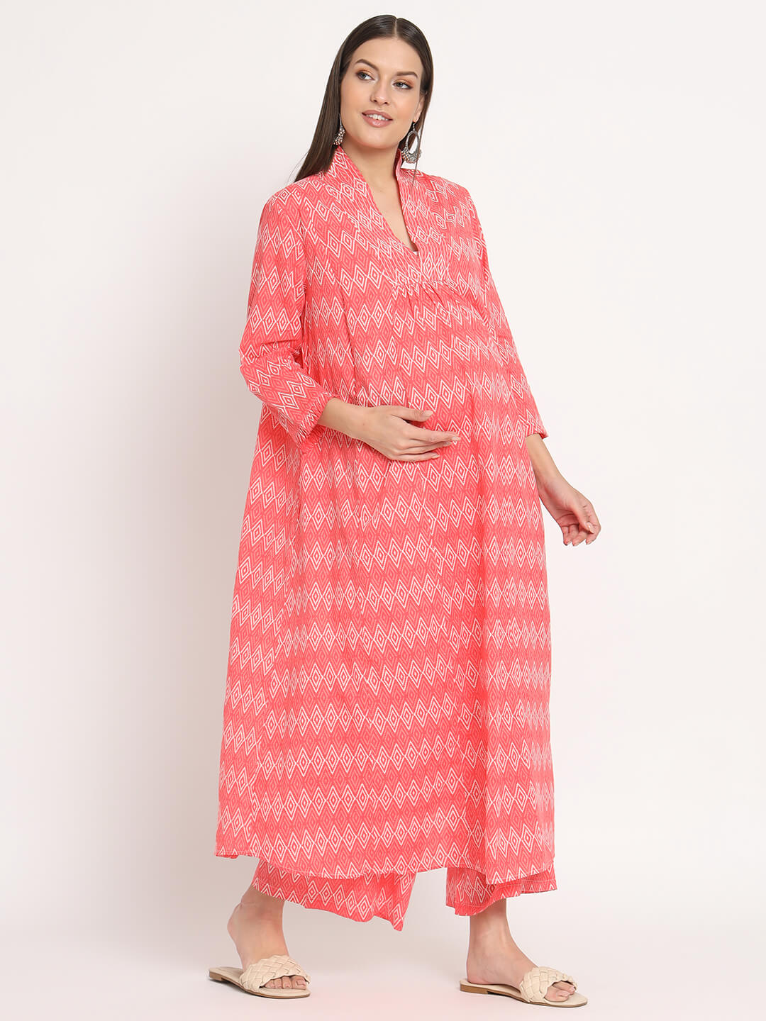 Peach Cotton Printed Maternity Feeding Kurta Set