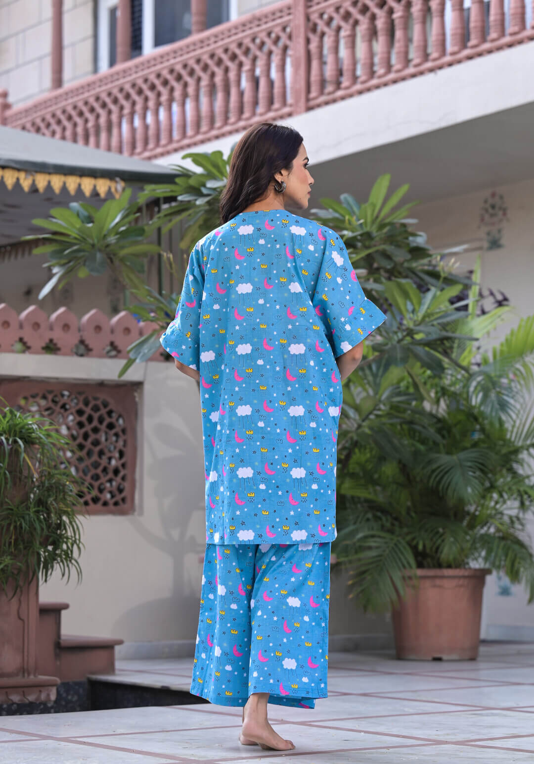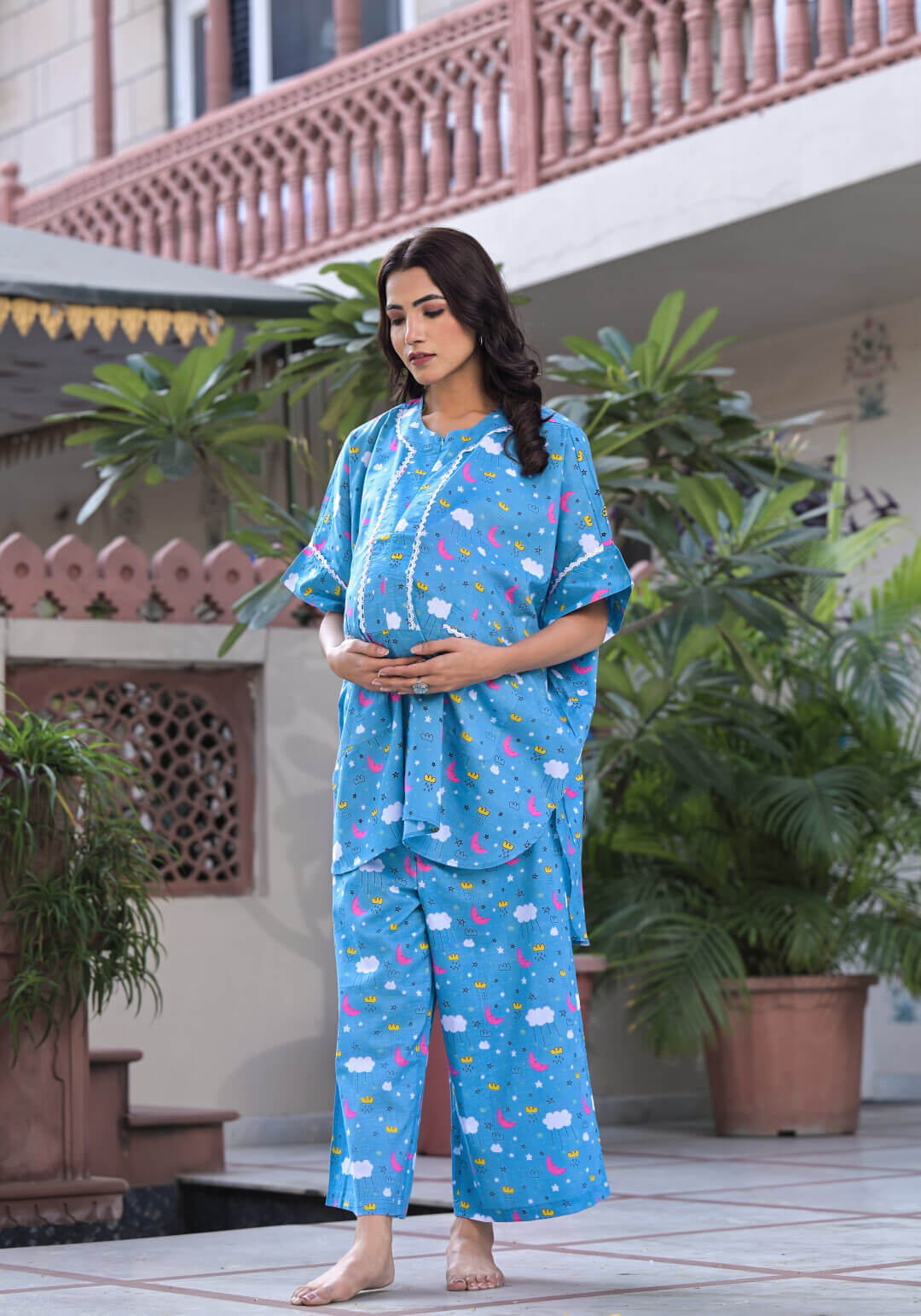 Blue Multi Cotton Printed Maternity Feeding Co-Ord Set