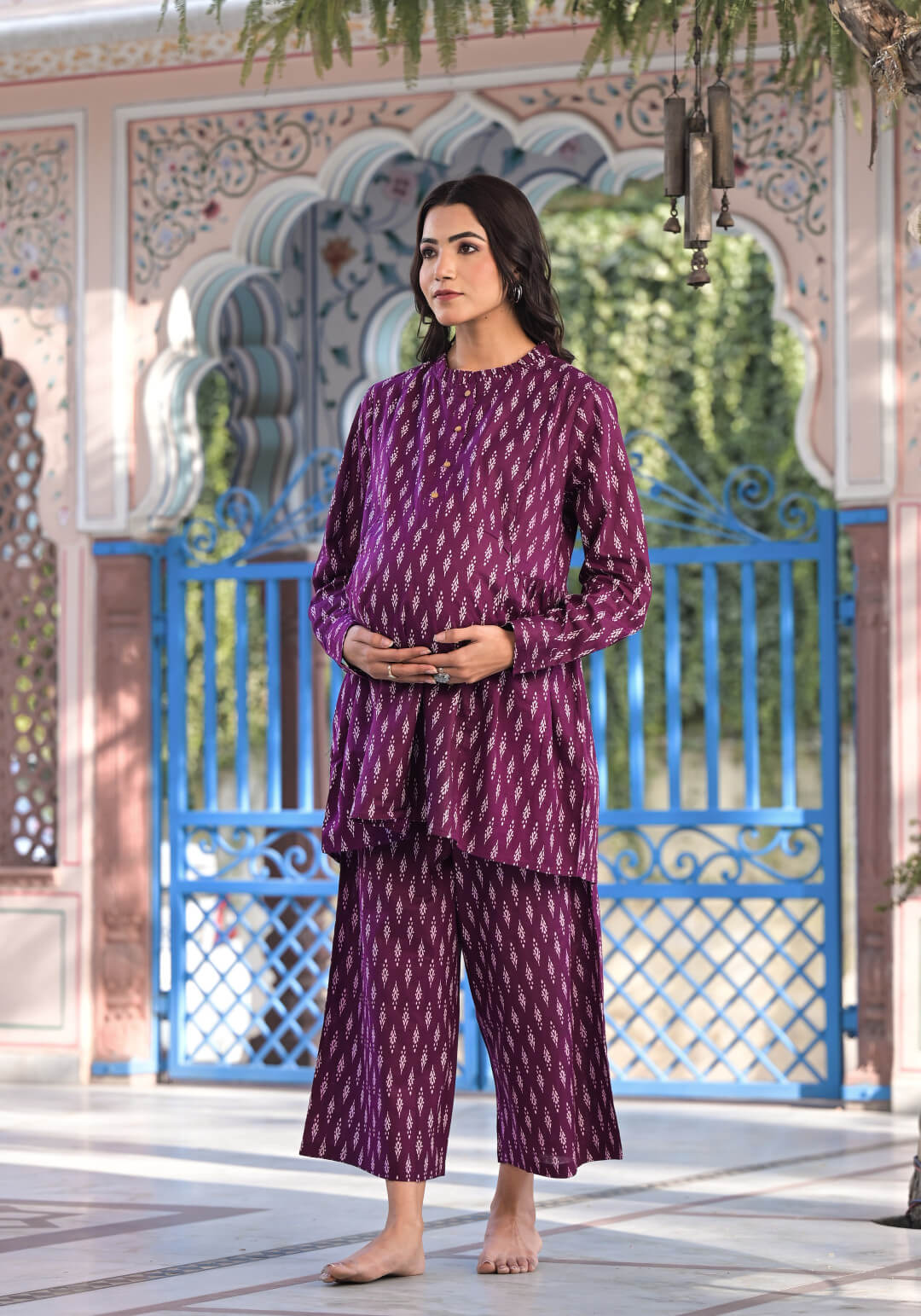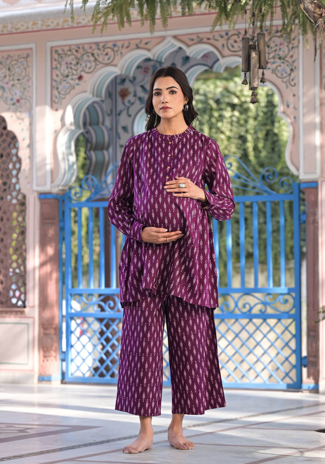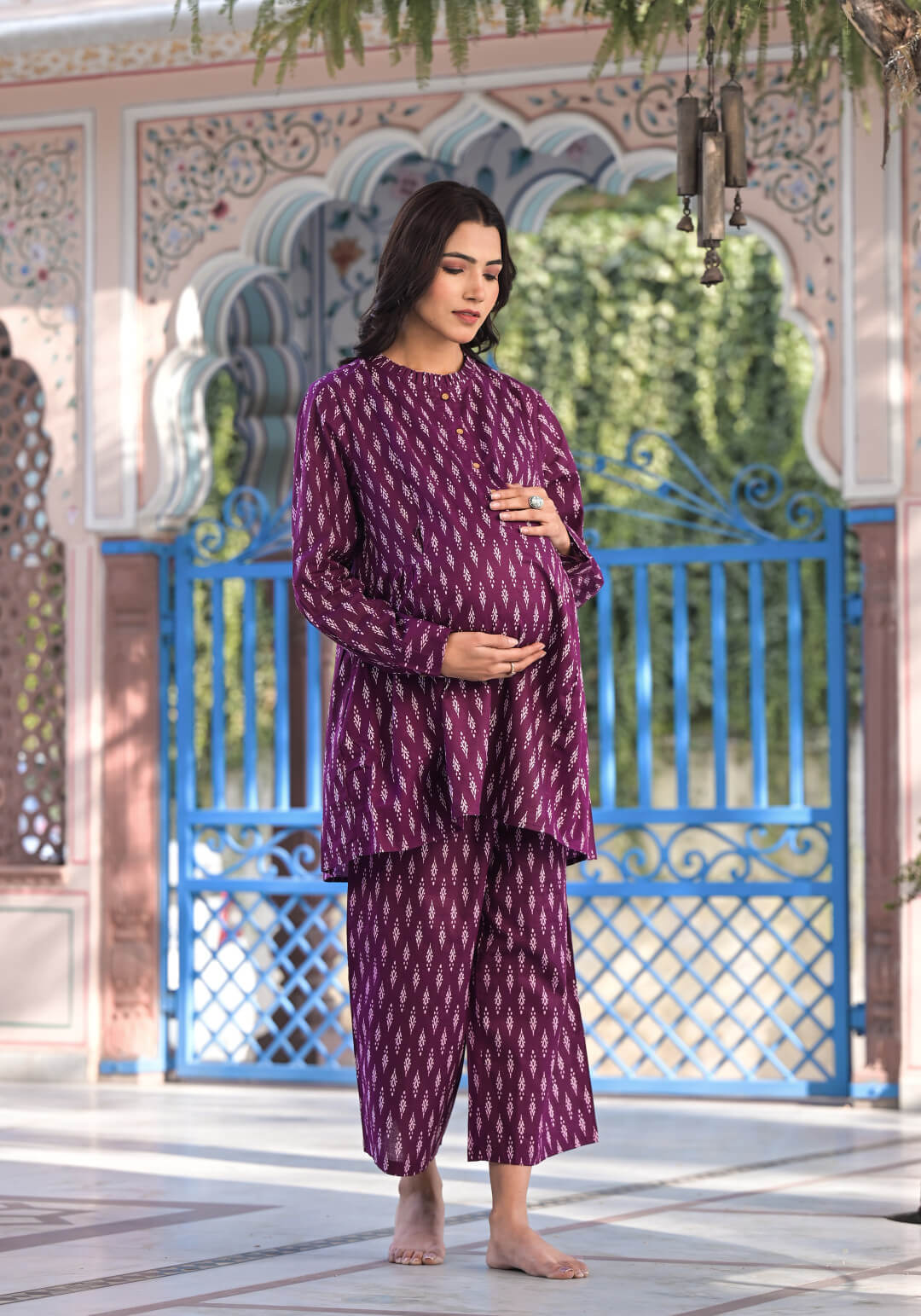 Purple Cotton Printed Maternity Feeding Co-Ord Set