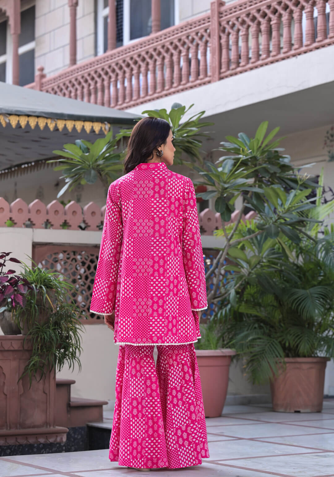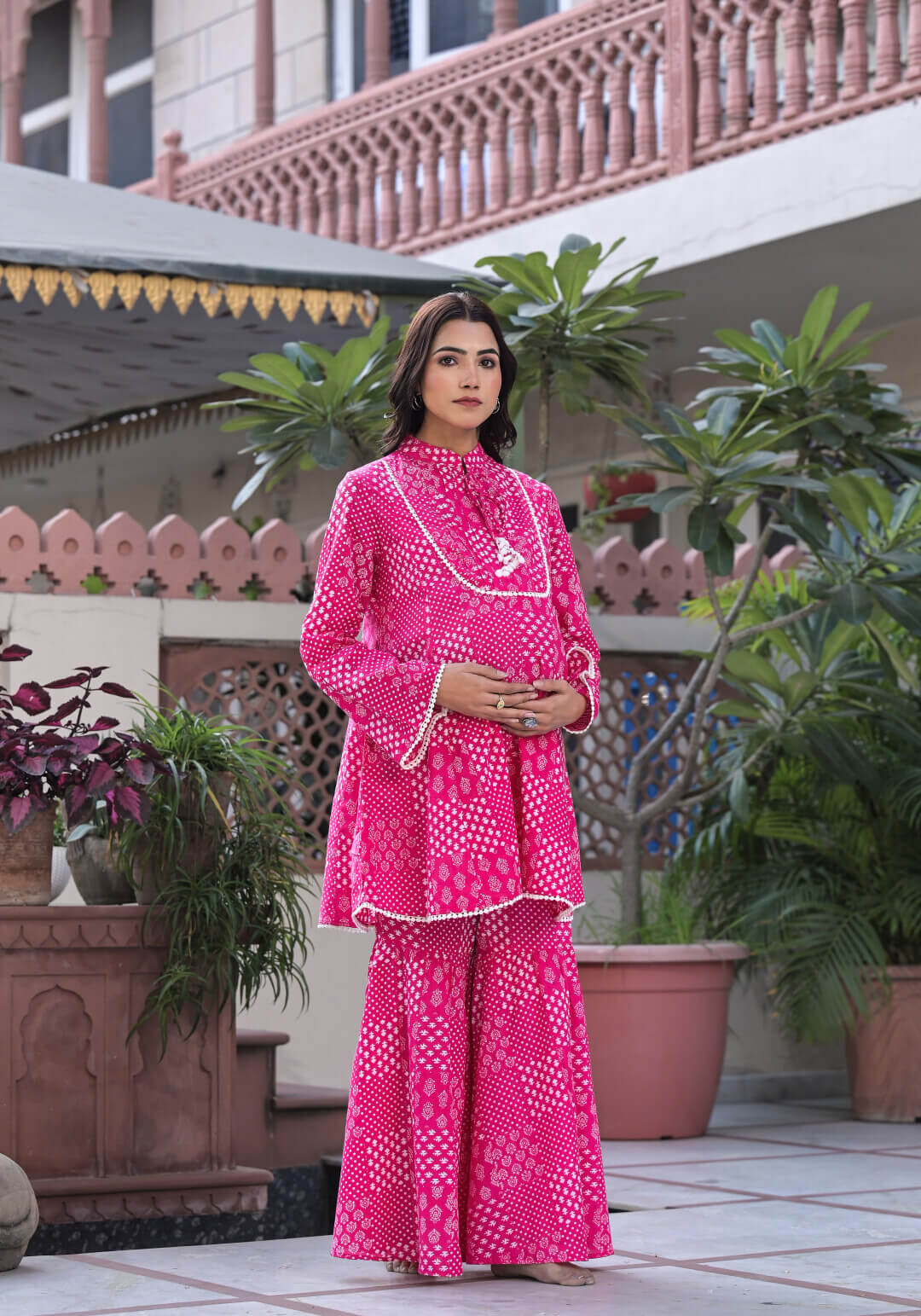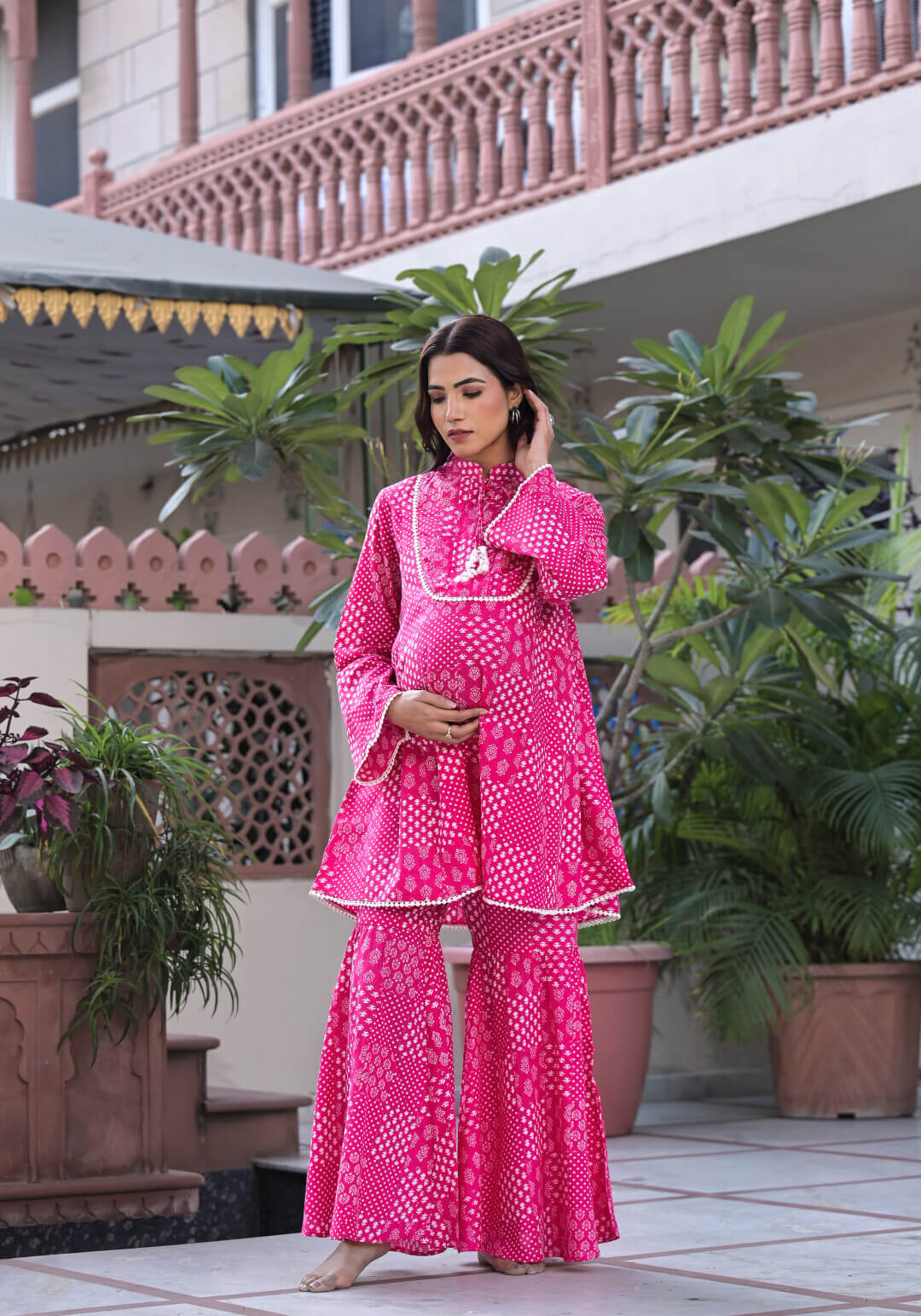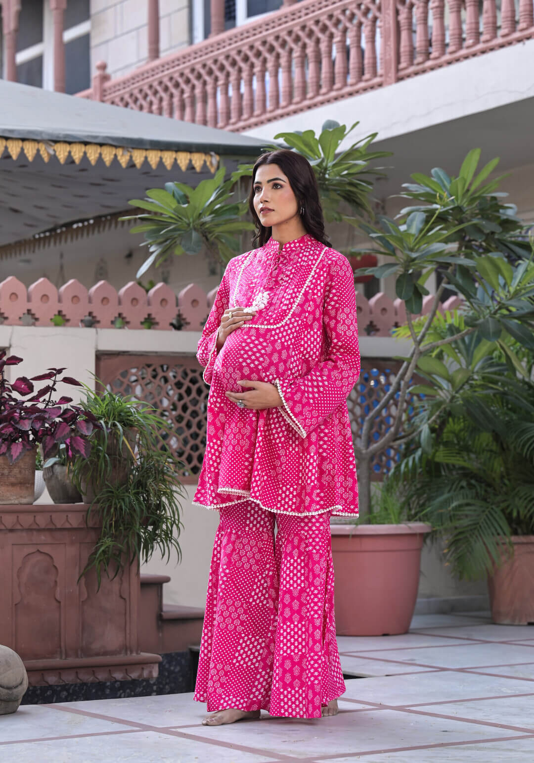 Fuchsia Cotton Printed Maternity Feeding Kurta Sharara Set