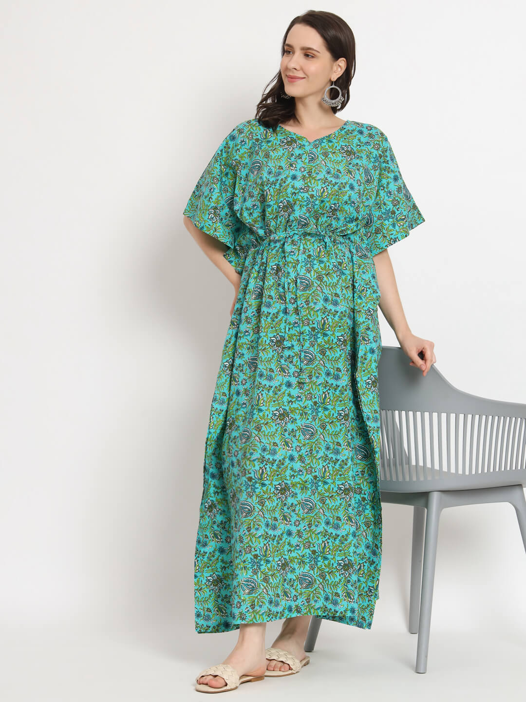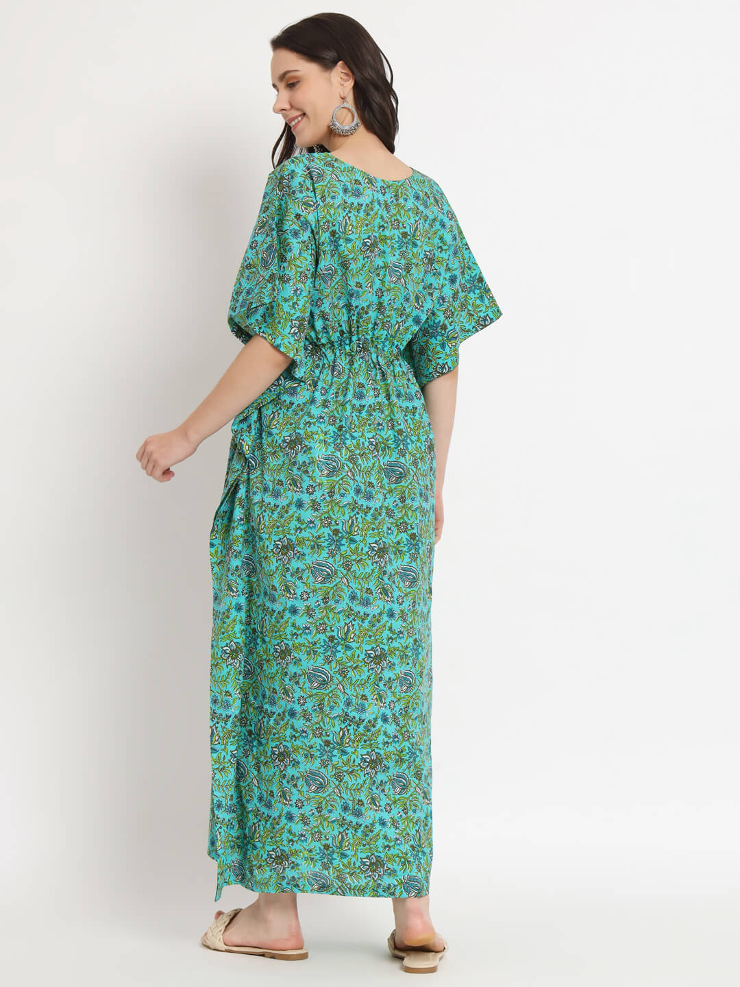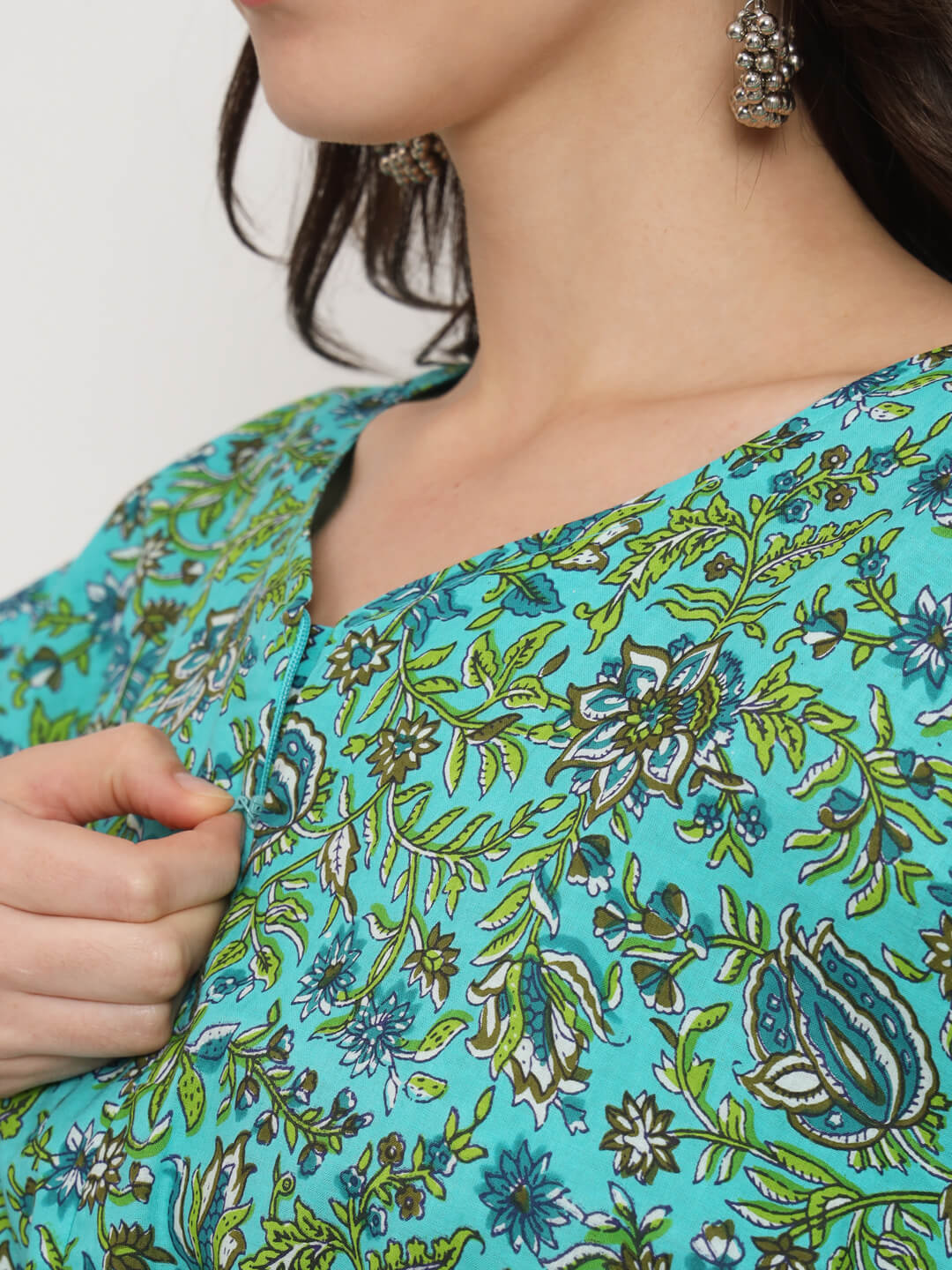 Sea Green Printed Front Zipper Maternity Feeding Kaftan