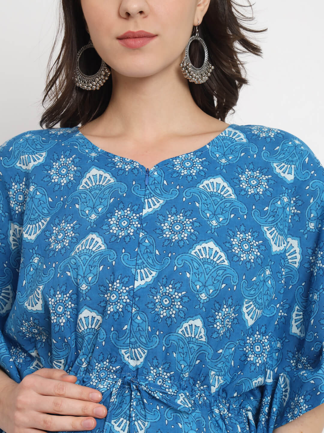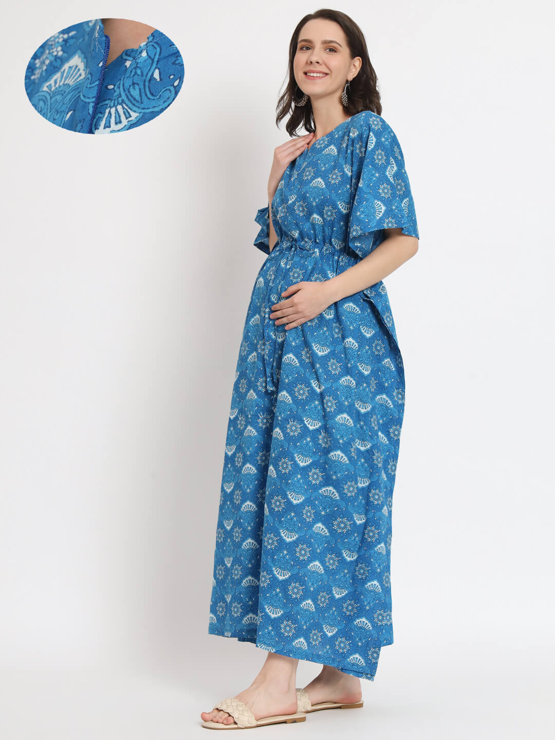 Turquoise Printed Front Zipper Maternity Feeding Kaftan