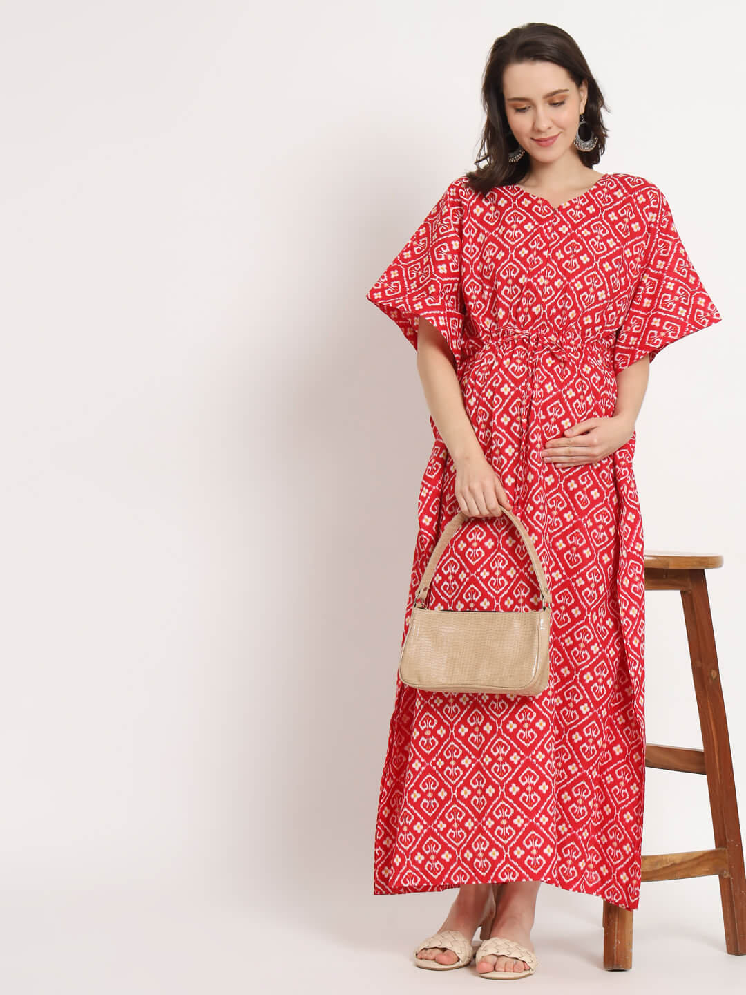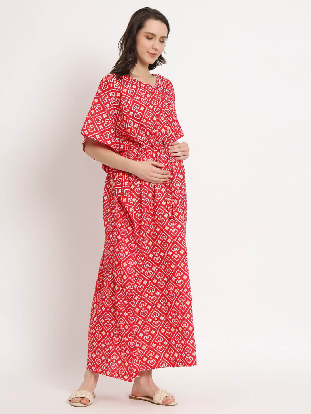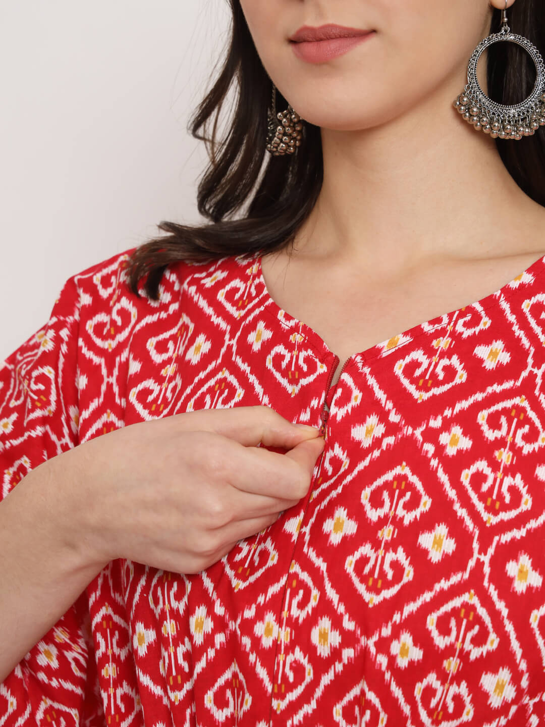 Coral Printed Front Zipper Maternity Feeding Kaftan