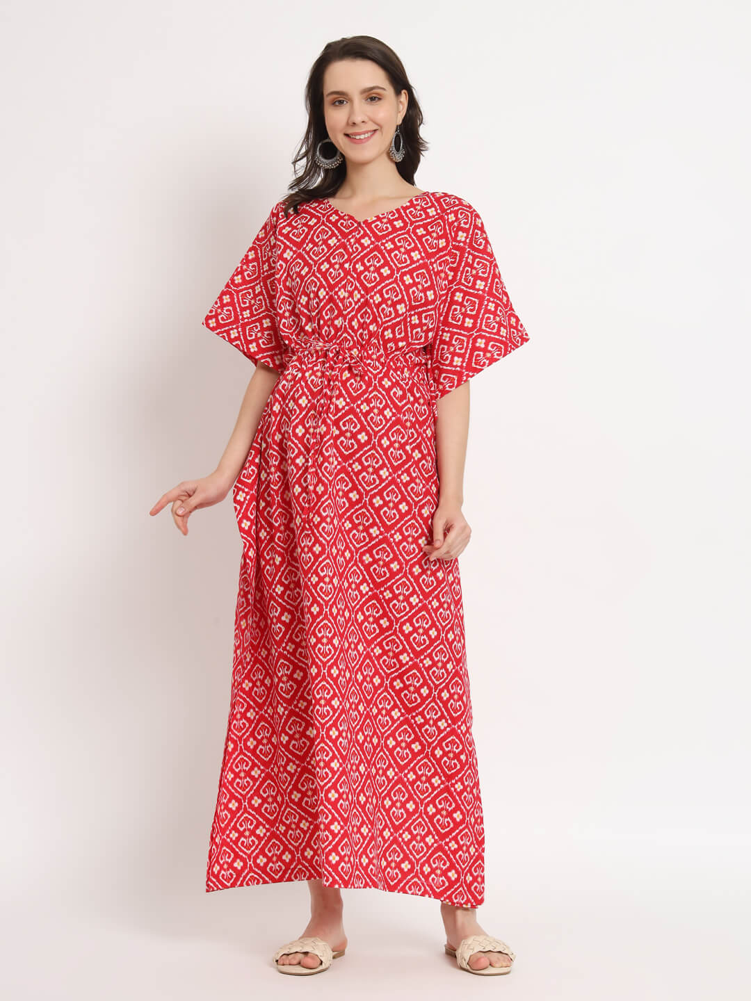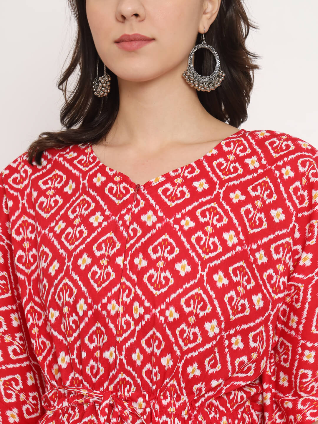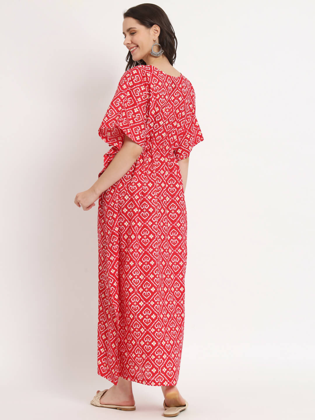 Coral Printed Front Zipper Maternity Feeding Kaftan