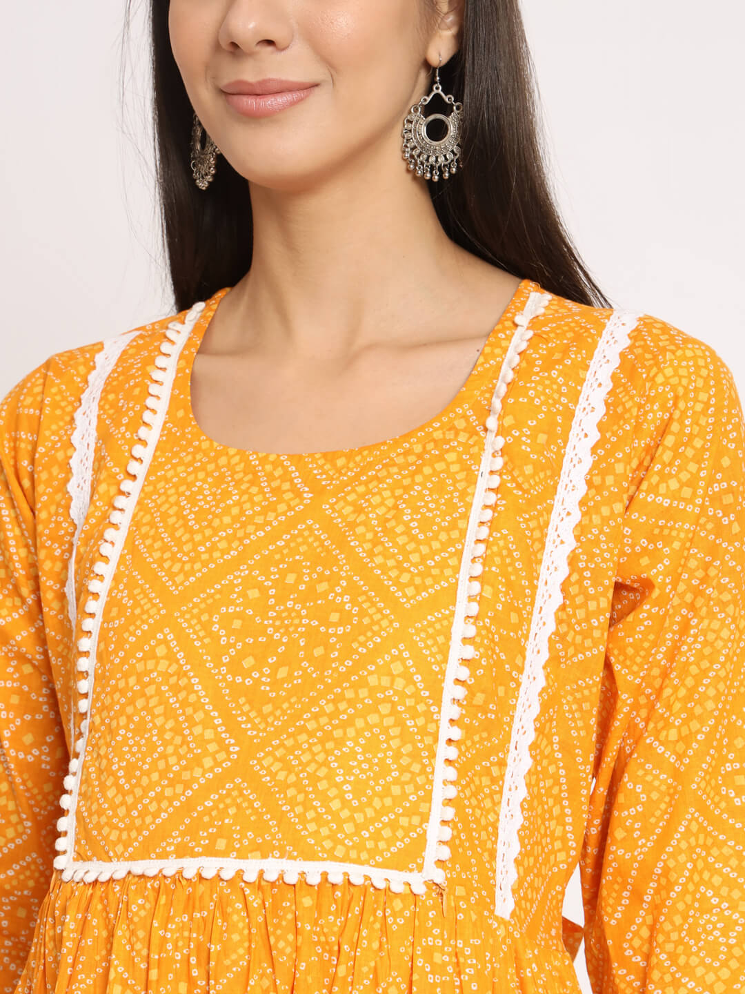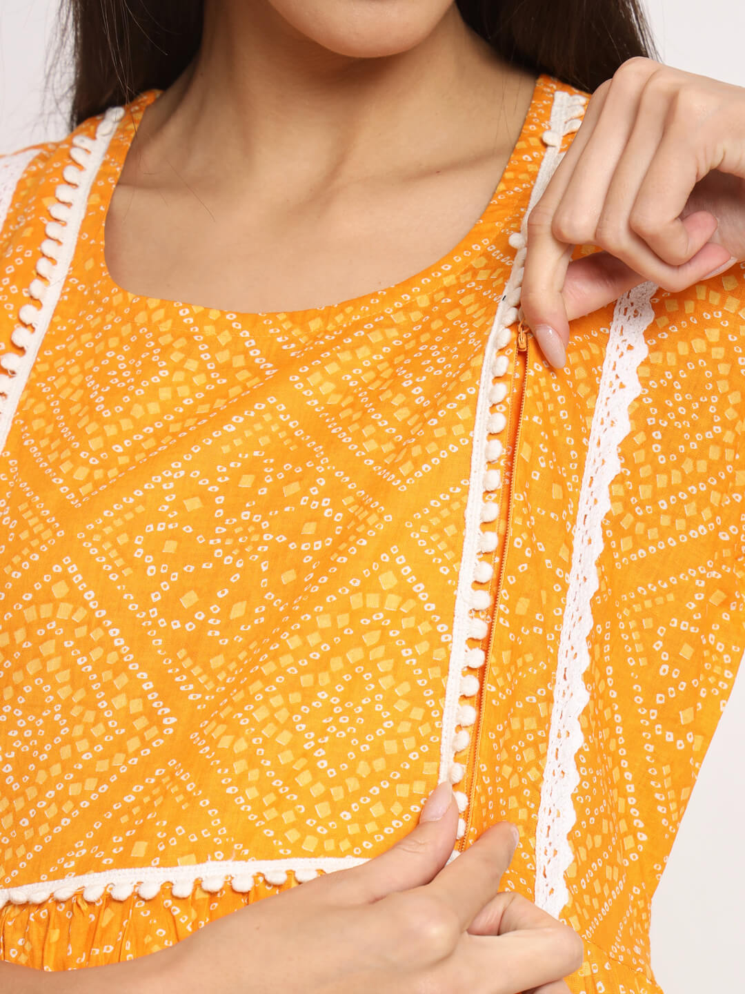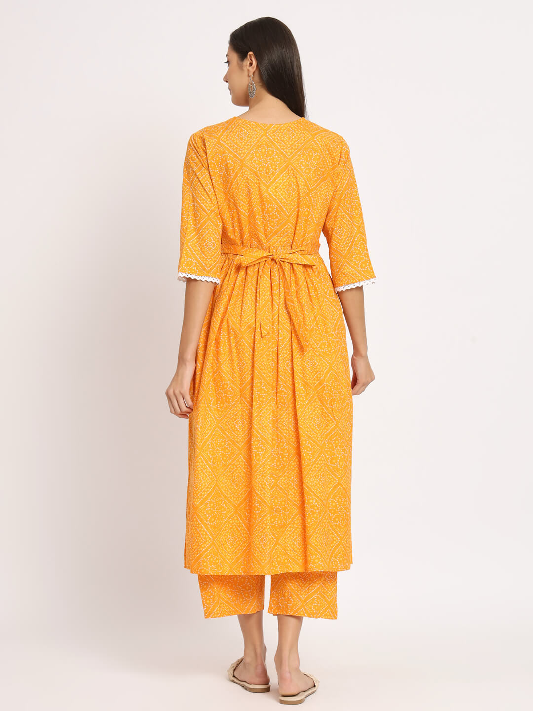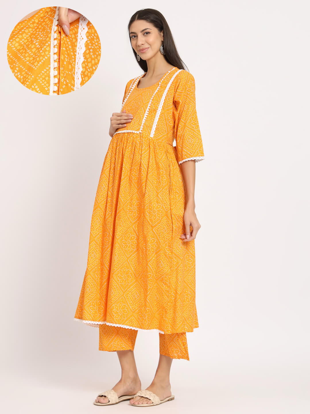 Mustard Cotton Printed Maternity Feeding Kurta Set