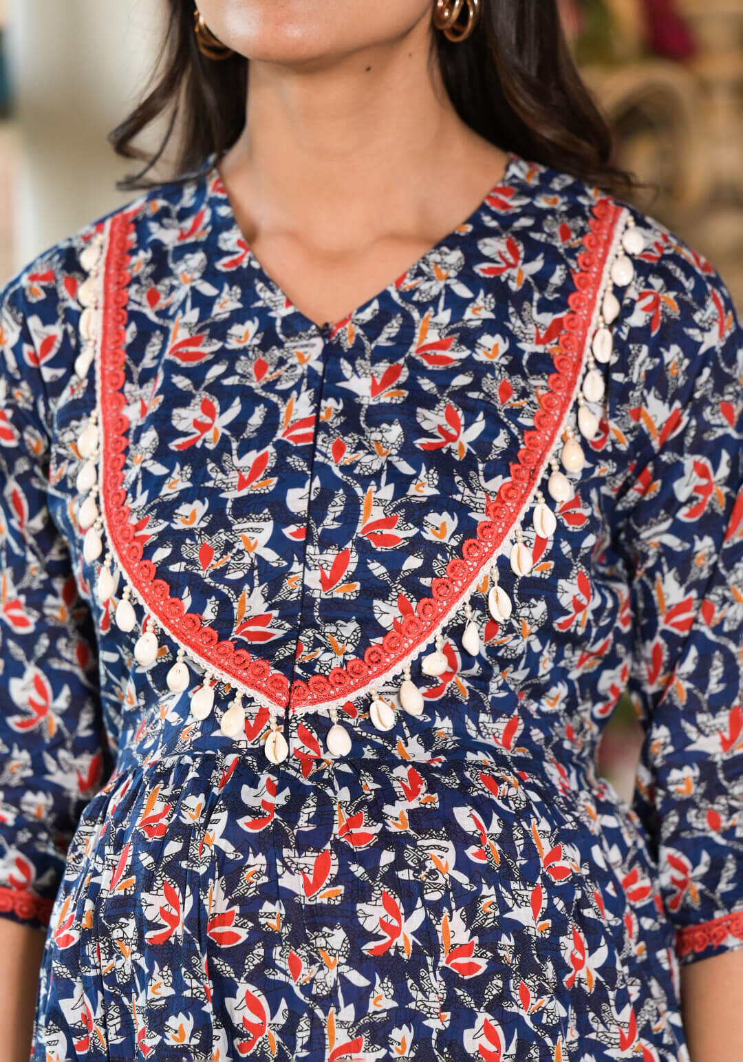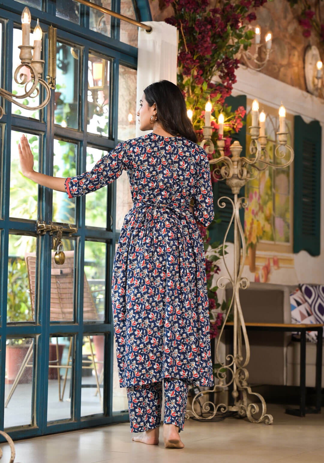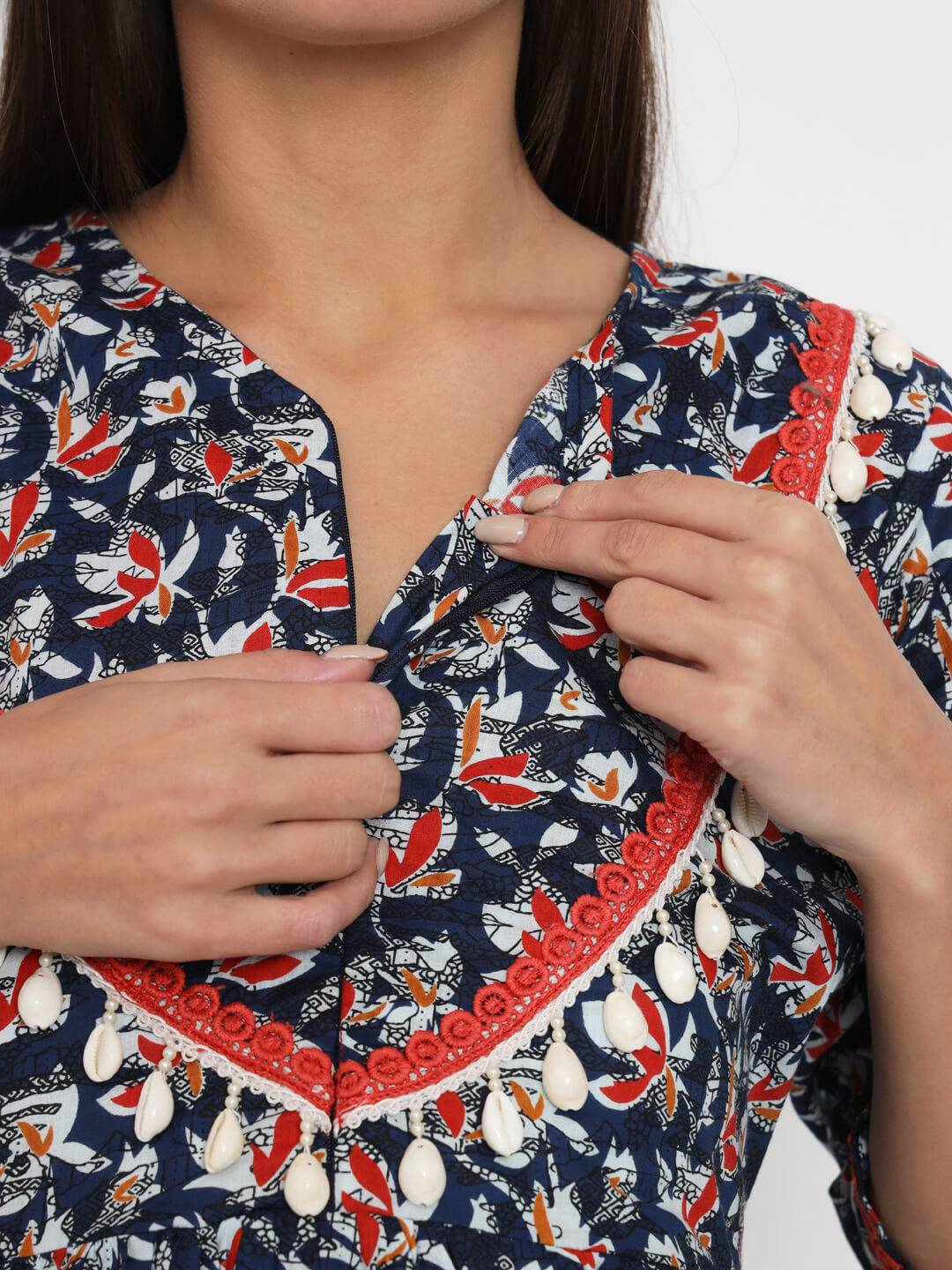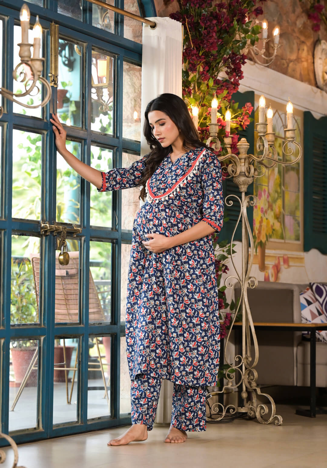 Indigo Multi Cotton Printed Maternity Feeding Kurta Set