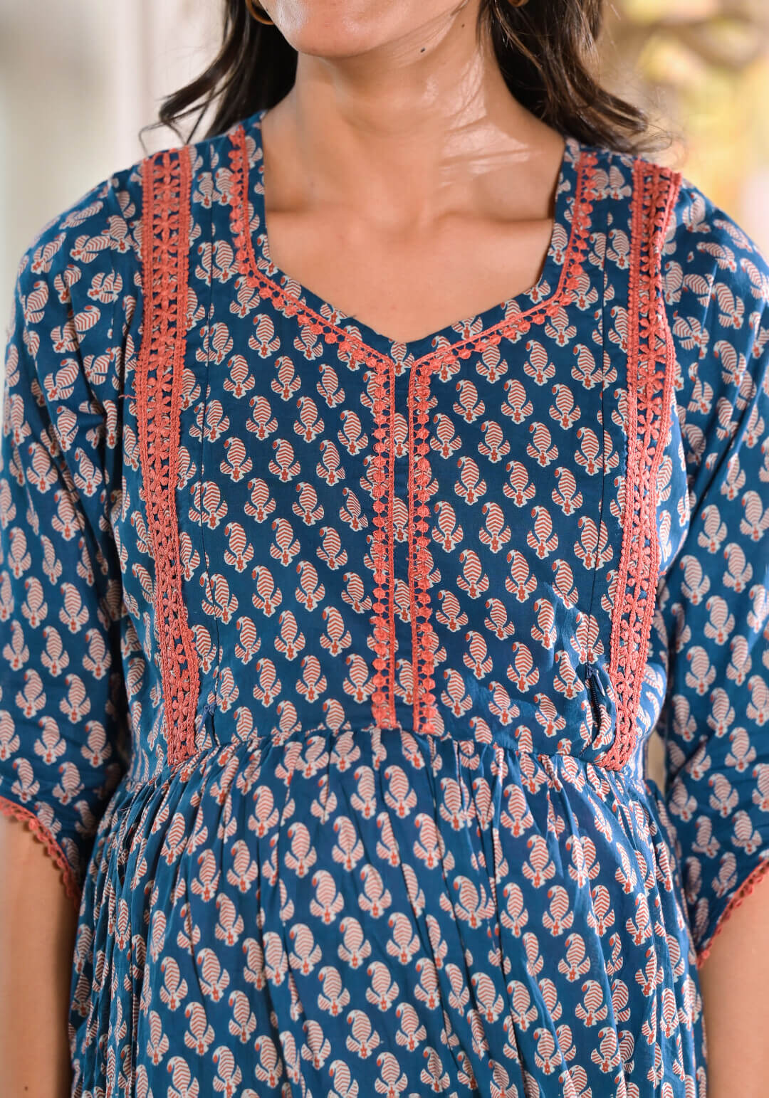 Indigo Cotton Printed Maternity Feeding Kurta